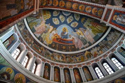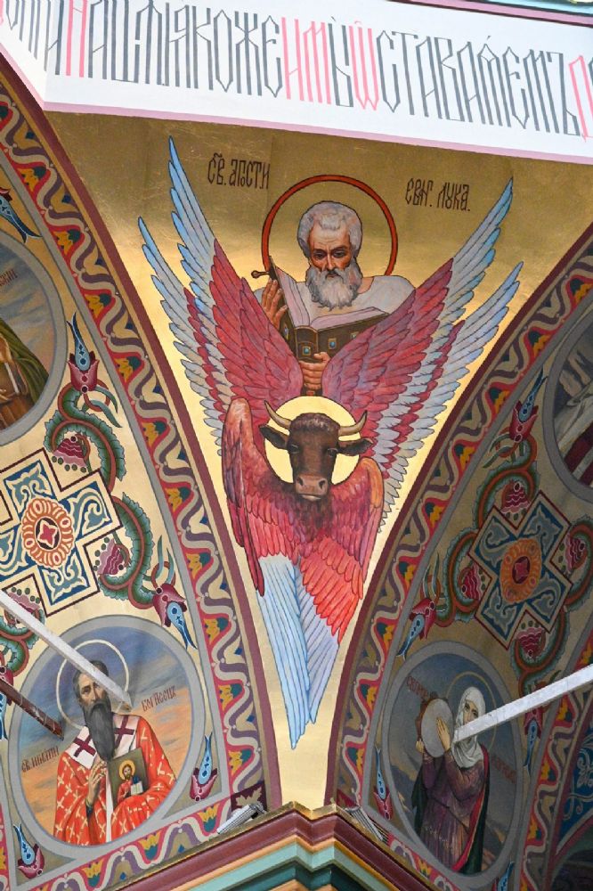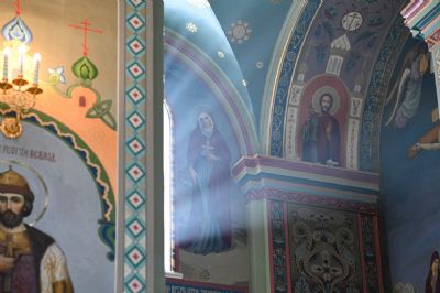 Сложно передать словами всё то великолепие, которое мы увидели в храмах Нижнего Новгорода. Красивейшие фрески буквально захватывают дух. Когда смотришь на них снизу вверх, невольно задумываешься над величием Божиим и собственной ничтожностью перед Ним... На стенах – множество изображений святых, в том числе и месточтимых. Отец Андрей рассказывал нам удивительные истории о том, как некоторые из этих святых пришли к Богу и за свою веру получили благодать от Господа.