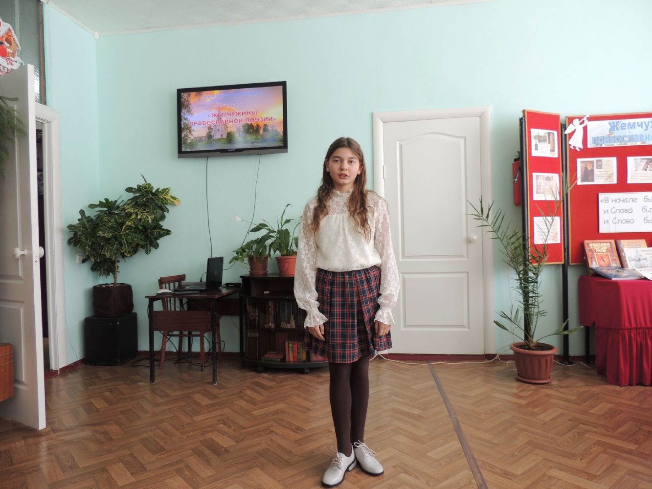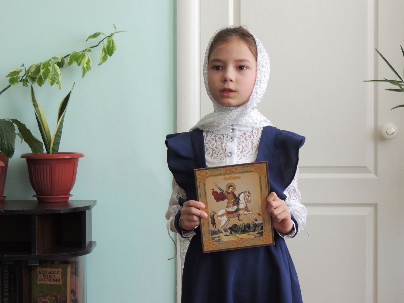 Один за другим выходили участники мероприятия. Чувствовалось, что они прошли тщательную подготовку. Выразительно и проникновенно звучали стихи, посвящённые святому мученику сотнику Лонгину, великомученику Георгию Победоносцу, великомученику Димитрию Солунскому, 40 мученикам Севастийским, преподобному Илии Муромцу, святому благоверному князю Александру Невскому, праведному Фёодору Ушакову, святому благоверному князю Димитрию Донскому.
