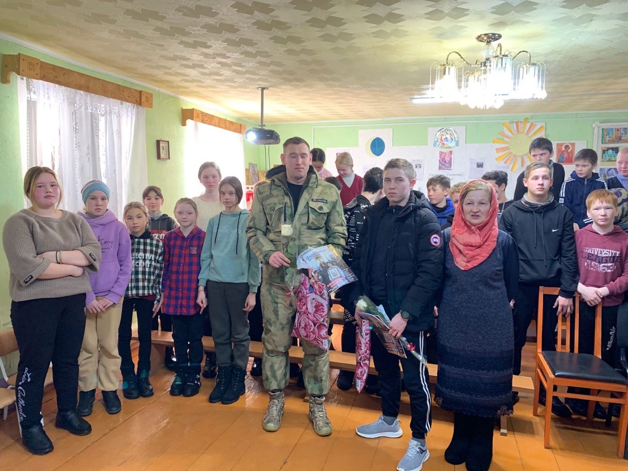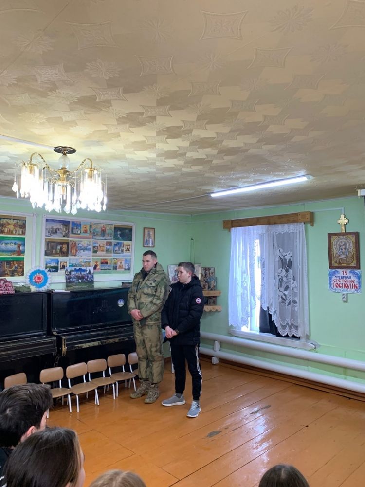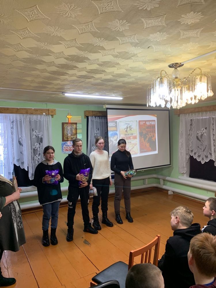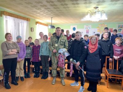 На празднике присутствовали почетные гости – военнослужащие, участники СВО, уроженцы д. Чавайнур Моркинского района Иванов Анатолий Евгеньевич – старший лейтенант, командир роты связи и Новиков Дмитрий Олегович – сержант, снайпер отряда специального назначения. Они рассказали о военной службе, ответили на вопросы детей. Воины отметили, что именно в трудных условиях жизни, на поле боя, чаще призываешь Бога и горячее молишься Ему. Ощущаешь, что именно Господь – во всём помощник. Бывали даже случаи, что люди другой веры крестились в православном храме.