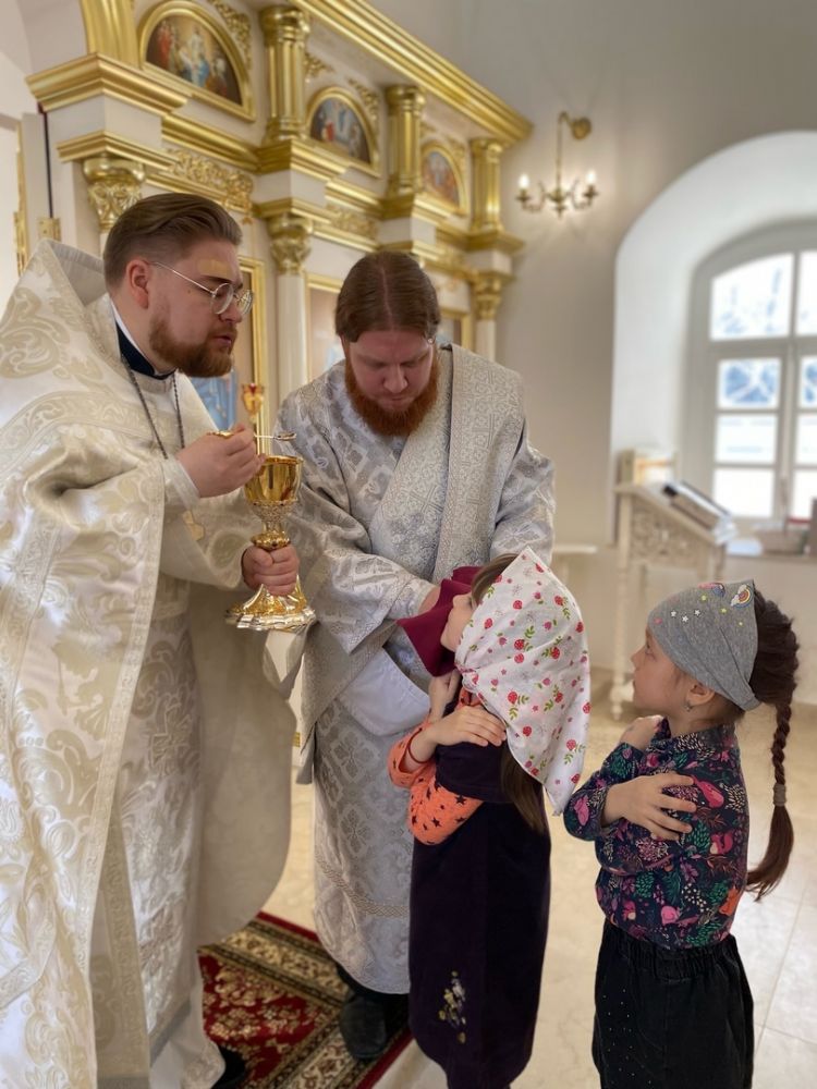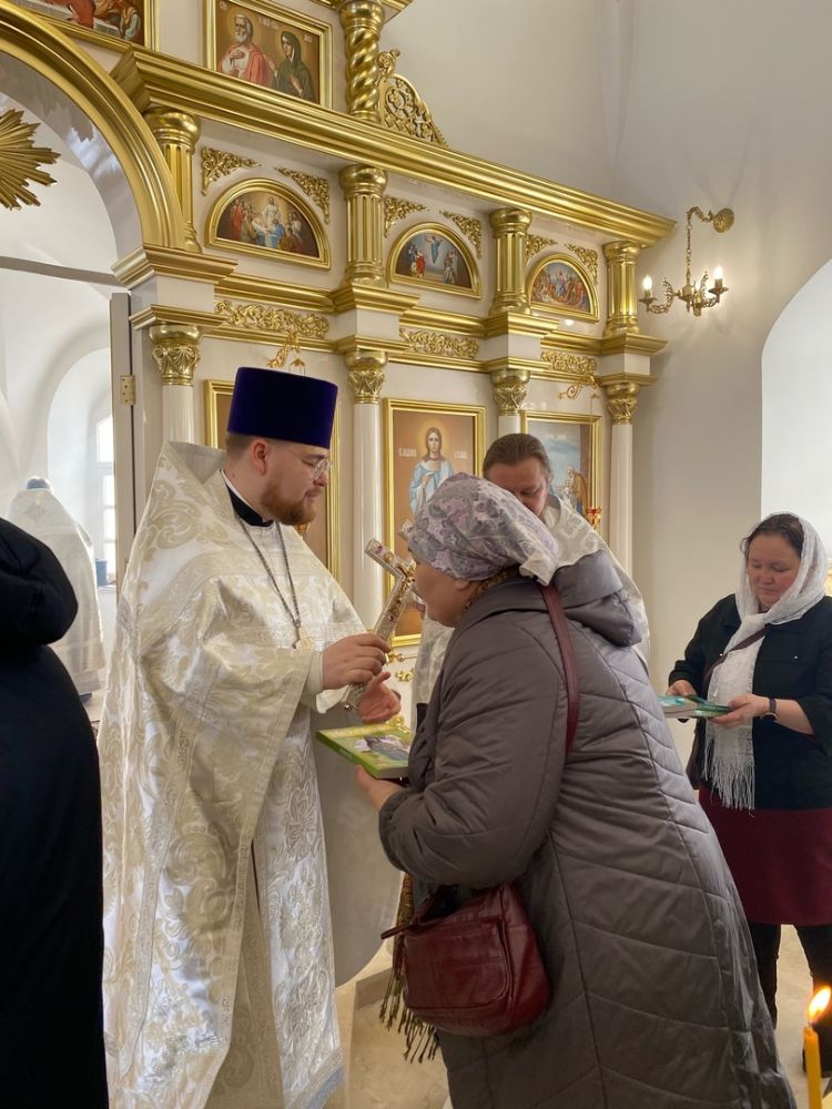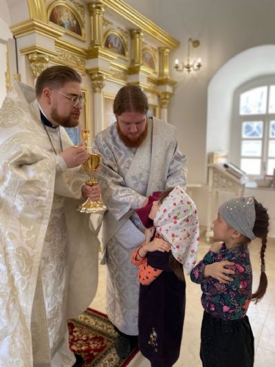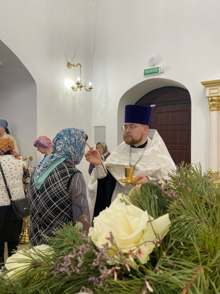 Напомним, освящение центрального придела храма – в честь Сретения Господня – состоялось 20 августа 2022 года, так что престольный праздник после освящения здесь отмечался впервые! Прихожане радостно готовились к этому дню, на Литургию собрались верующие не только из Азаново, но и из окрестных селений и Йошкар-Олы. Многие причастились Святых Христовых Таин.
