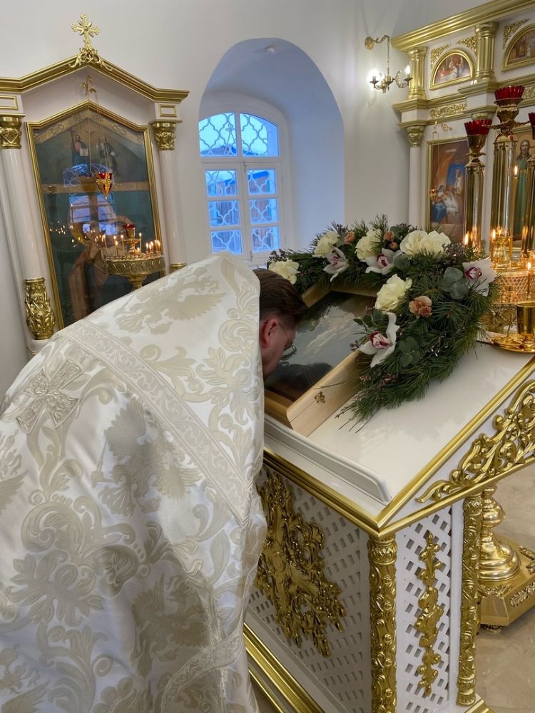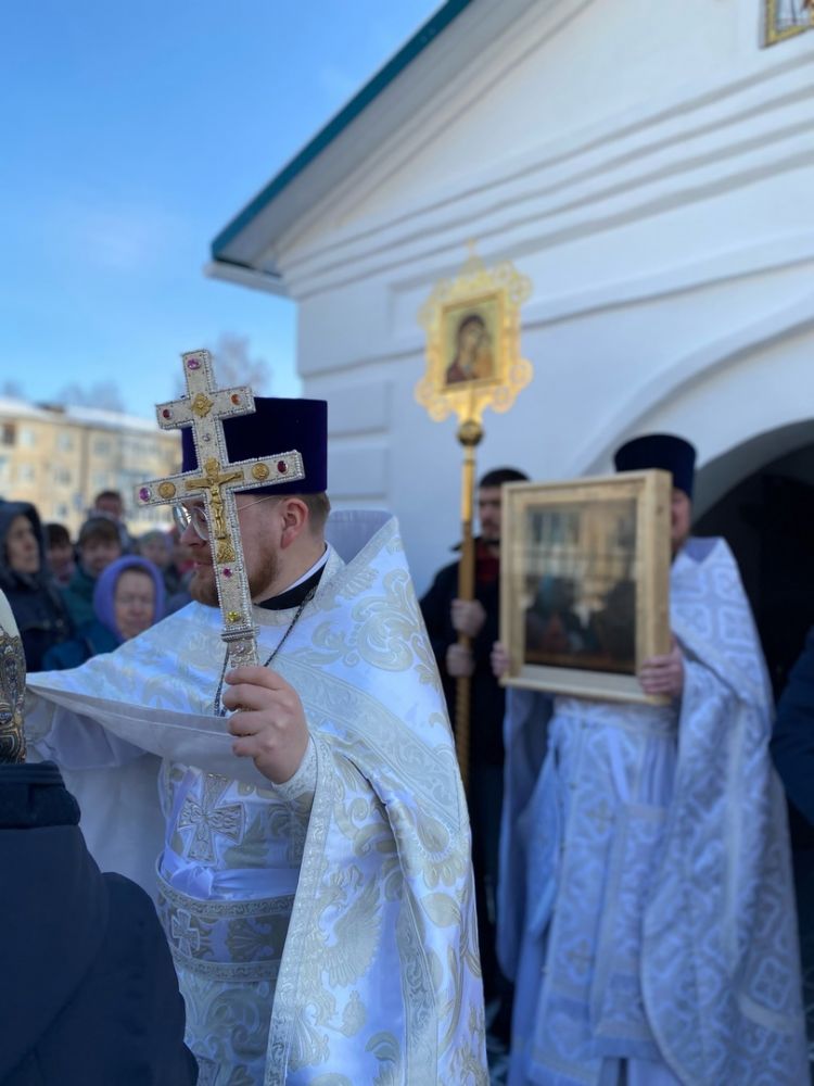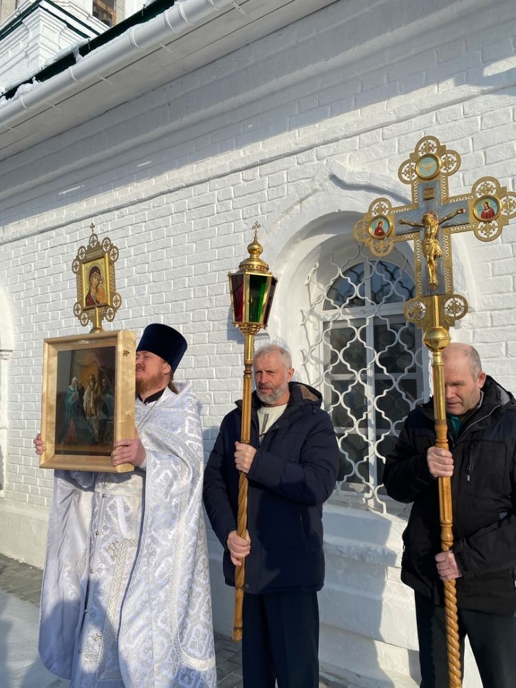 По окончании Литургии прошел крестный ход вокруг храма со чтением Евангелия и кроплением святой водой. После чего отец Артемий принимал поздравления с престольным праздником восстановленного в былой красоте храма. Все прихожане получили памятные подарки, а ребята из детского сада «Колосок» – сладости.