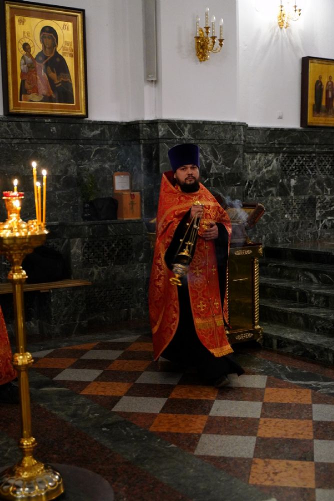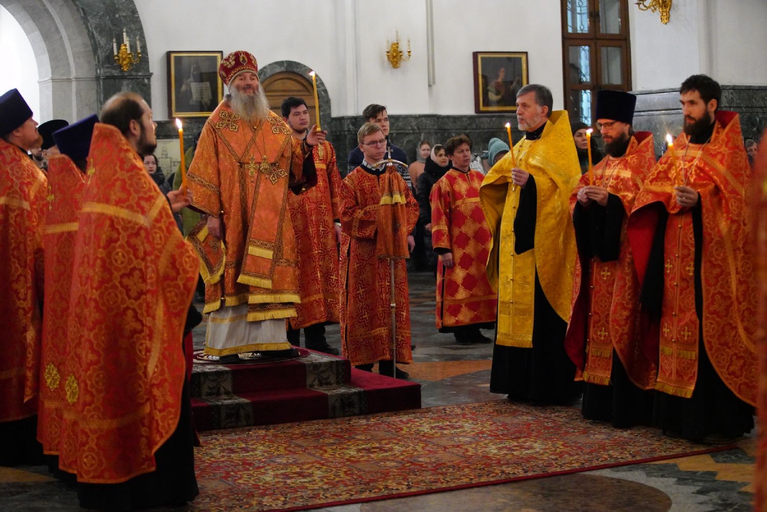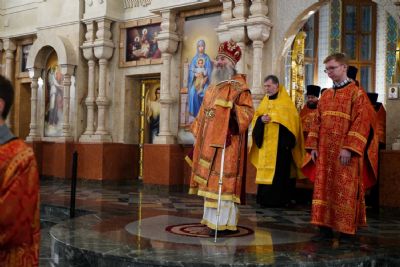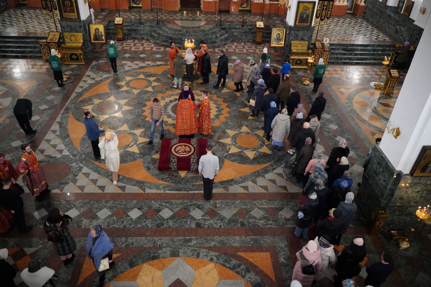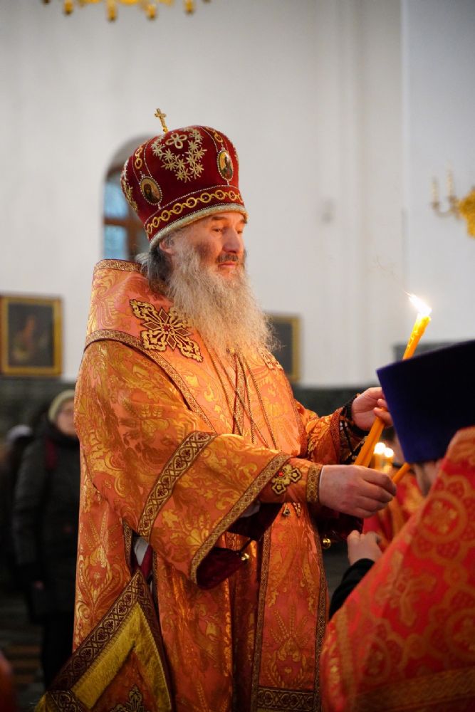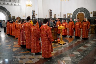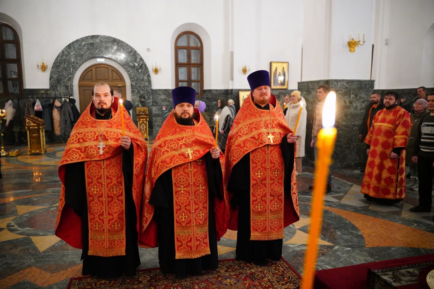 Владыке сослужили ключарь собора протоиерей Сергий Поглазов, полковой священник иерей Георгий Колотов, клирики кафедрального собора иереи Никифор Захаров, Евгений Самойлов, Александр Староверов и Иоанн Милютин, диакон Андрей Дружинин, а также протодиакон Михаил Козловский.