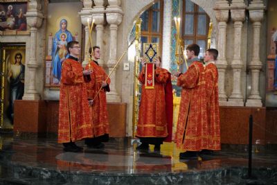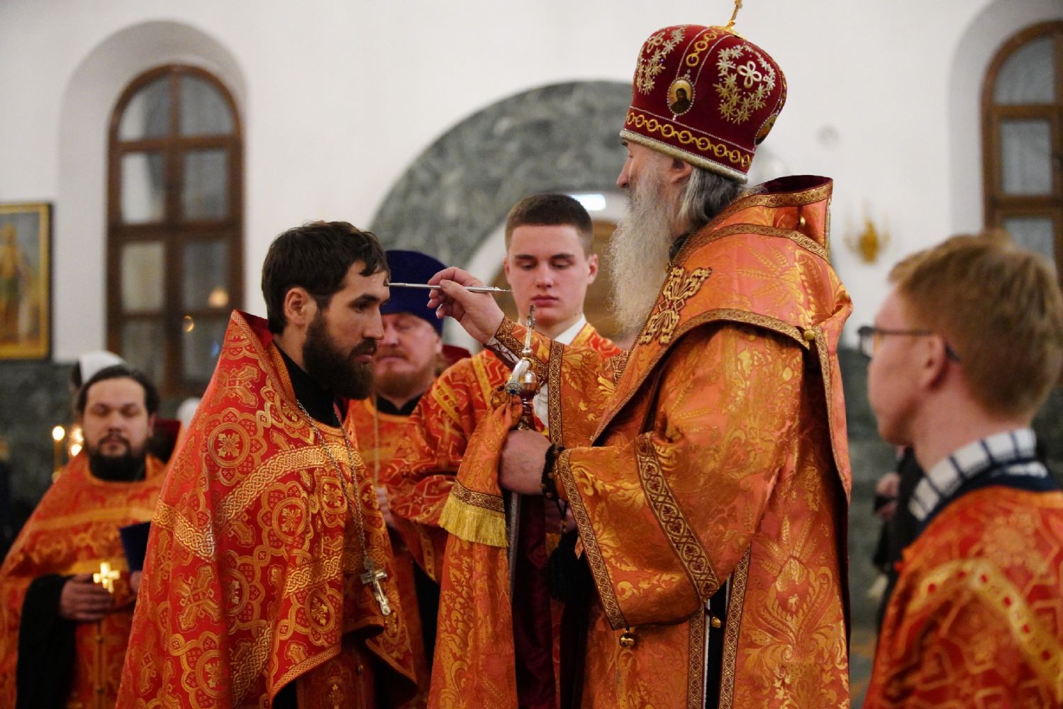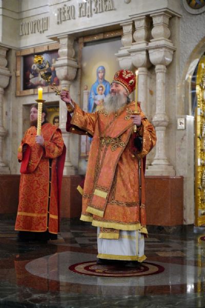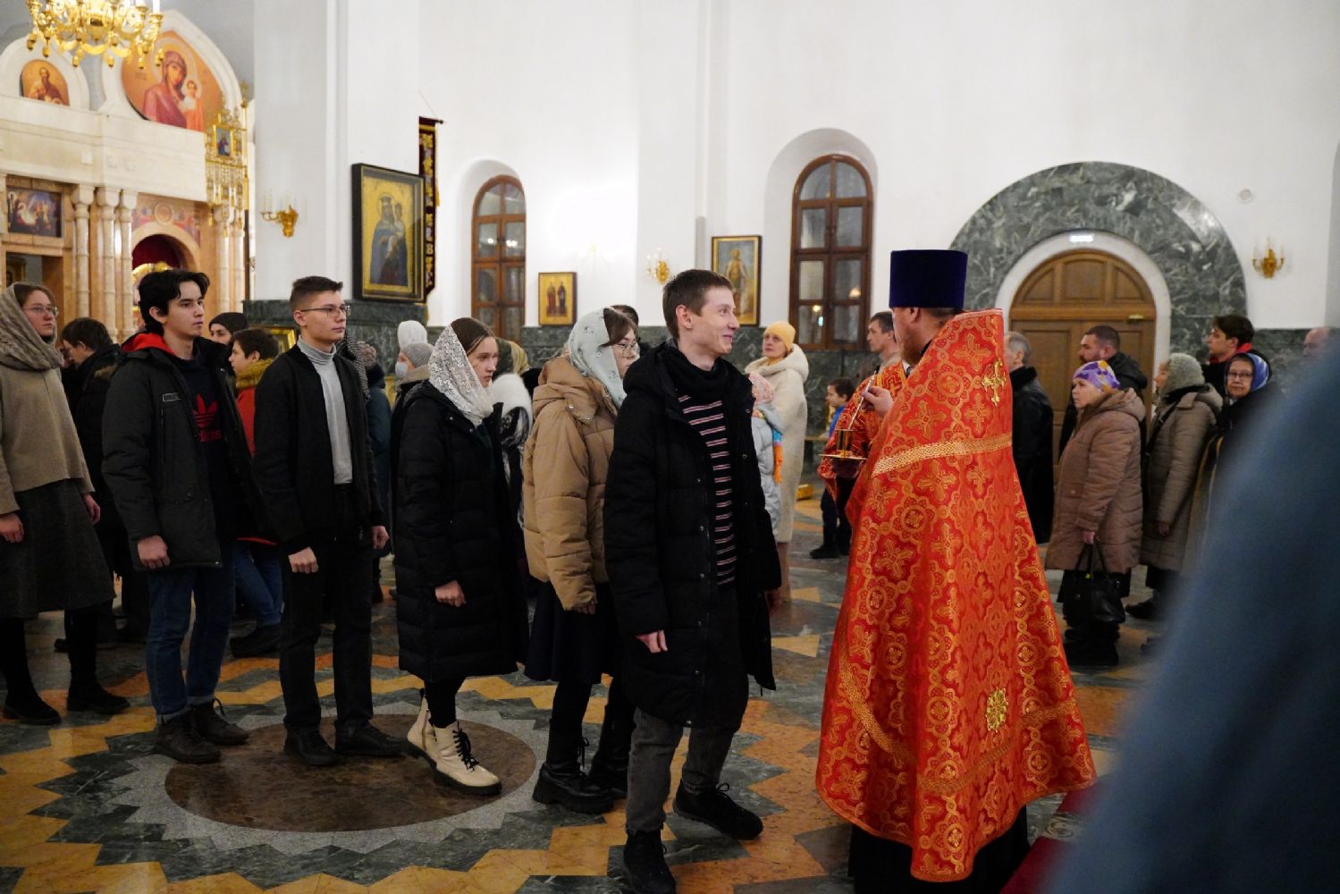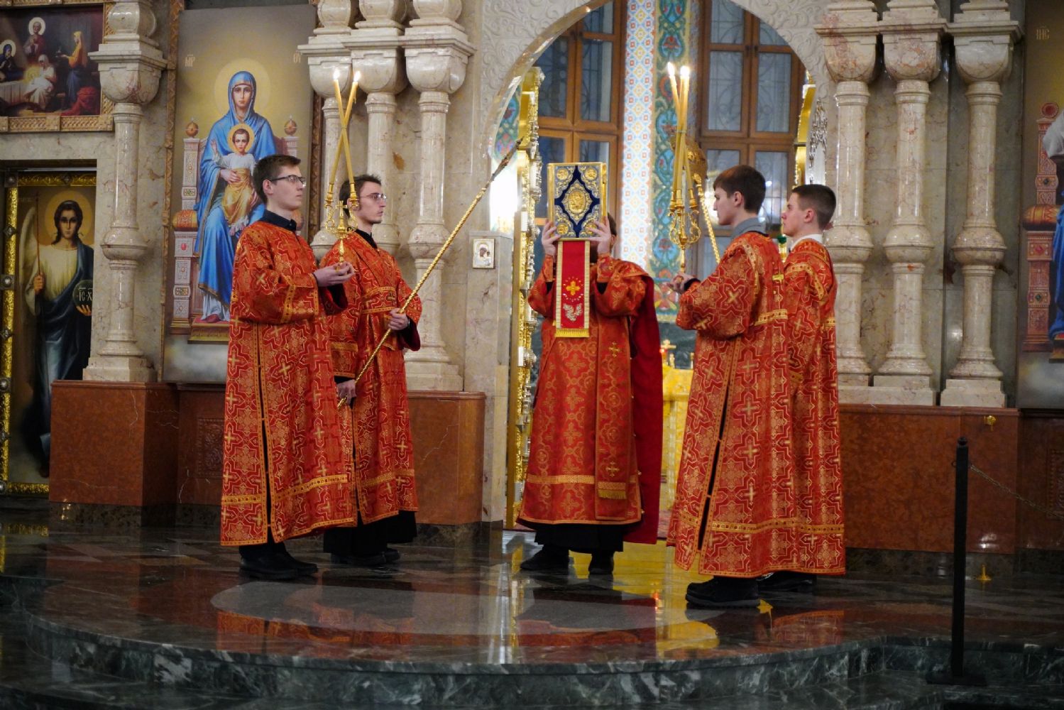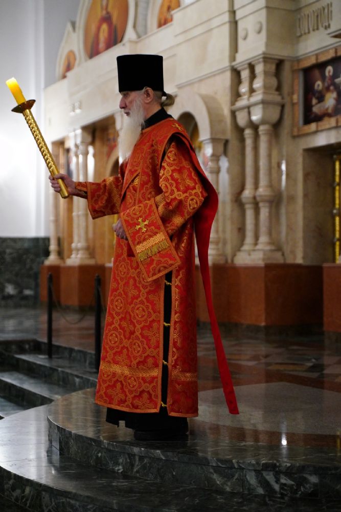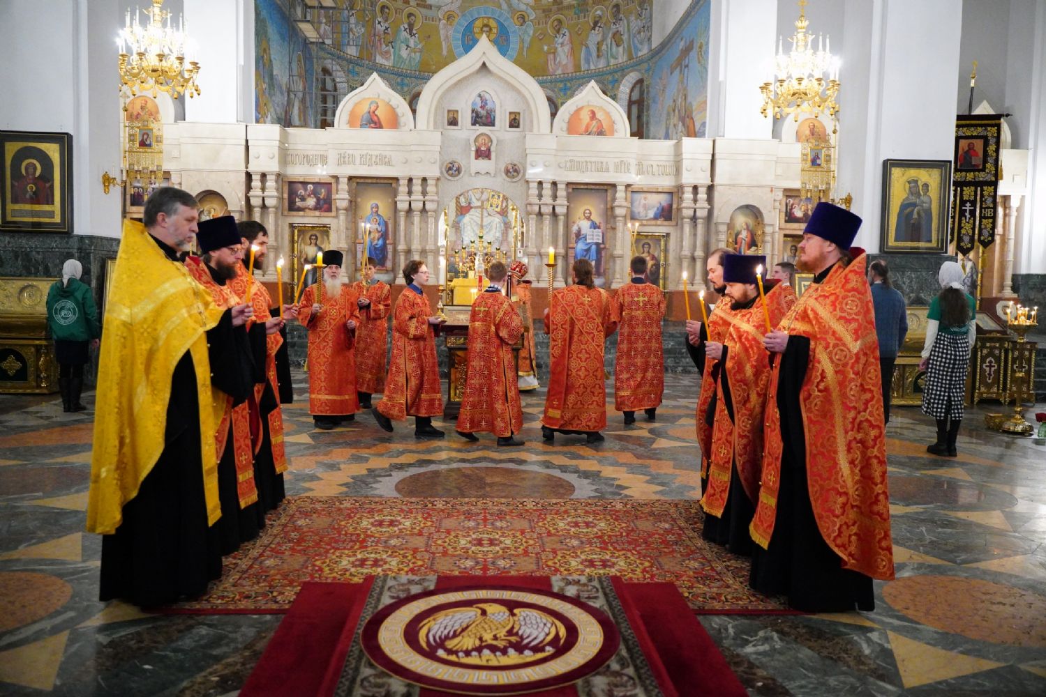 Владыке сослужили ключарь собора протоиерей Сергий Поглазов, полковой священник иерей Георгий Колотов, клирики кафедрального собора иереи Никифор Захаров, Евгений Самойлов, Александр Староверов и Иоанн Милютин, диакон Андрей Дружинин, а также протодиакон Михаил Козловский.