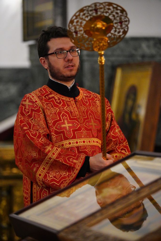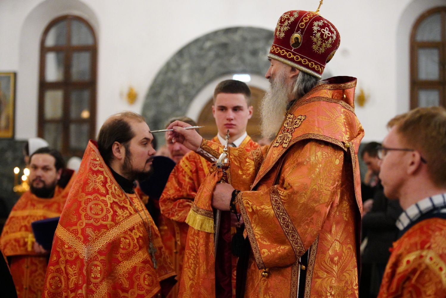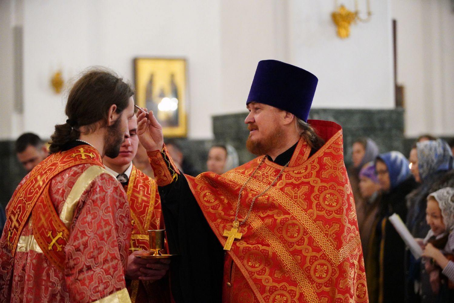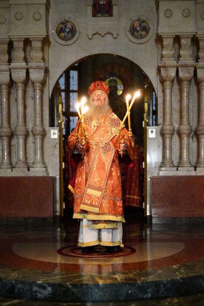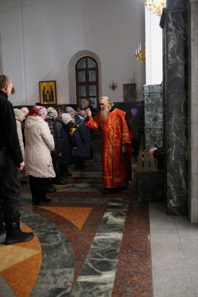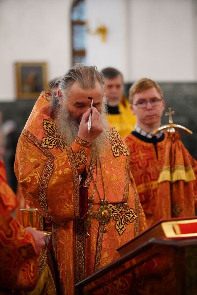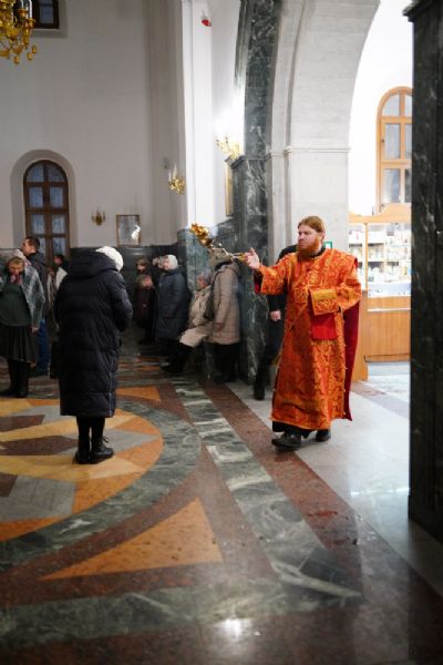 Владыке сослужили ключарь собора протоиерей Сергий Поглазов, полковой священник иерей Георгий Колотов, клирики кафедрального собора иереи Никифор Захаров, Евгений Самойлов, Александр Староверов и Иоанн Милютин, диакон Андрей Дружинин, а также протодиакон Михаил Козловский.