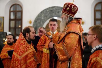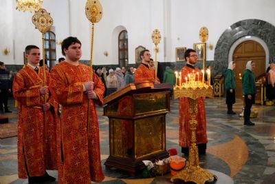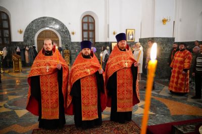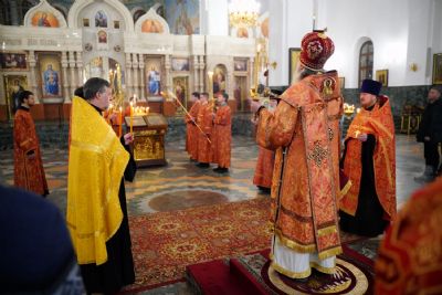 4 февраля вечером, в канун первой подготовительной Недели Великого поста, дня празднования Собора новомучеников и исповедников Российских, митрополит Йошкар-Олинский и Марийский Иоанн возглавил всенощное бдение в Благовещенском кафедральном соборе г. Йошкар-Олы.