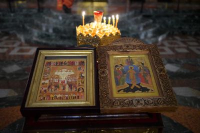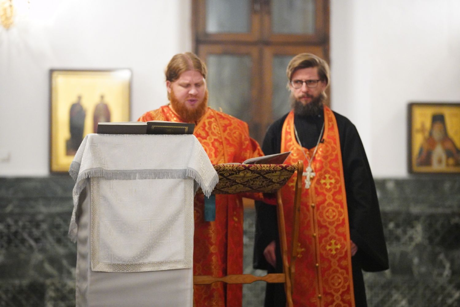 По случаю праздника на вечерне читались новозаветные паримии из книг Деяний святых апостолов, Посланий апостола Павла к Тимофею и к евреям - о исповедании Христа несмотря на любые внешние обстоятельства.