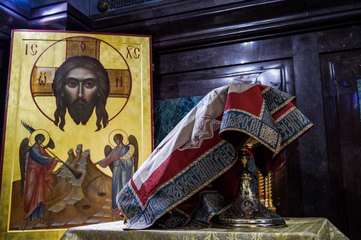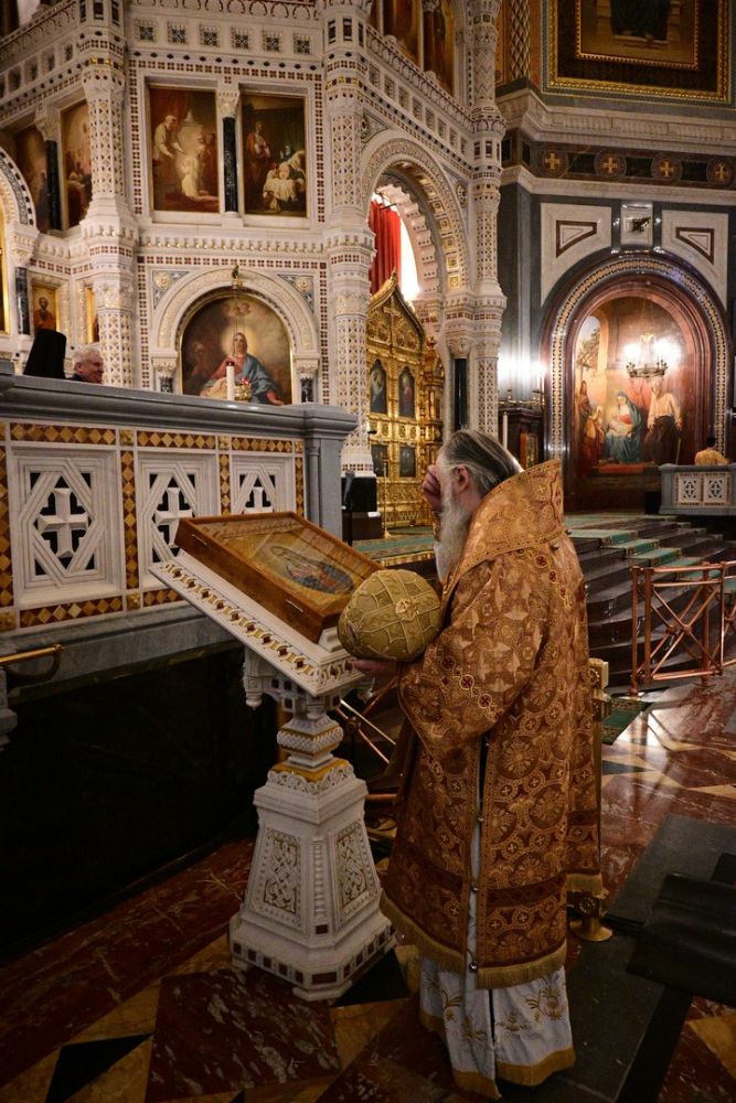 Далее митрополит Санкт-Петербургский и Ладожский Варсонофий прочитал молитву о Предстоятеле Русской Православной Церкви — Святейшем Патриархе Кирилле.