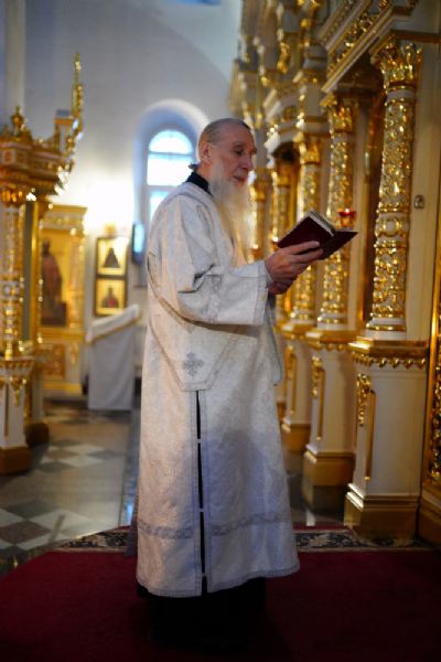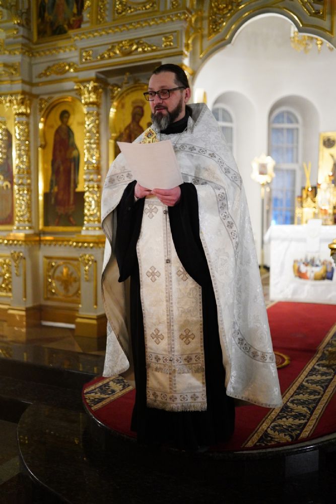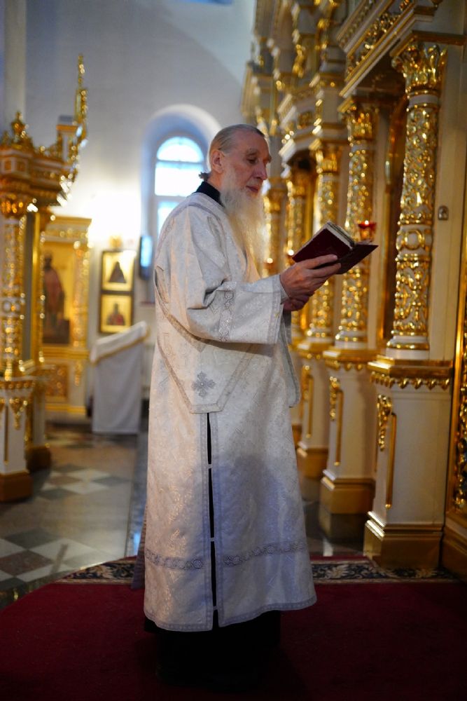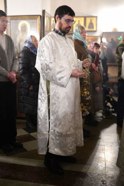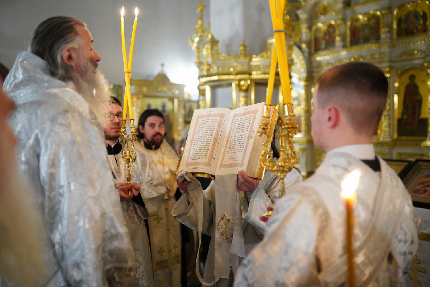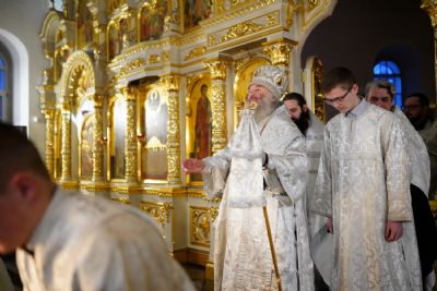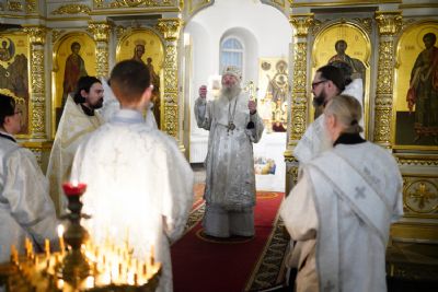 Владыке сослужили настоятель храма иерей Александр Лоскутов, клирики храма иереи Никита Смирнов, Димитрий Дьяков, Евгений Симаков и диакон Димитрий Кудряшов, а также протодиакон Михаил Козловский. Песнопения исполнял хор храма под управлением регента Наталии Поповой.