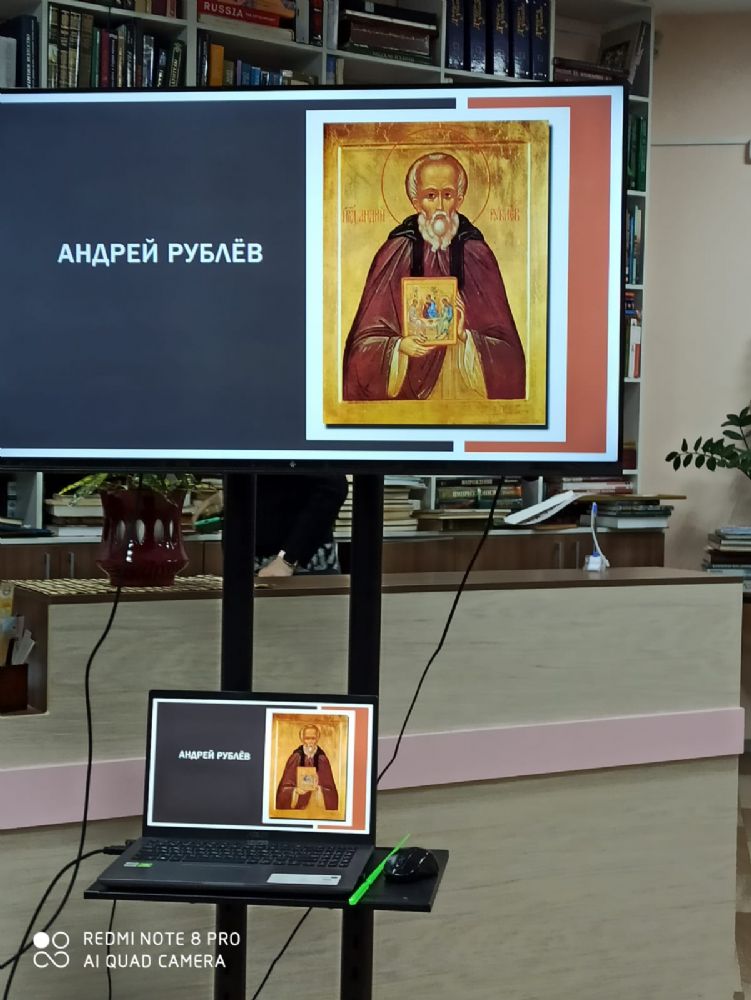 14 марта в Национальной библиотеке им. С. Г. Чавайна в рамках Дня православной книги для слушателей Православных образовательных курсов во имя священномученика Адриана Троицкого состоялась встреча с сотрудниками библиотеки, которые познакомили гостей с выставкой новых книг «Православная книга – символ русской культуры». Также курсантам была прочитана лекция по теме «Андрей Рублёв». В творчестве Рублёва нашли своё наивысшее воплощение представления русского народа об идеале добра и красоты. Трудясь во славу Божию, иконописец сумел запечатлеть в зримых земных формах вечную бессмертную сущность Христа. Занятие, которое провела заведующая отделом литературы по искусству Сокольникова Ольга Александровна, прошло с большой пользой для курсантов.