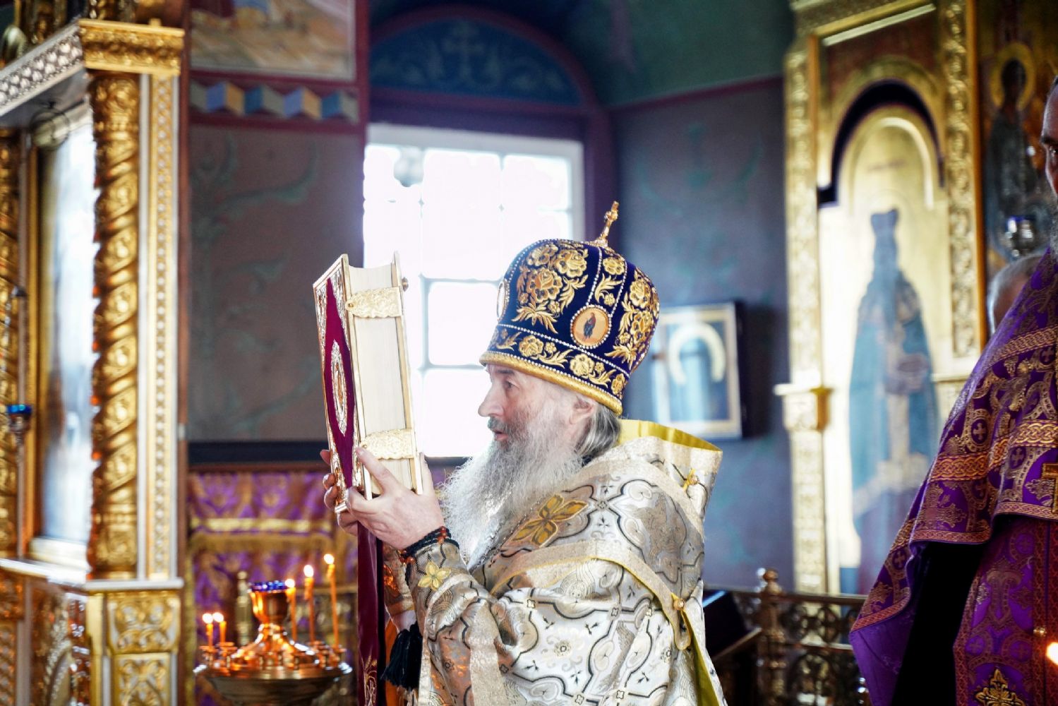 За богослужением были прочитаны две главы из Евангелия от Марка, посвященные страданиям Господа нашего Иисуса Христа. После евангельского чтения митрополит Иоанн обратился к собравшимся с архипастырским словом.