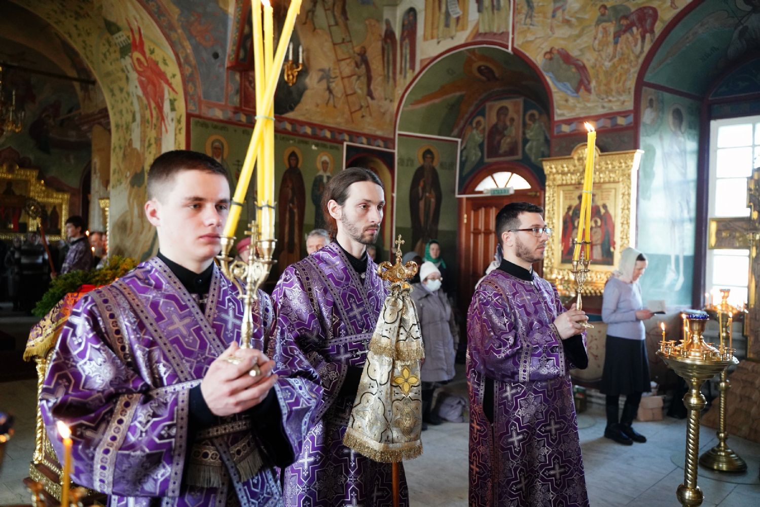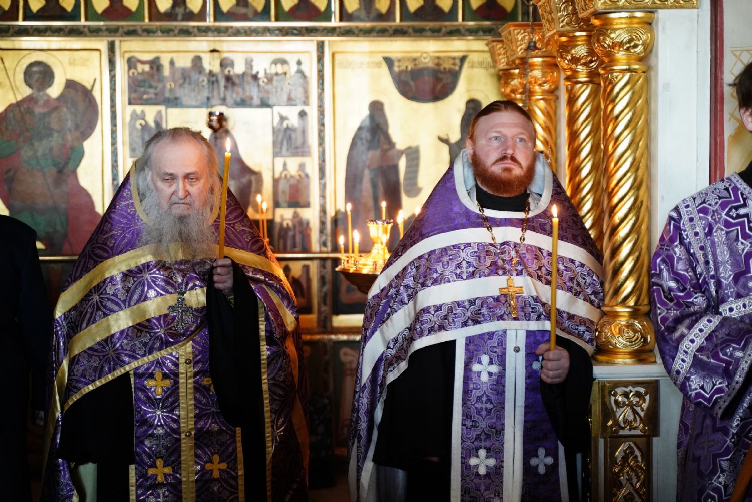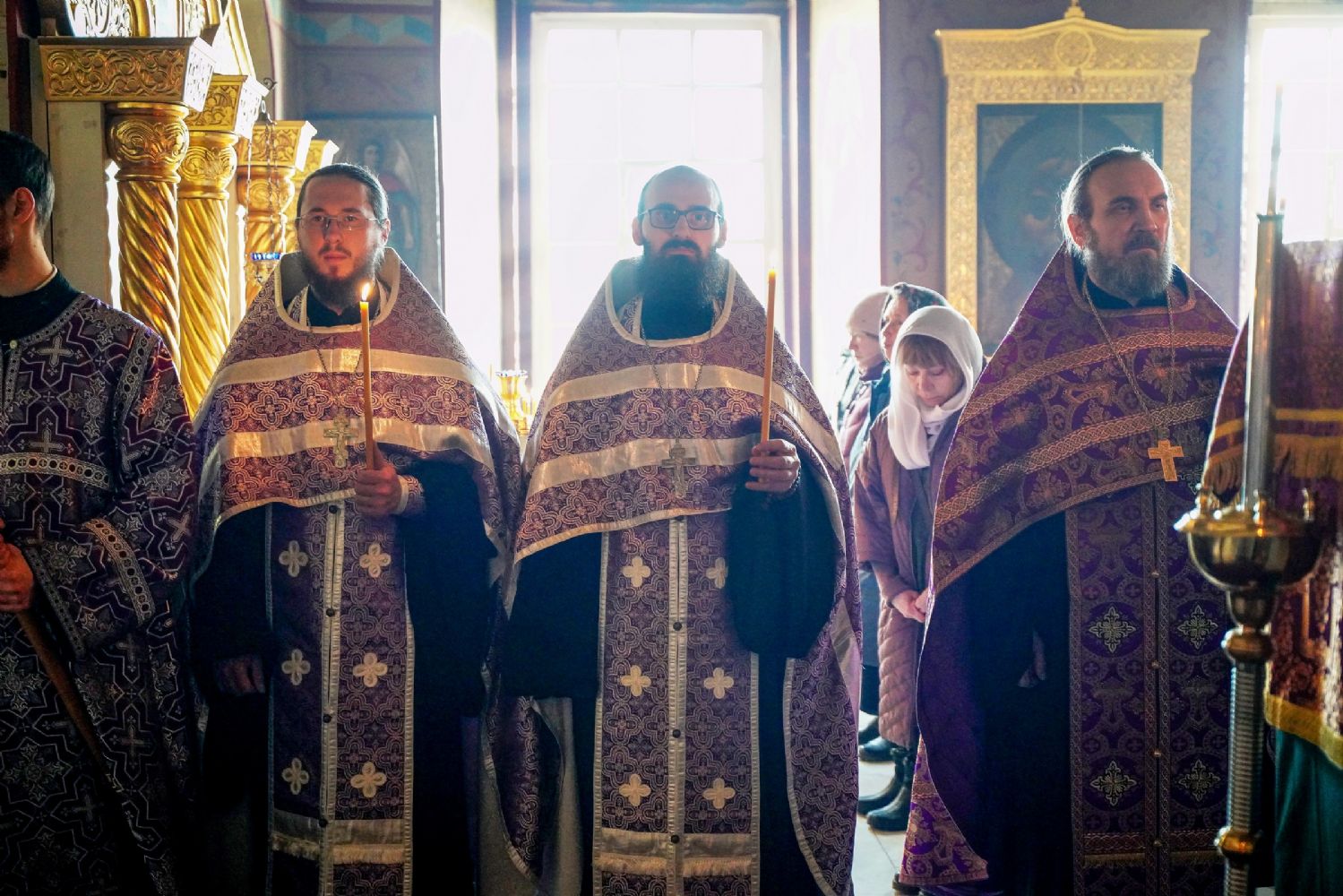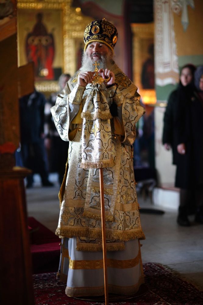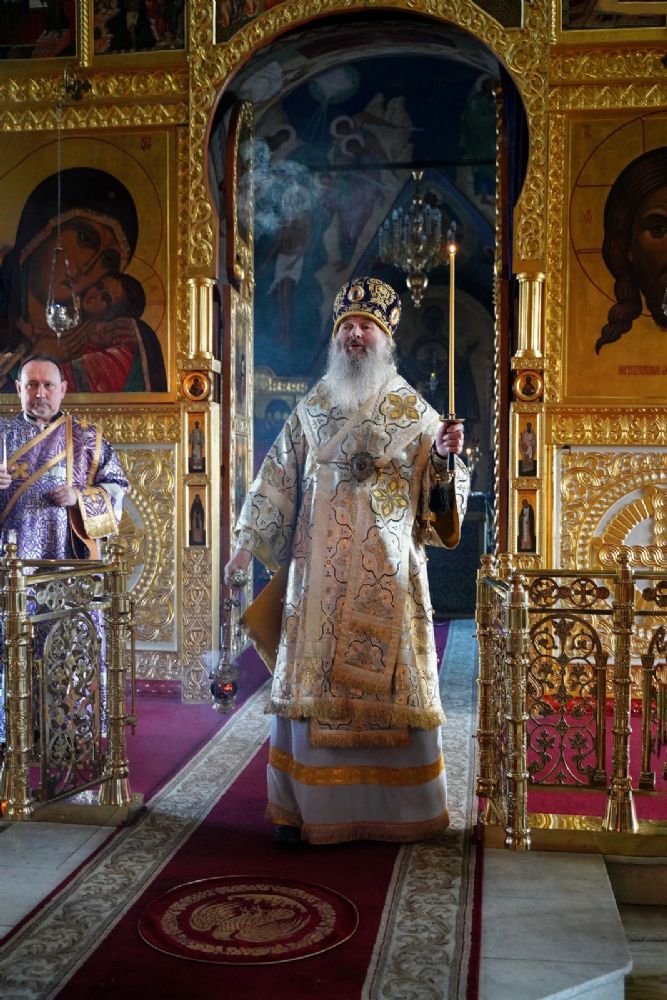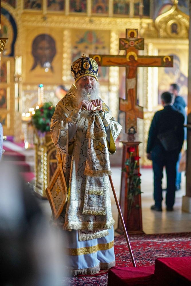 Владыке сослужили секретарь Йошкар-Олинского епархиального управления иеромонах Серафим (Пасанаев), настоятель собора протоиерей Евгений Кутырев, клирики собора и протодиакон Михаил Козловский. Песнопения исполнял хор собора под управлением Ангелины Бабиной.