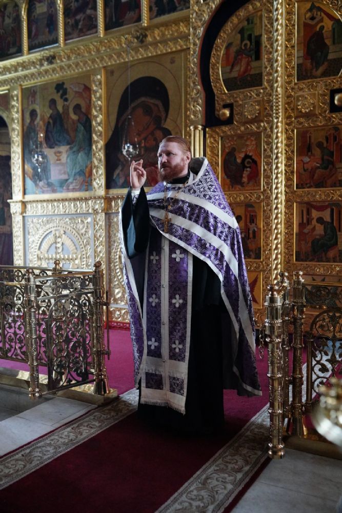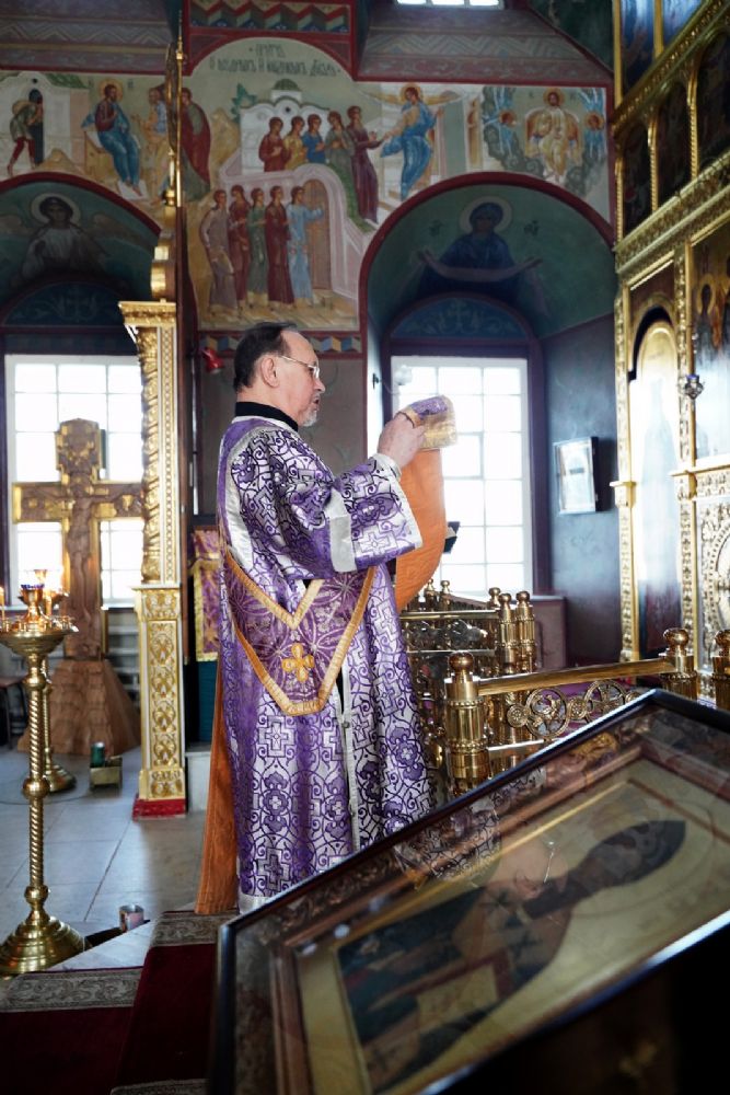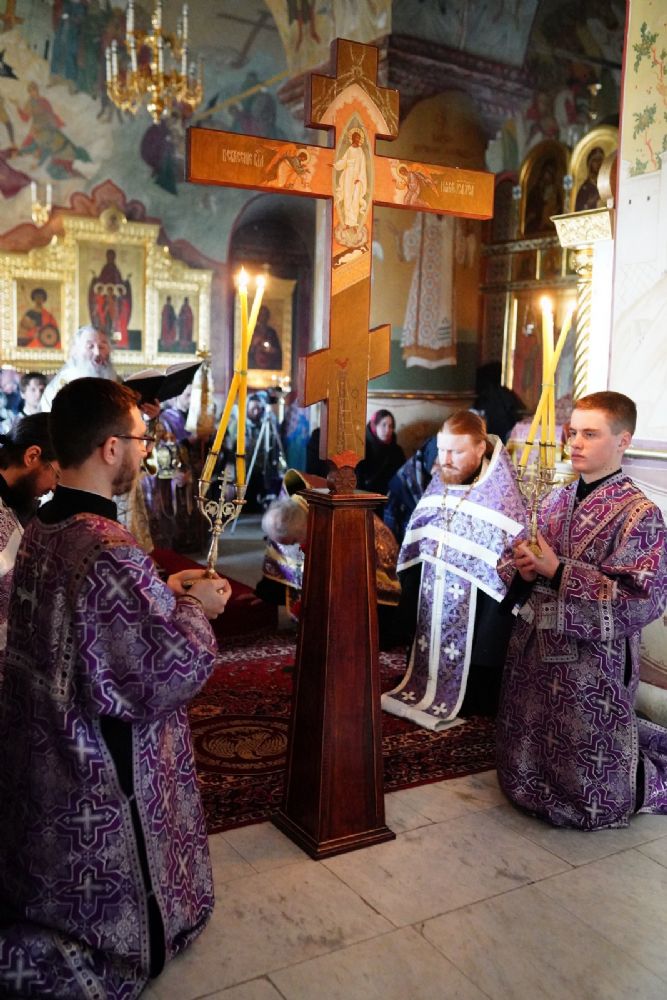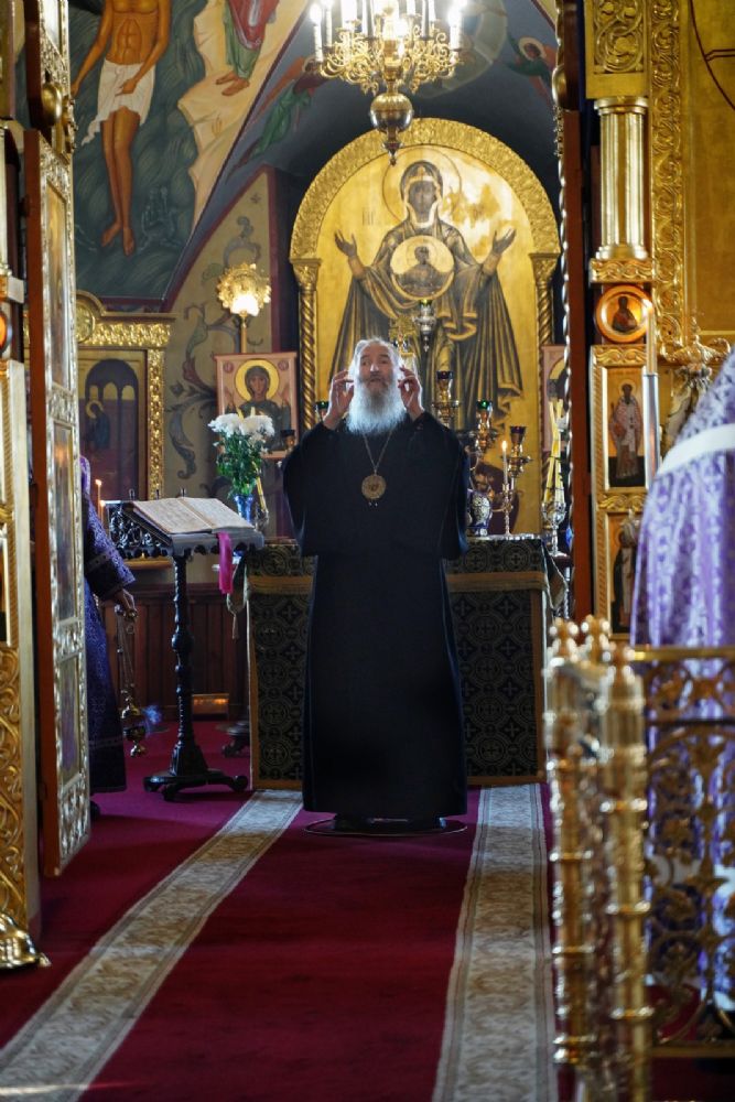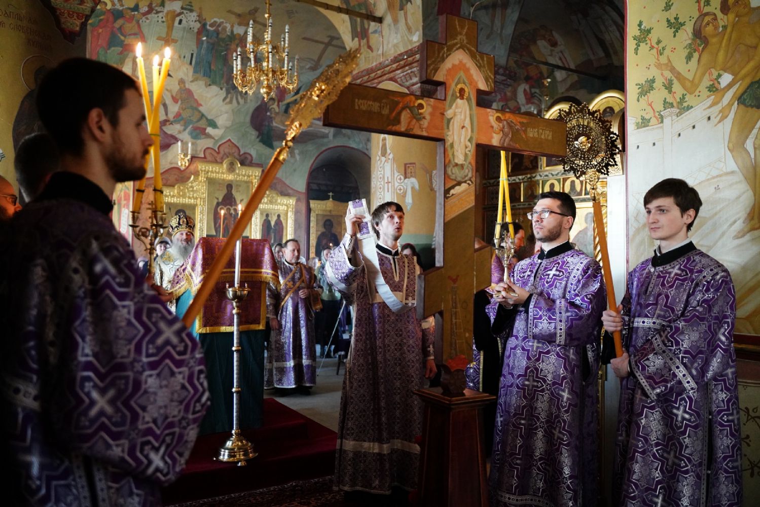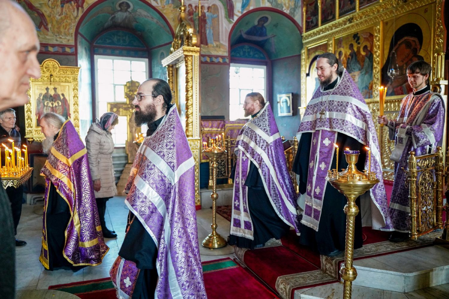 Владыке сослужили секретарь Йошкар-Олинского епархиального управления иеромонах Серафим (Пасанаев), настоятель собора протоиерей Евгений Кутырев, клирики собора и протодиакон Михаил Козловский. Песнопения исполнял хор собора под управлением Ангелины Бабиной.