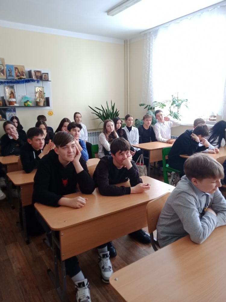 На следующем уроке на встречу с отцом Василием пришли старшеклассники. Вместе с педагогами школы и они услышали слово духовного наставника о значении духовной литературы, о появлении первой печатной книги на Руси.