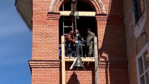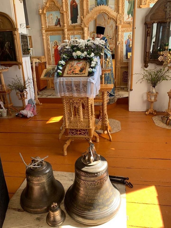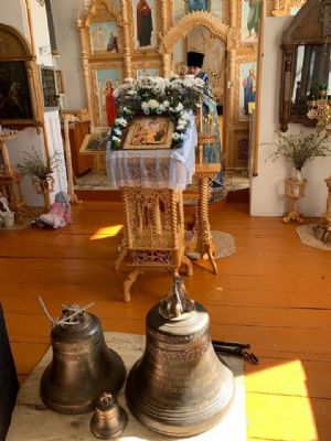 Три новых колокола, вес наибольшего из которых 105 кг, изгототовлены на колокольном заводе г. Тутаев Ярославской области. Они с молитвами были окроплены святой водой и подняты на колокольню, которая была построена в восстанавливающемся храме не так давно. Первый благовест там прозвучал летом прошлого года, а теперь звонница пополнилась новыми колоколами, и над селом, радуя прихожан и гостей с других приходов, раздался полноценный праздничный колокольный звон.