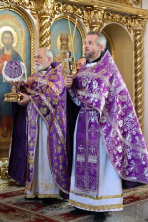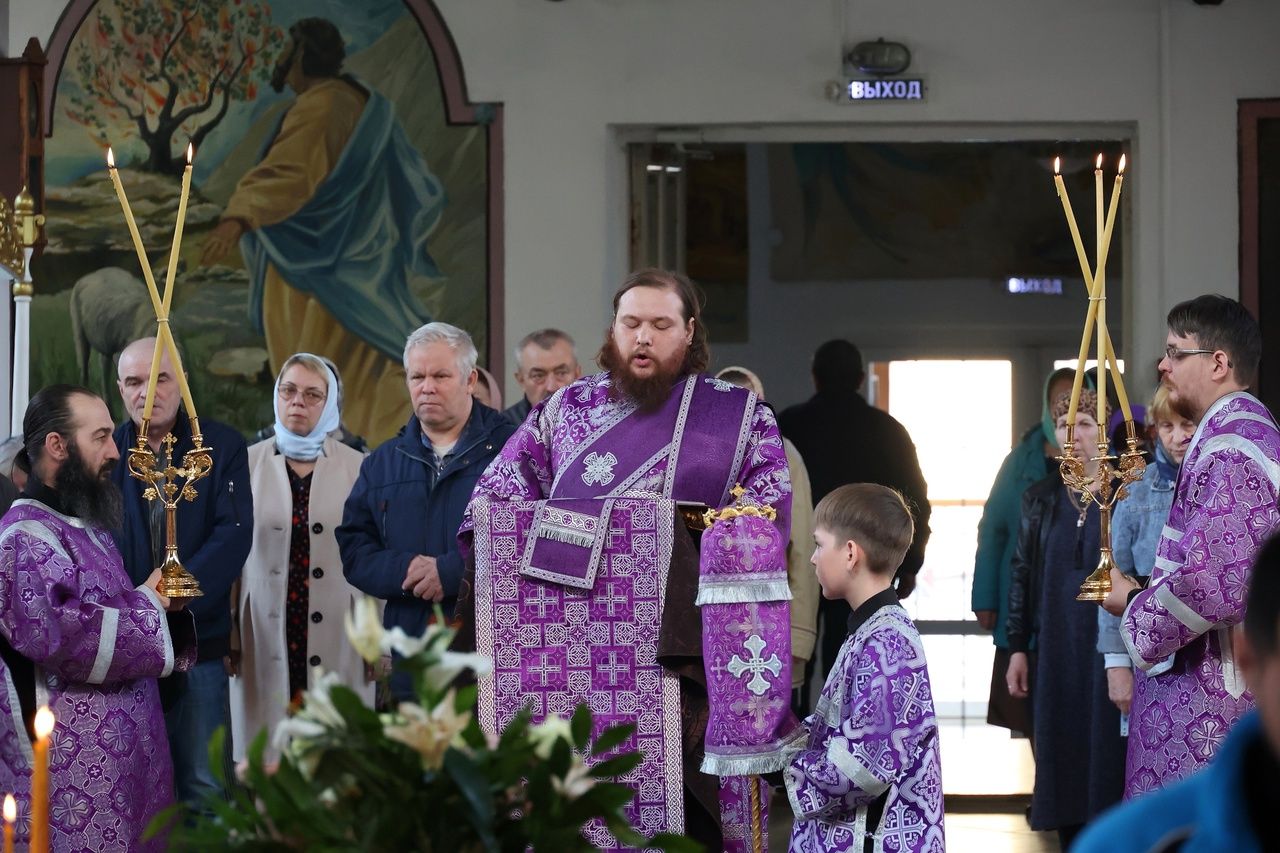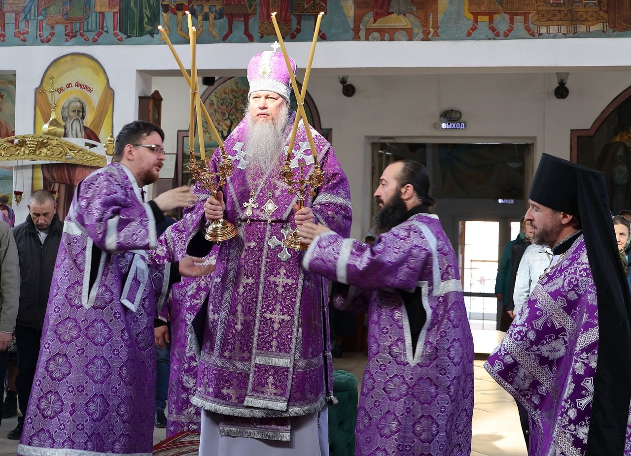 Его Преосвященству сослужило духовенство собора. Песнопения исполнял архиерейский хор под управлением Любови Михеевой.