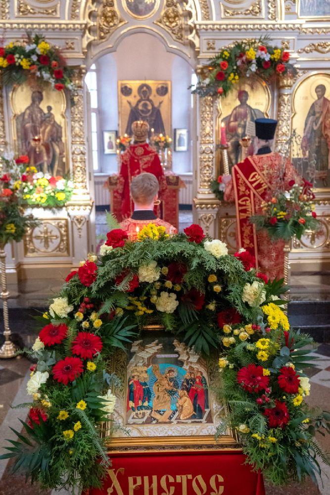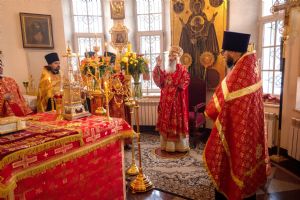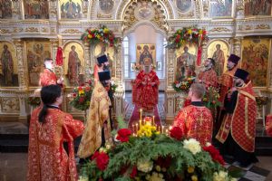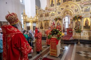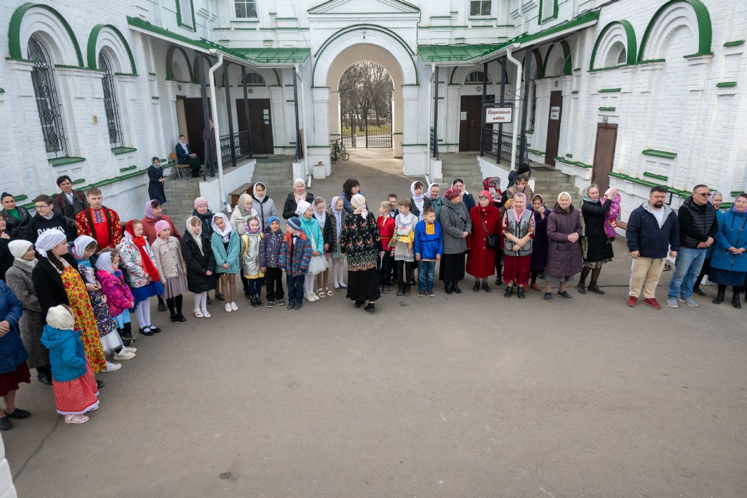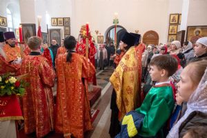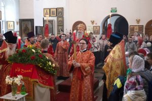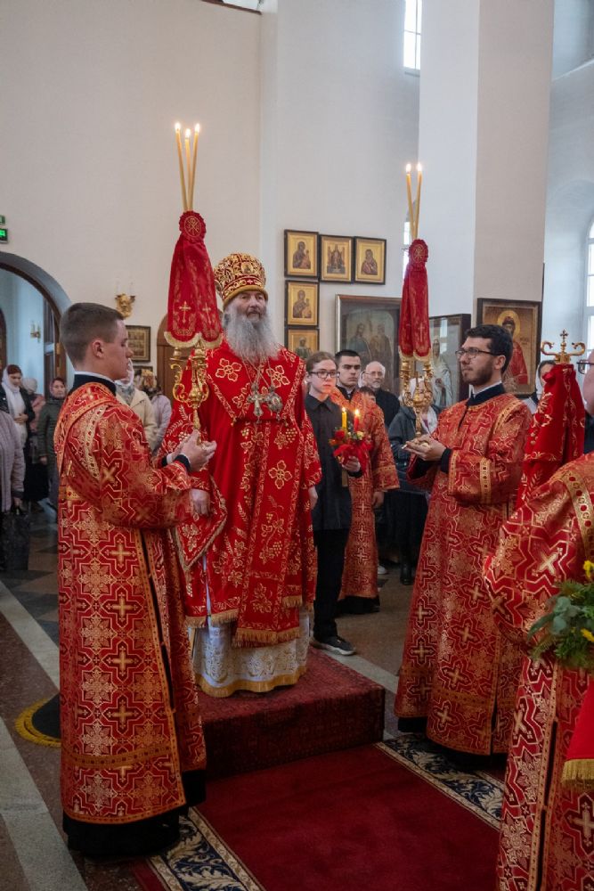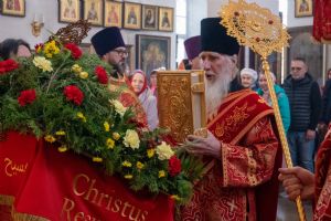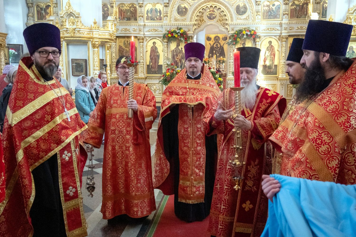 Владыке сослужили настоятель храма иерей Александр Лоскутов, клирики храма и протодиакон Михаил Козловский. Пасхальные песнопения исполняли хор храма под управлением регента Наталии Поповой и детский хор воскресной школы храма.