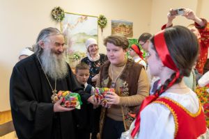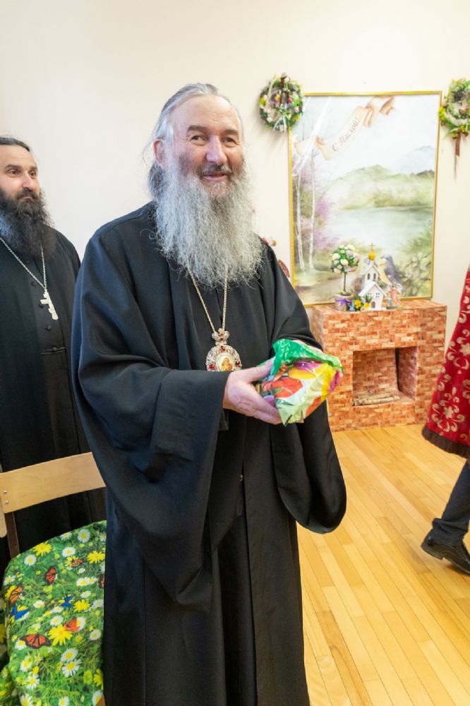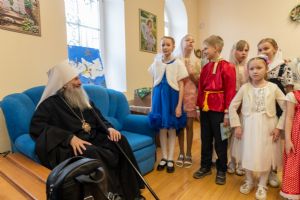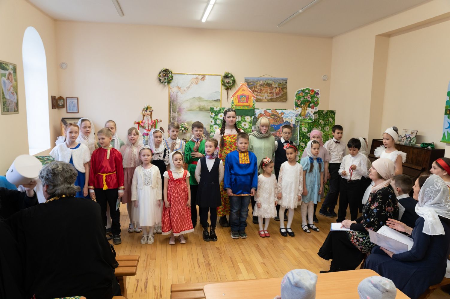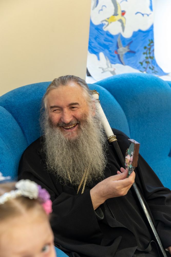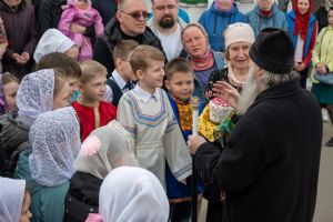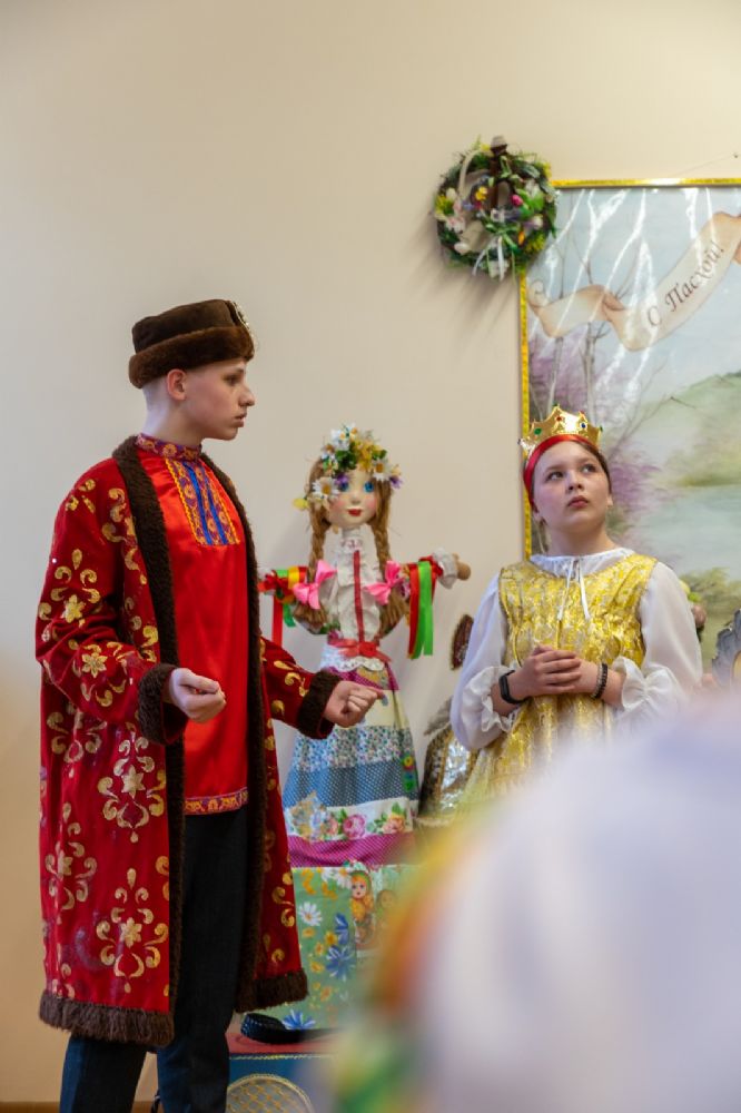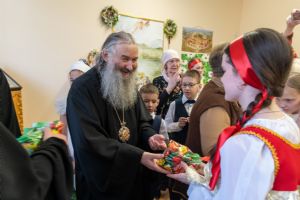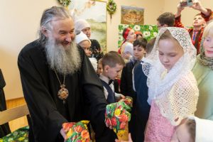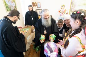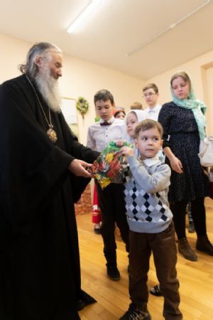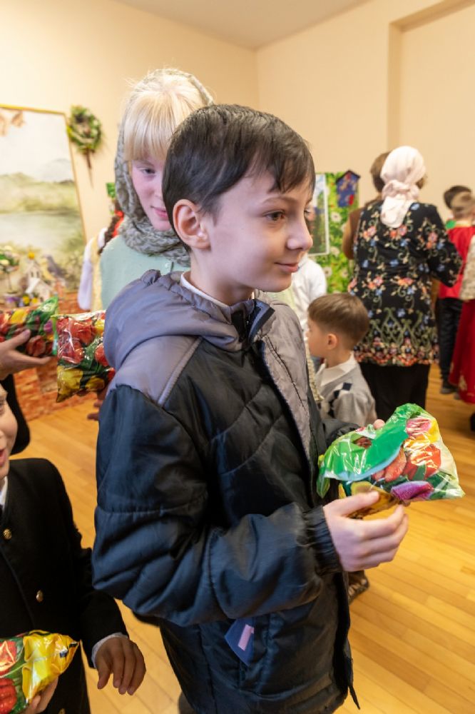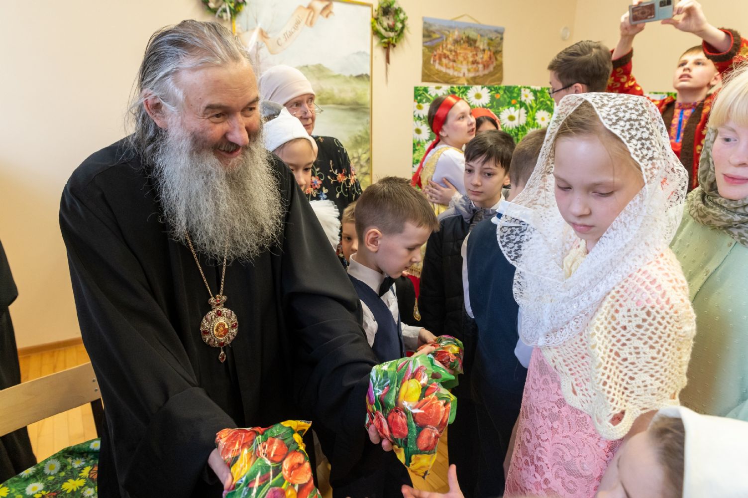 В завершение всех со светлым праздником Христова Воскресения поздравили воспитанники воскресной школы, показав праздничную концертную программу. Дети с воодушевлением читали стихи и исполняли песни, представили кукольный спектакль и костюмированное представление по сказке «Аленький цветочек». Всем юным актерам владыка вручил сладкие подарки.