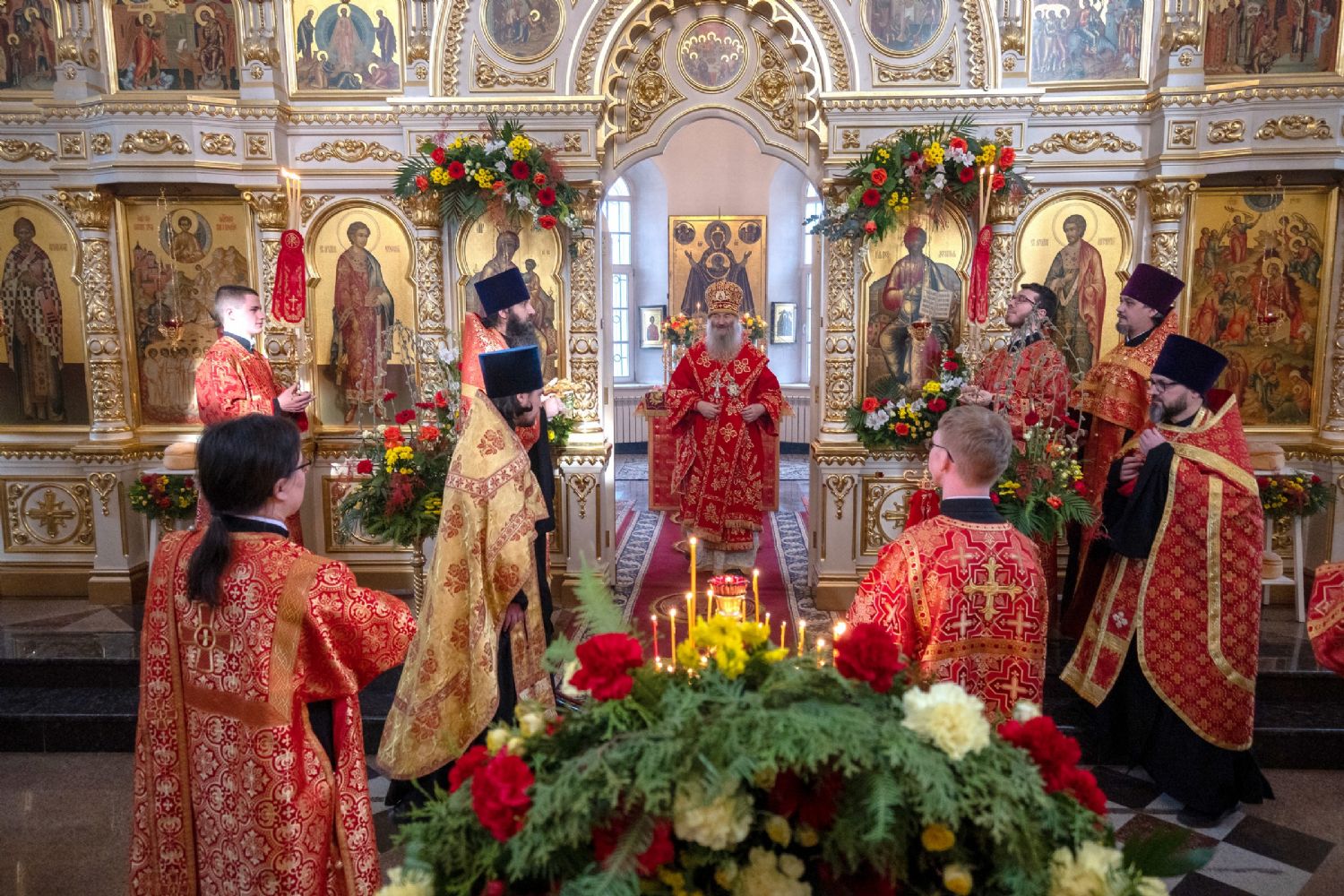 Митрополит Иоанн возглавил пасхальную вечерню в храме Рождества Христова