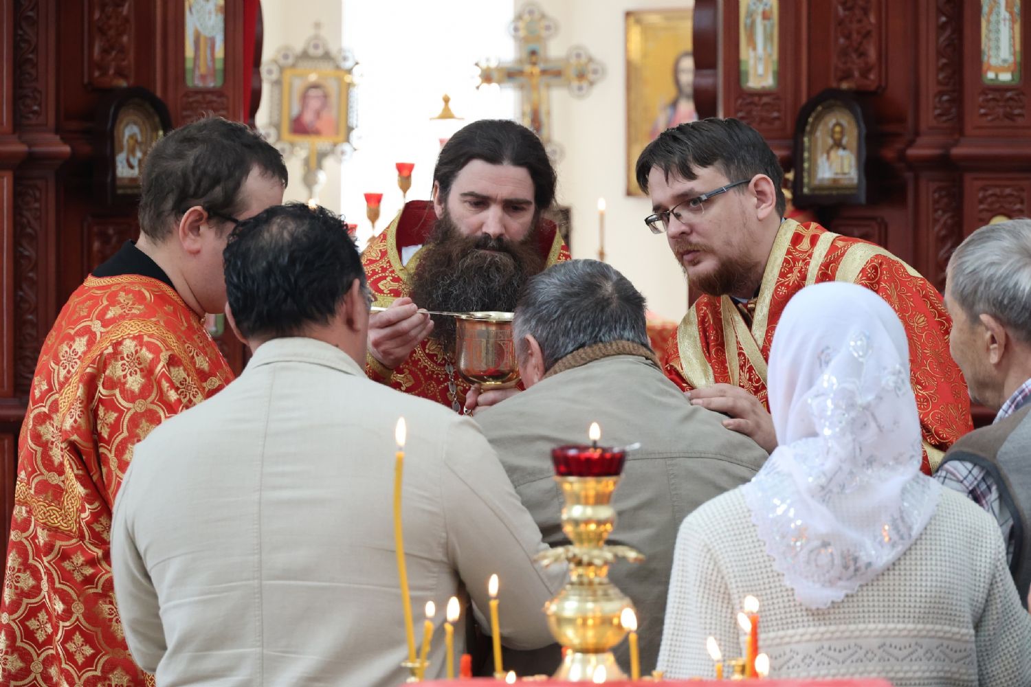 20 апреля, в Светлый четверг, епископ Волжский и Сернурский Феофан совершил Божественную литургию в храме новомучеников и исповедников Российских в г. Волжске.