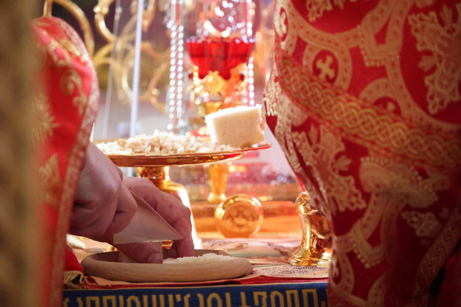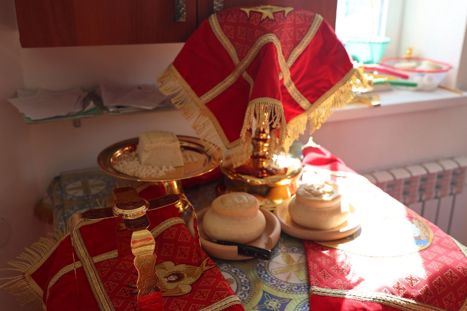 Сегодня мы в конце Литургии прочитали молитву на раздробление артоса. У святых апостолов и учеников Иисуса Христа был обычай: когда уже Господь наш Иисус Христос вознёсся на Небо, то Его ученики в напоминание о том, что Христос с ними всегда, оставляли на столе место и ставили туда хлеб. А затем возносили его и говорили: «Христос воскресе!» в память о том, что Христос воистину воскрес. И эта традиция осталась в Церкви – в день Воскресения Христова после службы освящается артос, он находится всю неделю около Царских врат, каждый день он берется на крестный ход, в Светлую субботу, после окончания Божественной литургии, этот артос раздробляется и раздаётся верующим так же, как это делали святые апостолы в древности. Желаю, чтобы каждый внушающий эту святыню принял в себя божественную благодать, которая каждого человека преображает и исцеляет».