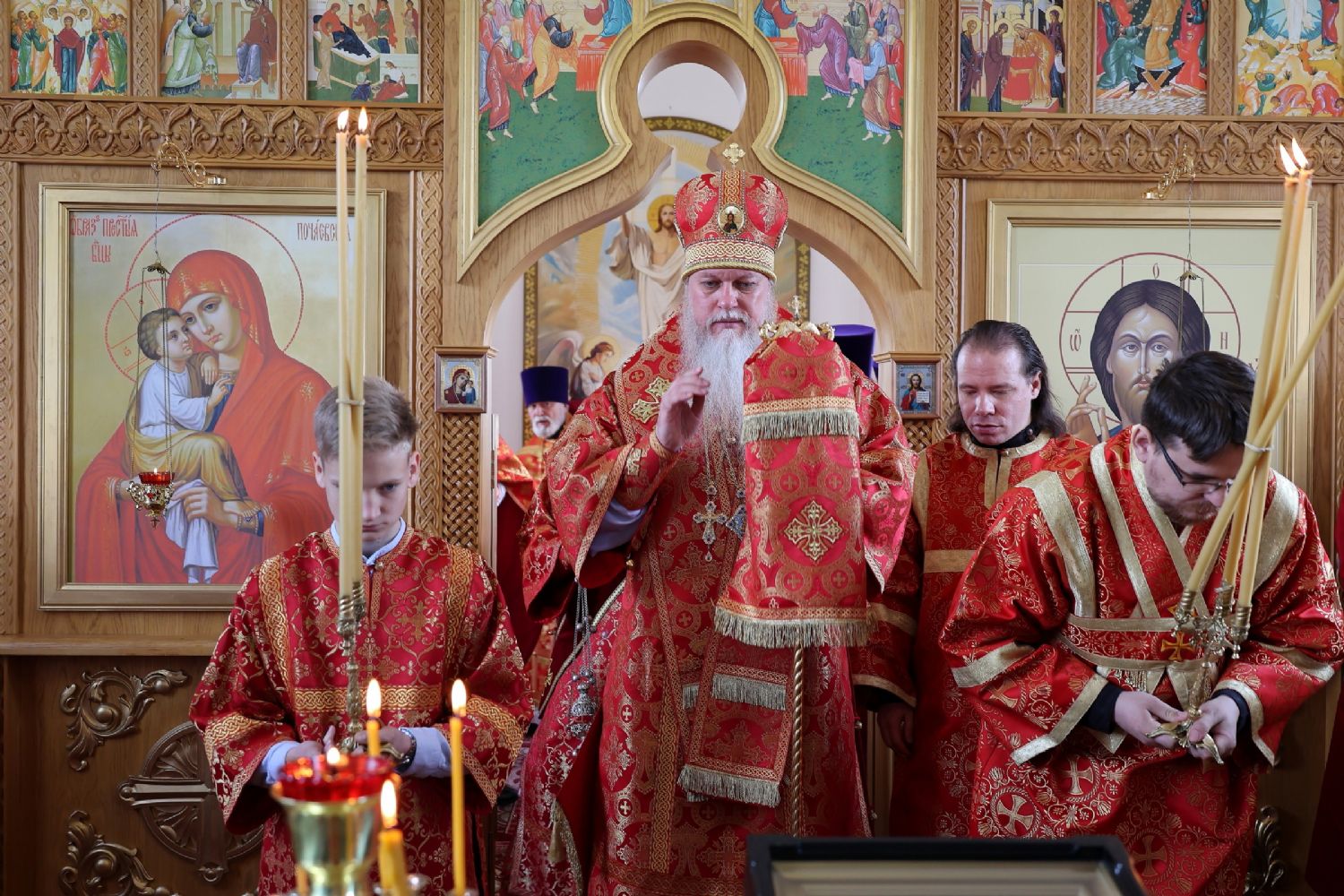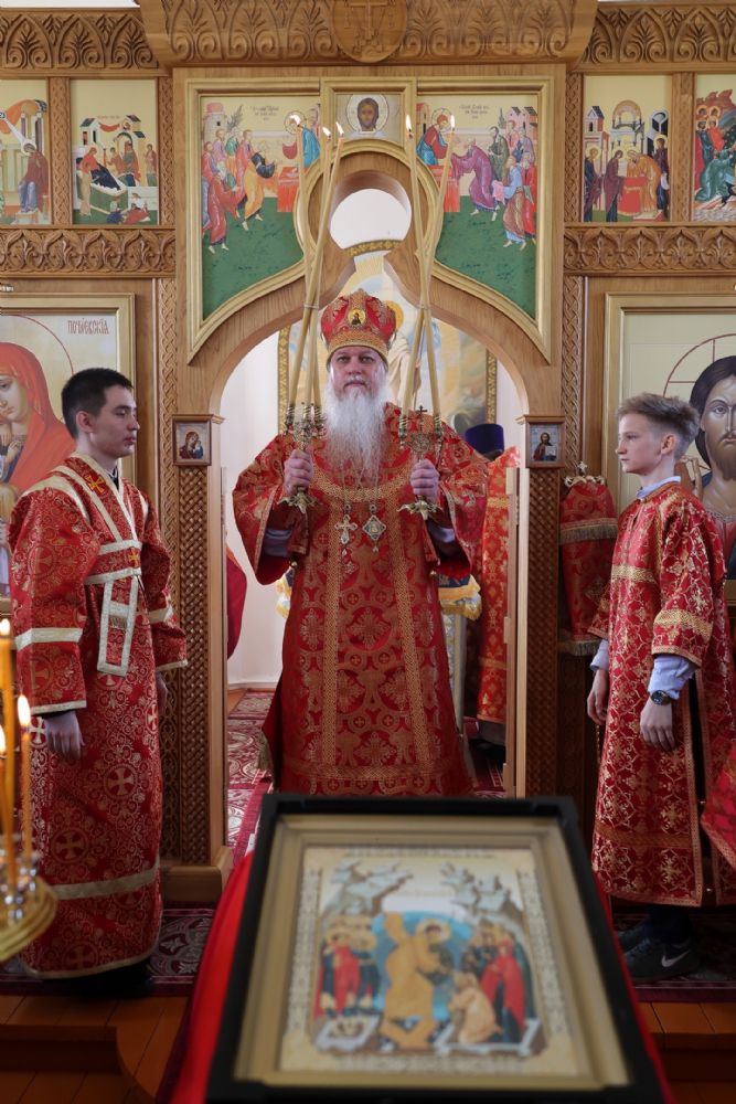 Архипастырю сослужили клирики Никольского кафедрального собора и Волжского районного благочиния, пел хор под управлением Марии Захаровой.