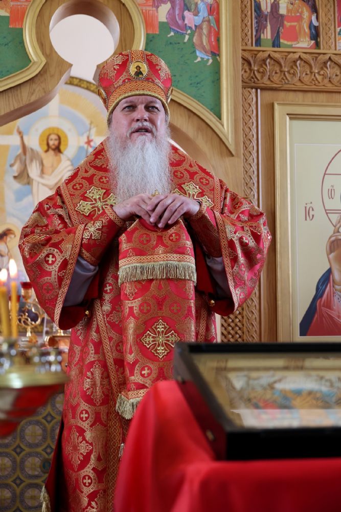 После богослужения глава епархии обратился к прихожанам с проповедью.