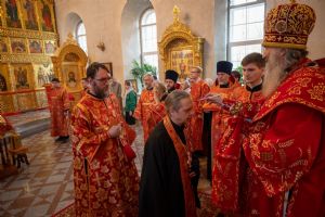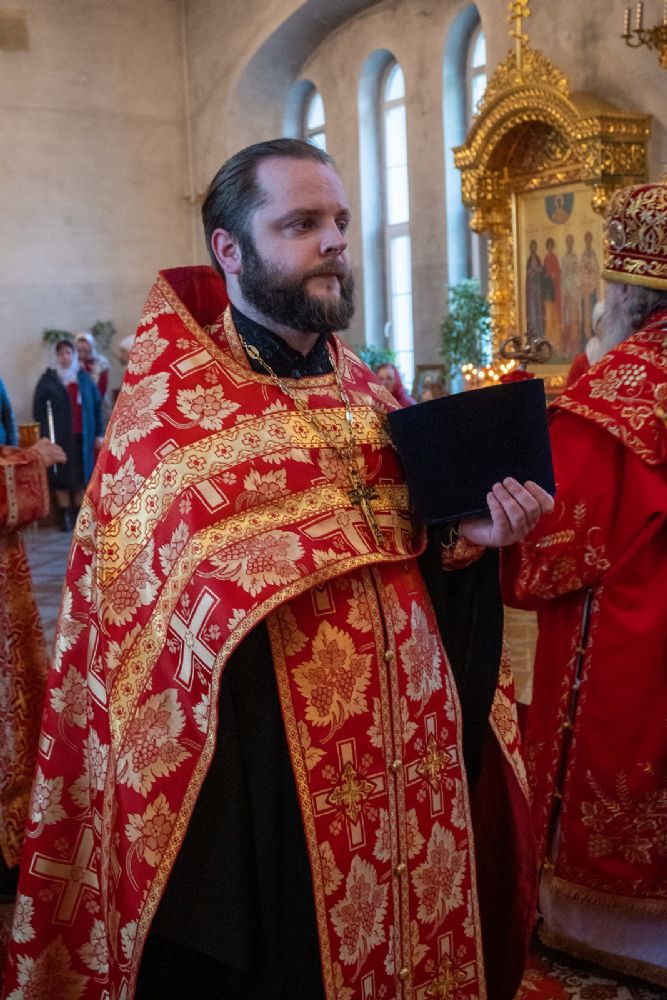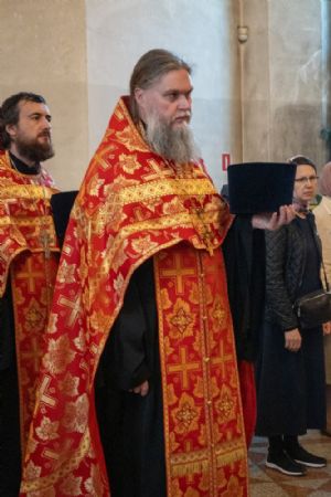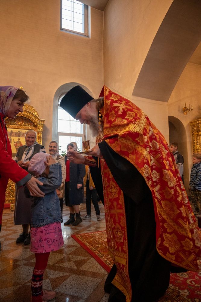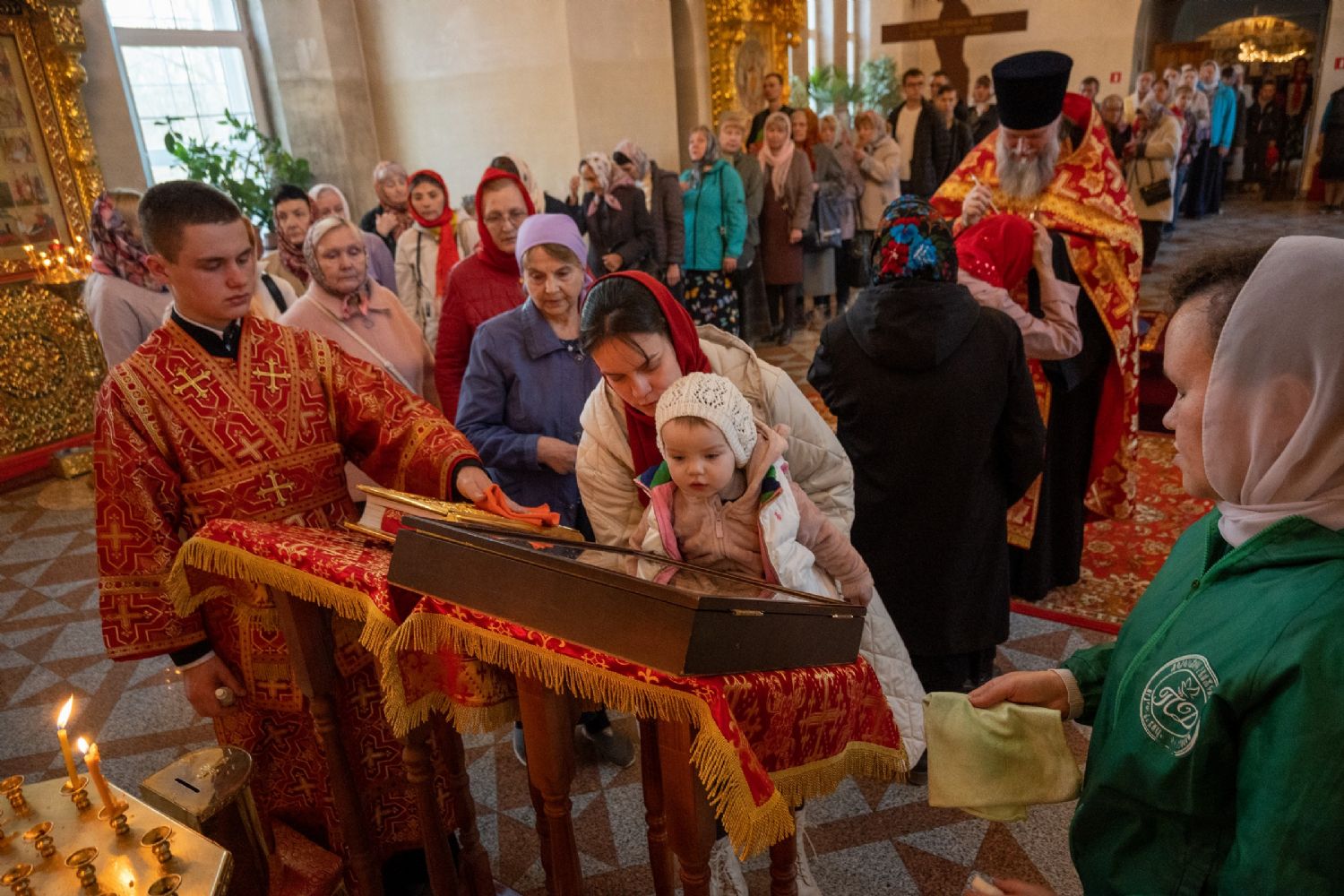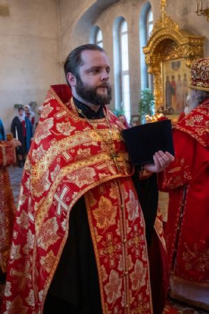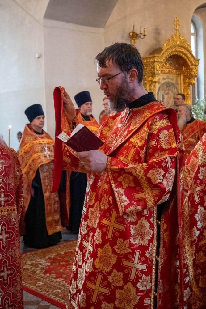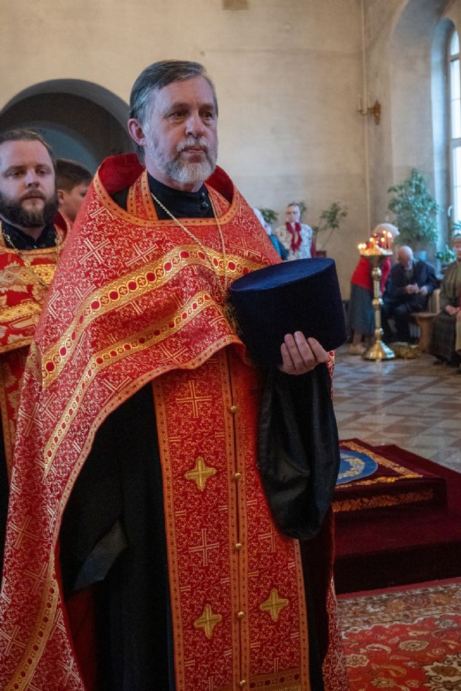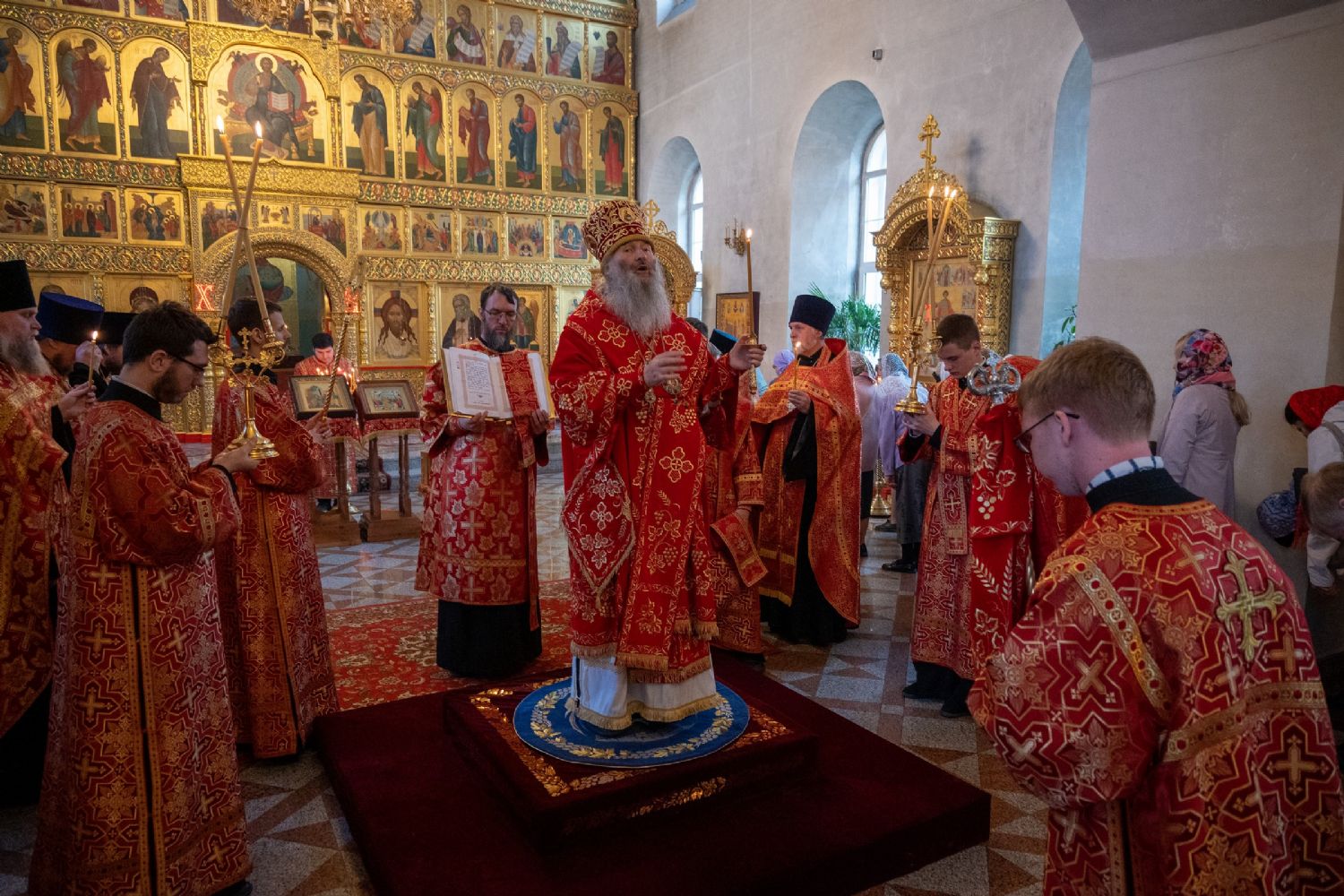 Его Высокопреосвященству сослужили настоятель храма протоиерей Александр Бачурин, полковой священник иерей Георгий Колотов, клирики храма протоиерей Василий Лихачев, иереи Константин Домрачев, Виктор Умрихин, Николай Бабич и диакон Алексий Ершов, а также протодиакон Михаил Козловский. Пел хор храма под управлением регента Елены Умрихиной.