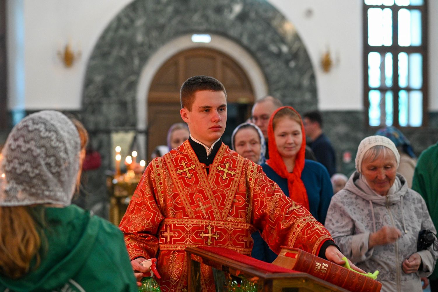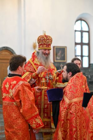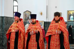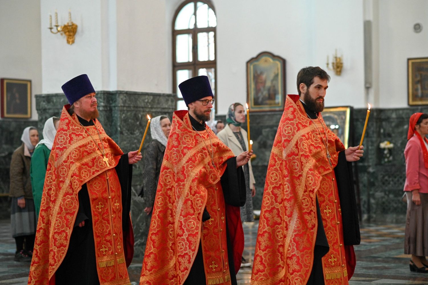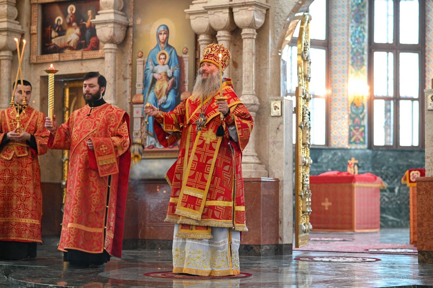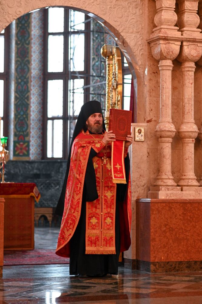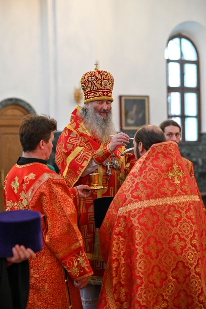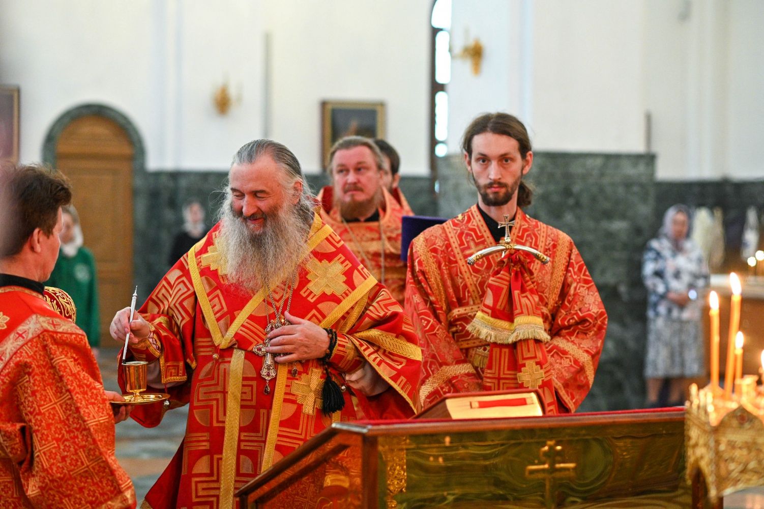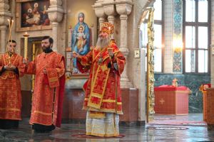 Владыке сослужили секретарь Йошкар-Олинского епархиального управления иеромонах Серафим (Пасанаев), ключарь собора протоиерей Сергий Поглазов, клирики собора иереи Никифор Захаров, Евгений Самойлов, Александр Староверов и Иоанн Милютин, диакон Артемий Бобоч, а также протодиакон Михаил Козловский. Пел детско-юношеский хор «Благовест» под управлением регента Татьяны Черновой.