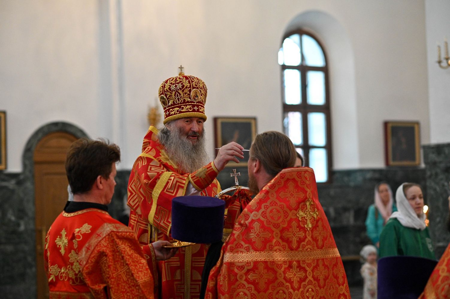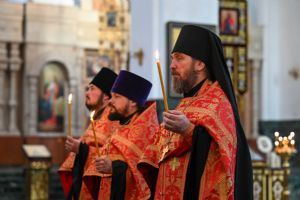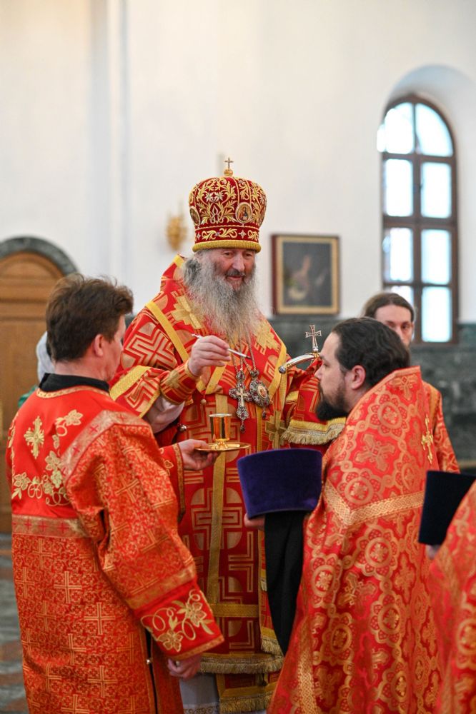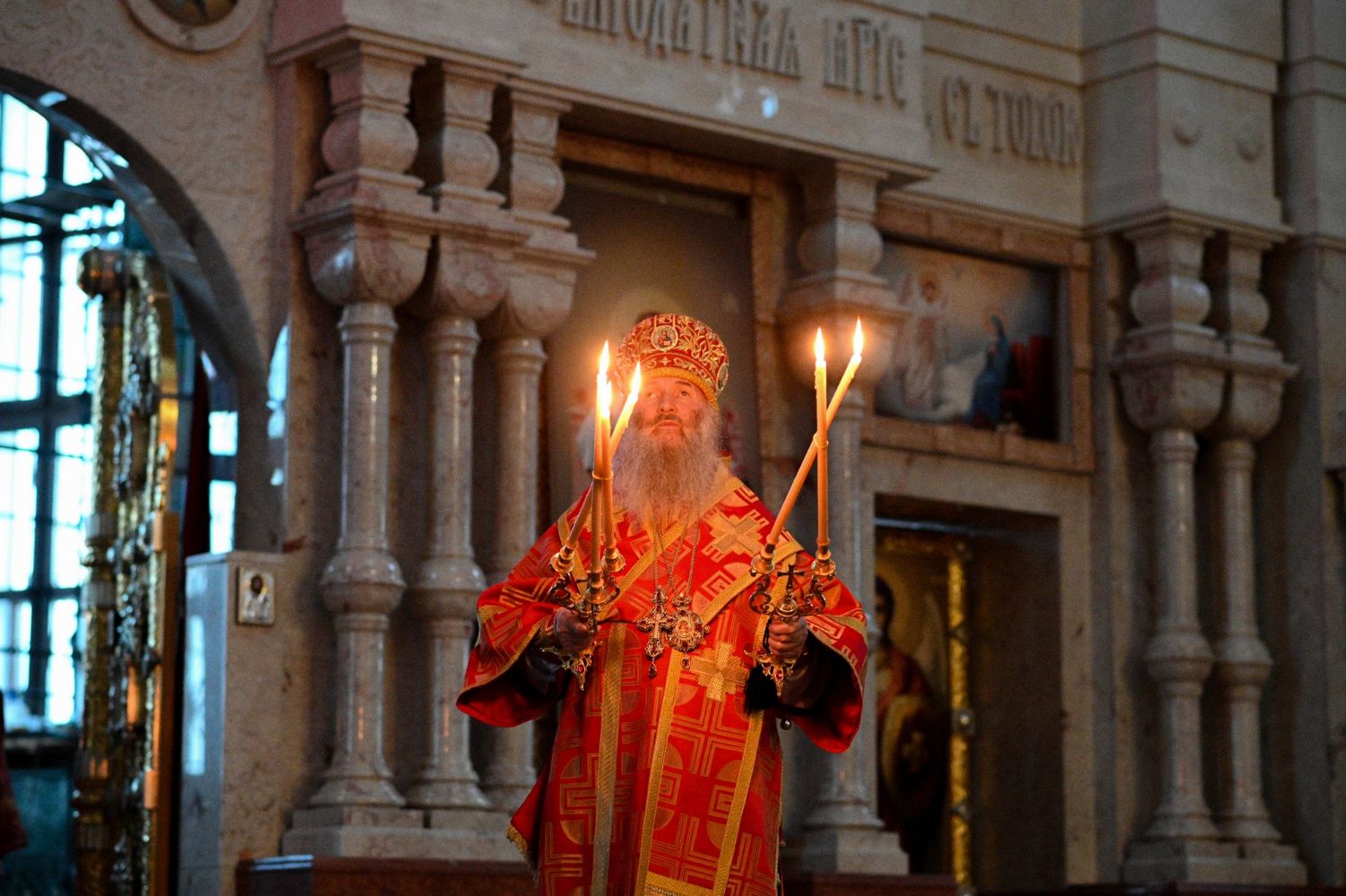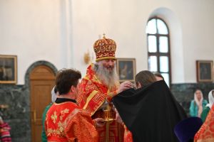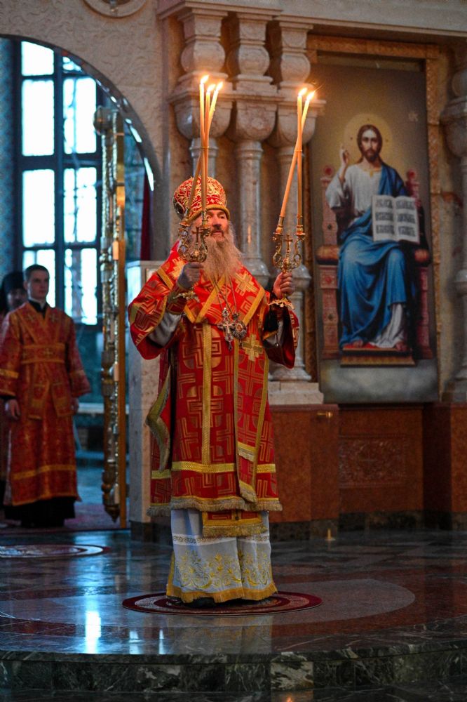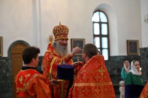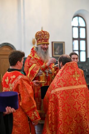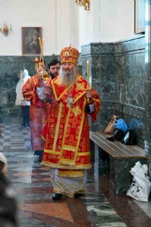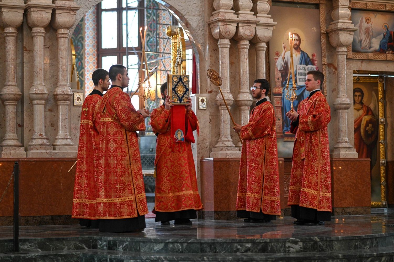 Владыке сослужили секретарь Йошкар-Олинского епархиального управления иеромонах Серафим (Пасанаев), ключарь собора протоиерей Сергий Поглазов, клирики собора иереи Никифор Захаров, Евгений Самойлов, Александр Староверов и Иоанн Милютин, диакон Артемий Бобоч, а также протодиакон Михаил Козловский. Пел детско-юношеский хор «Благовест» под управлением регента Татьяны Черновой.