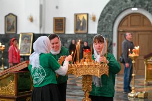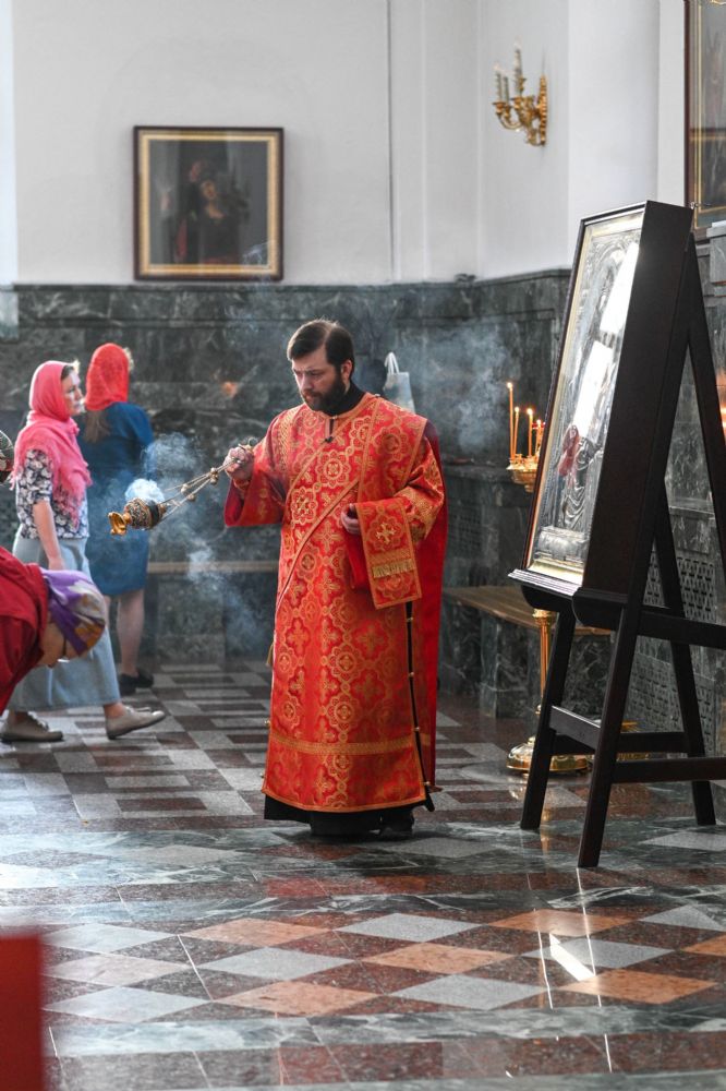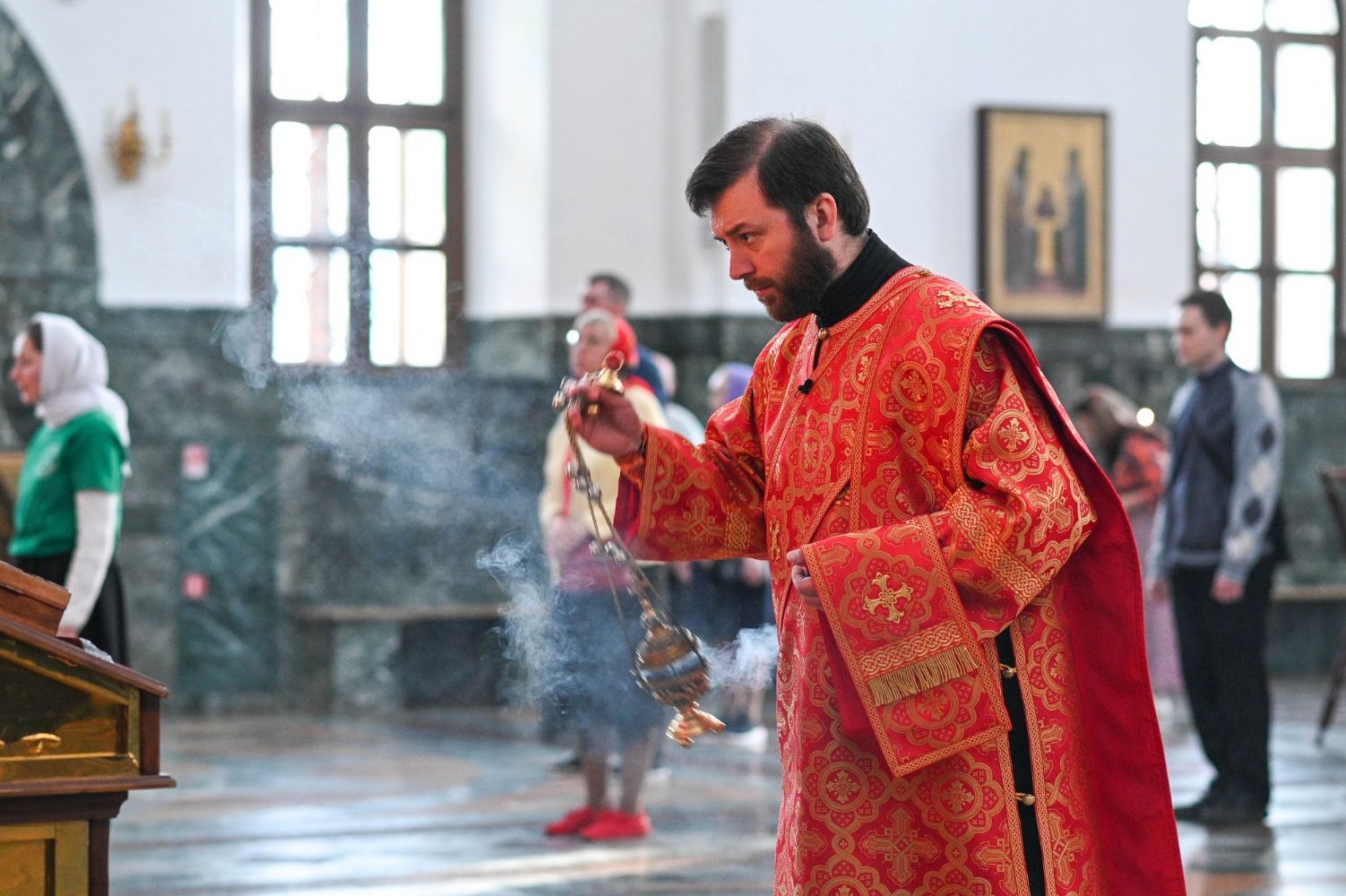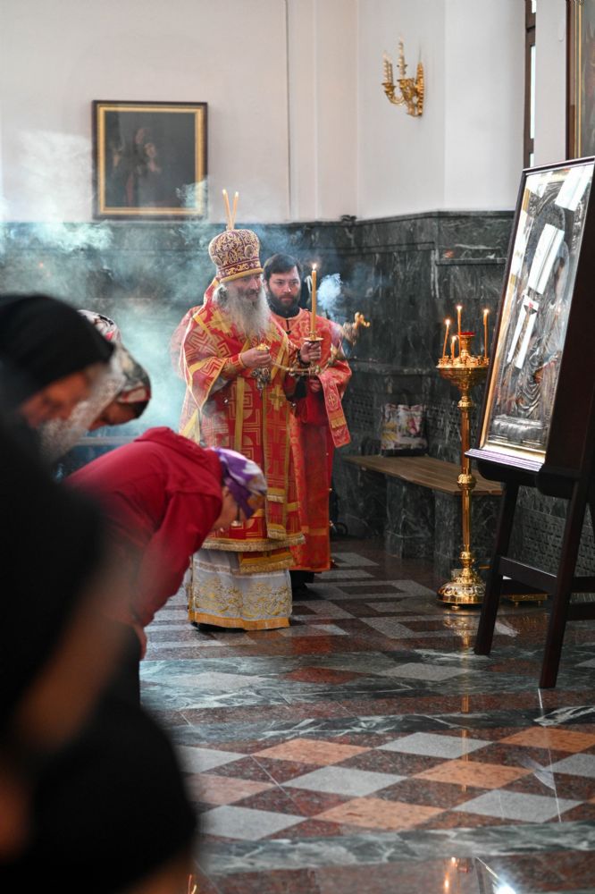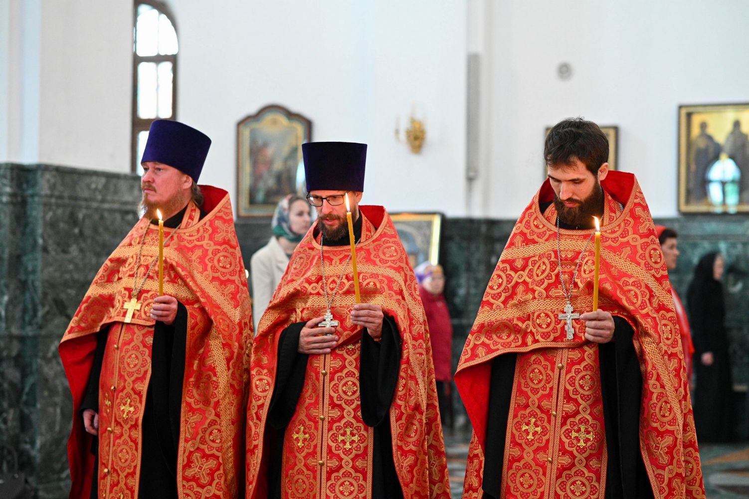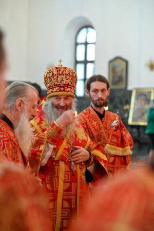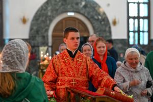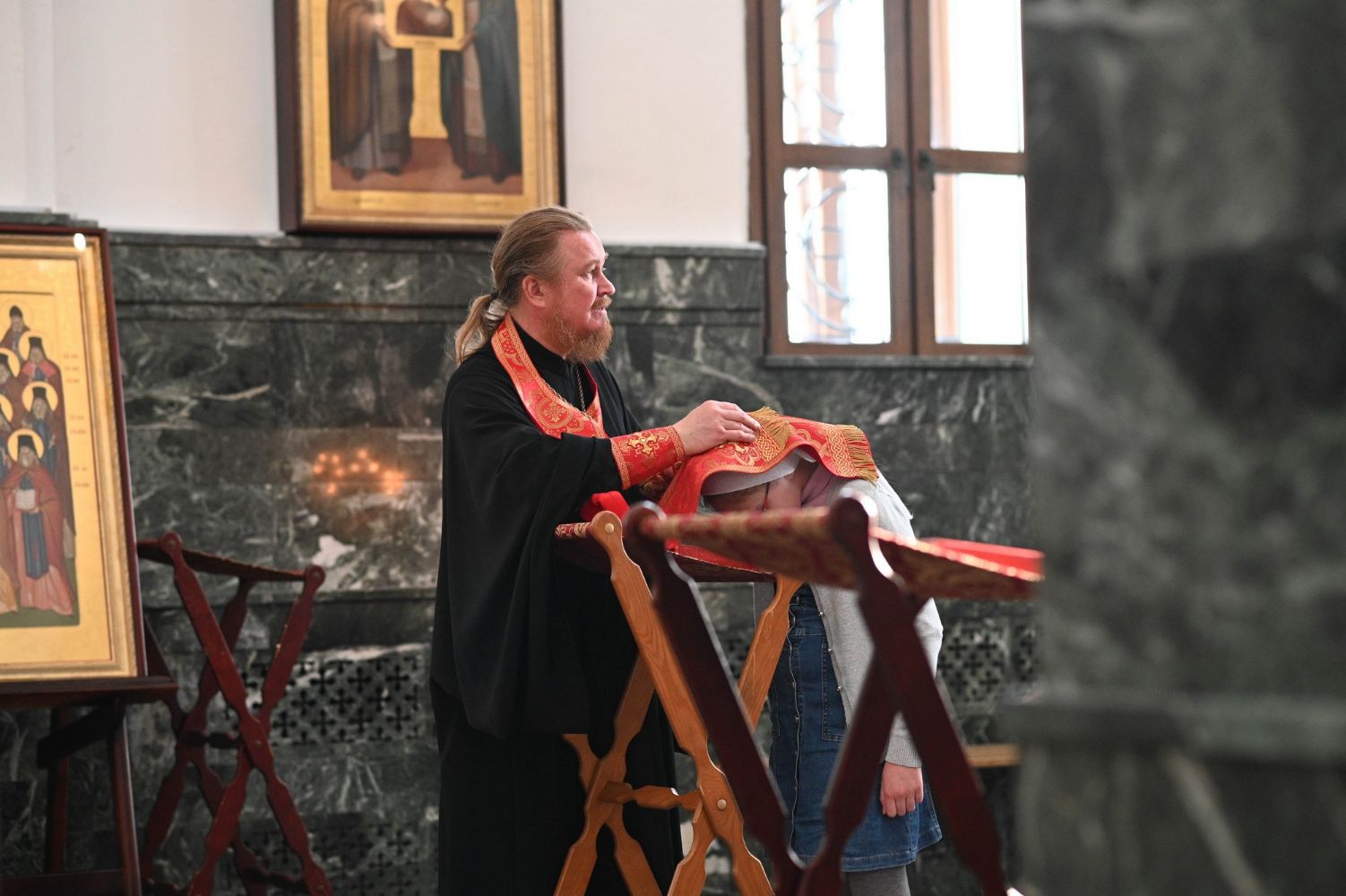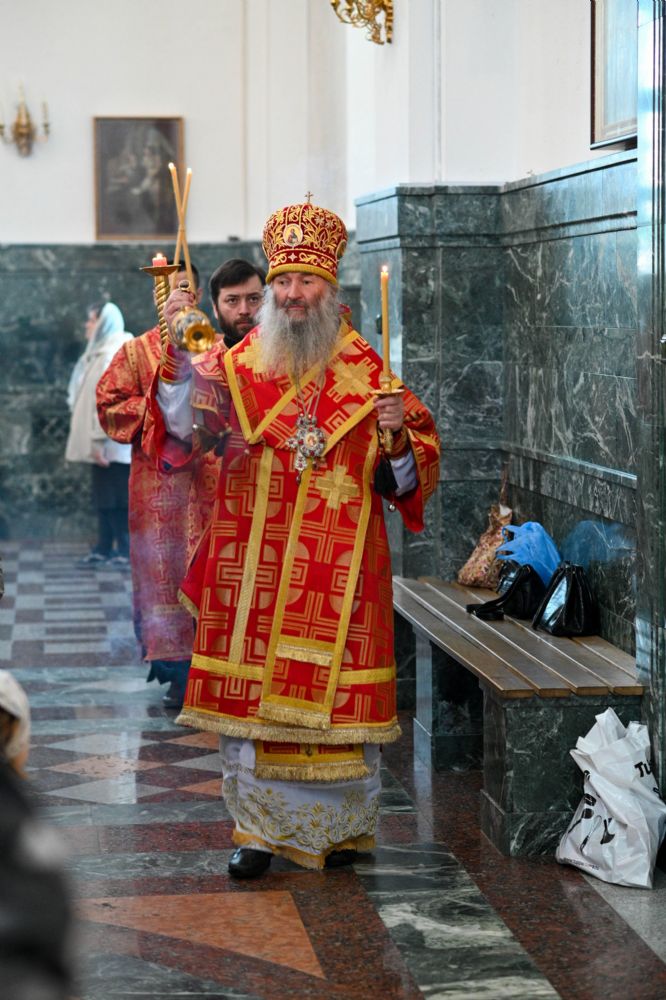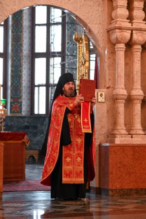 Владыке сослужили секретарь Йошкар-Олинского епархиального управления иеромонах Серафим (Пасанаев), ключарь собора протоиерей Сергий Поглазов, клирики собора иереи Никифор Захаров, Евгений Самойлов, Александр Староверов и Иоанн Милютин, диакон Артемий Бобоч, а также протодиакон Михаил Козловский. Пел детско-юношеский хор «Благовест» под управлением регента Татьяны Черновой.