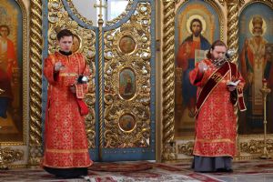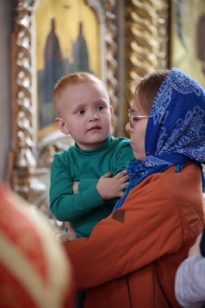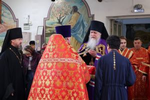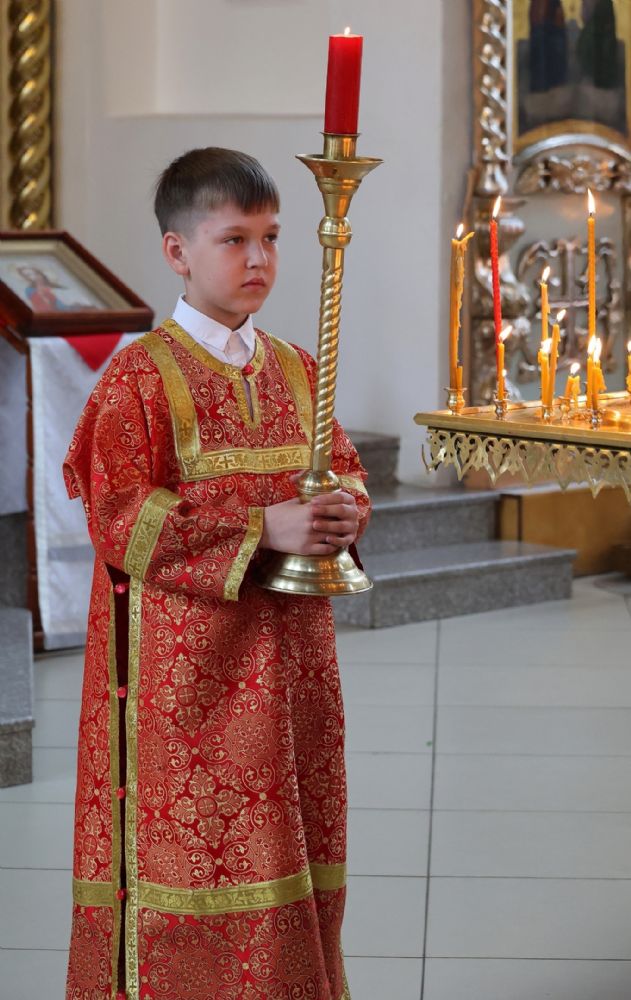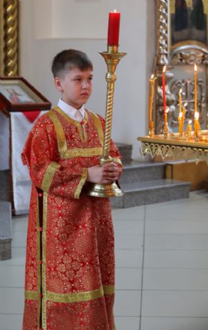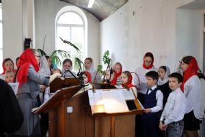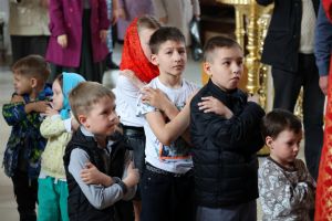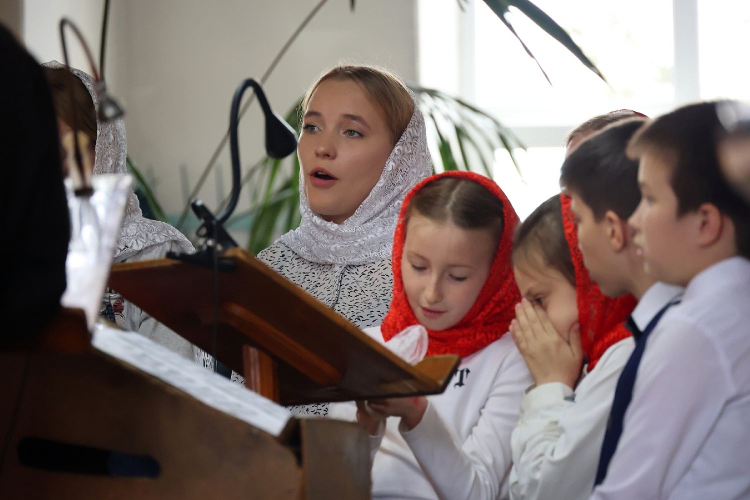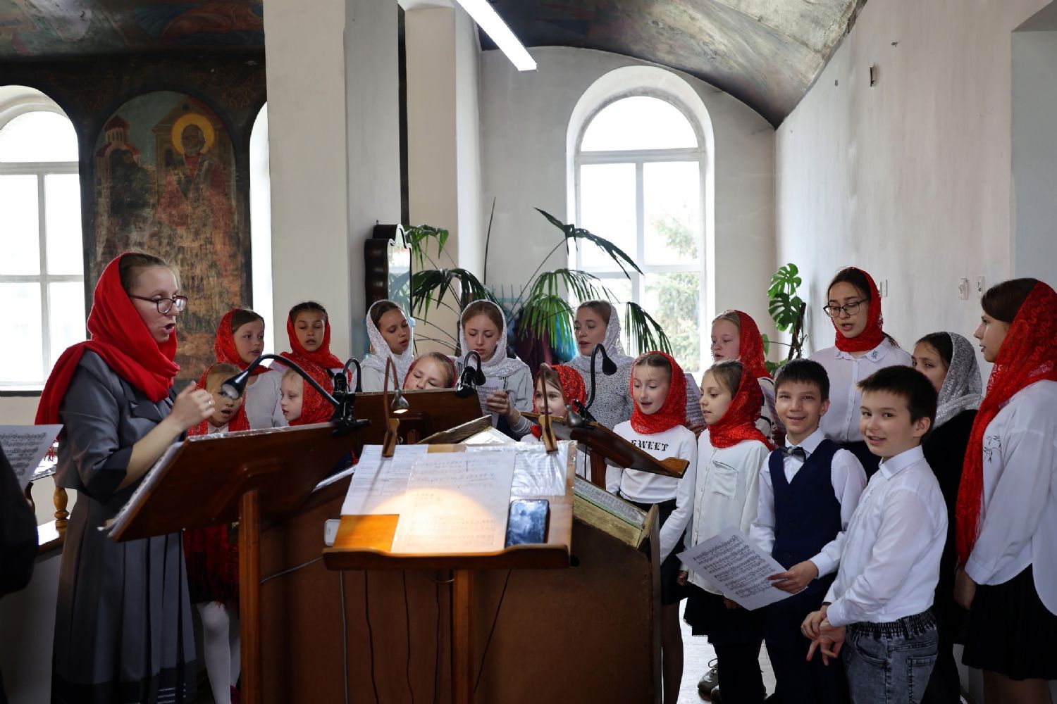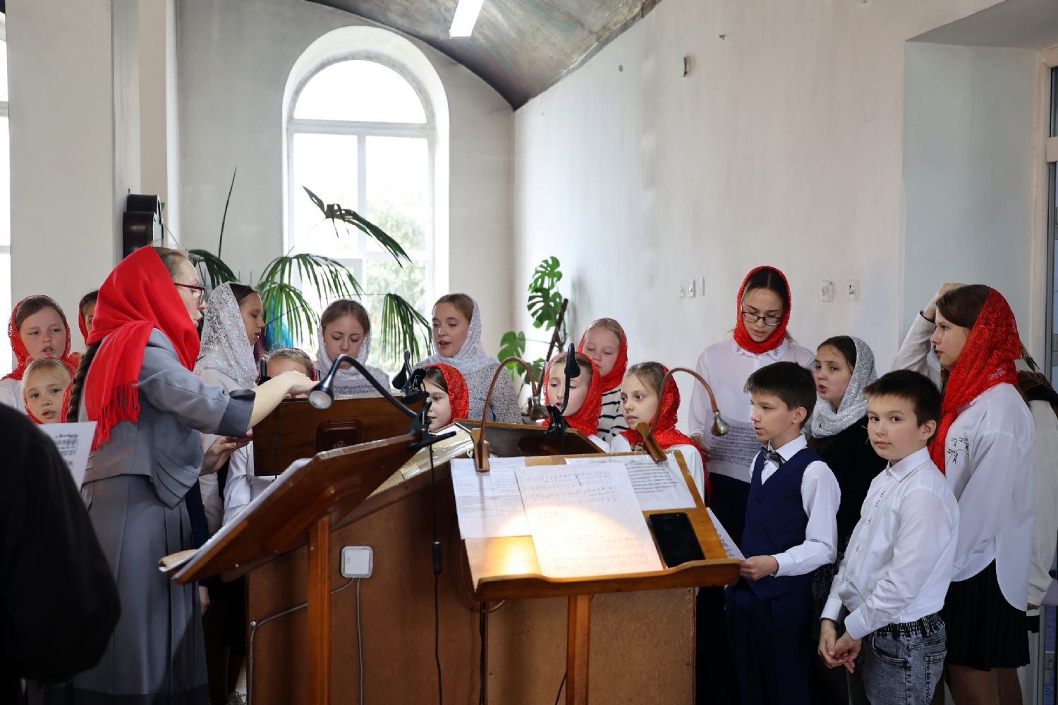 Архипастырю сослужили клирики собора, пел детско-юношеский хор «Славословие» под управлением Марии Захаровой.