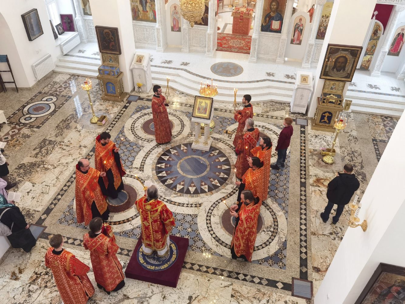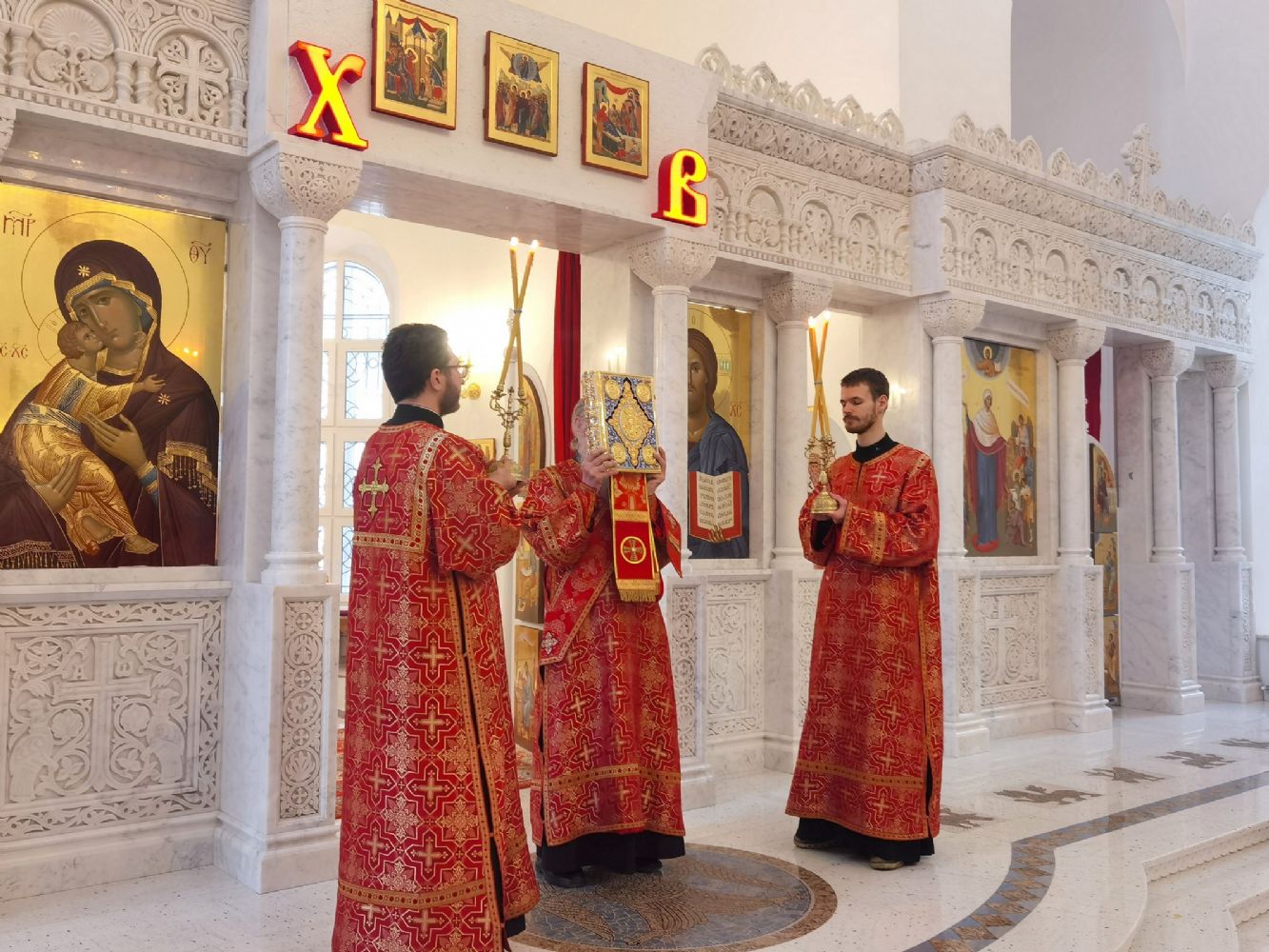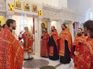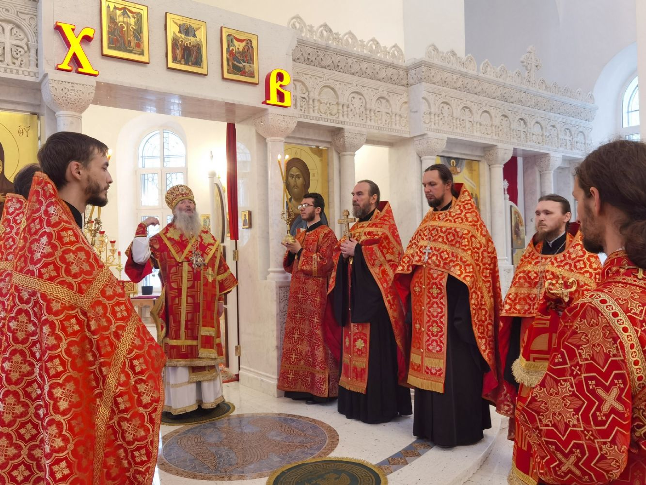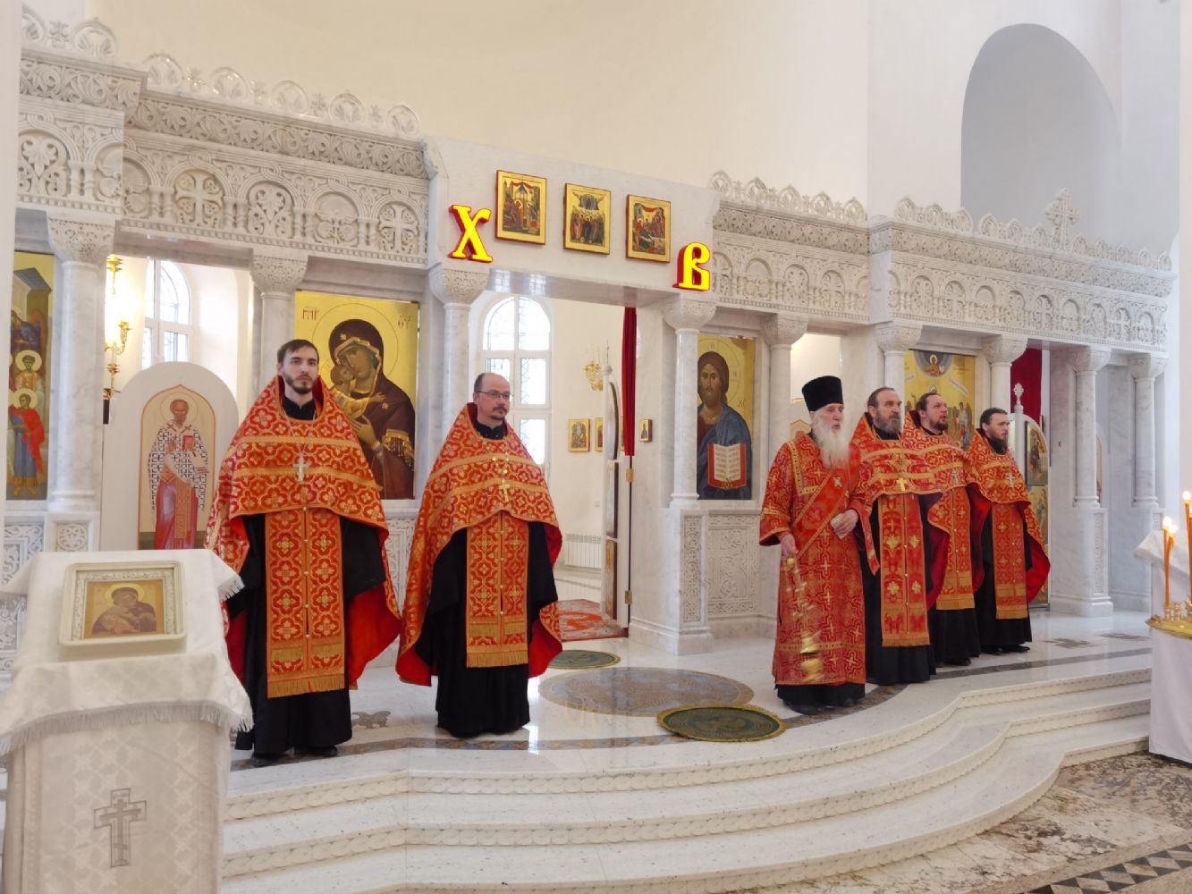 Владыке сослужили секретарь Йошкар-Олинского епархиального управления иеромонах Серафим (Пасанаев), настоятель храма иерей Алексий Михеев, клирики храма иереи Димитрий Лукьянов, Сергий Пуртов, Игорь Коваль, а также протодиакон Михаил Козловский и клирик Благовещенского кафедрального собора диакон Андрей Дружинин. Песнопения исполнял хор храма под управлением Александры Ивановой.