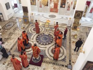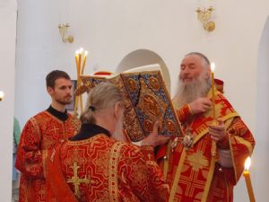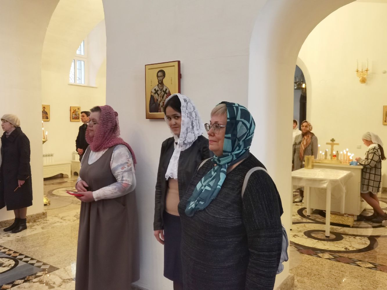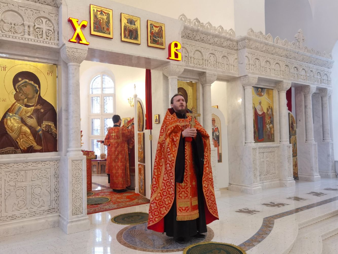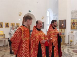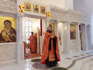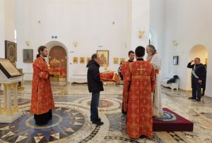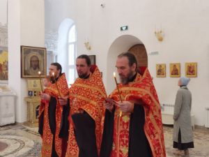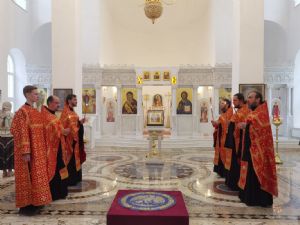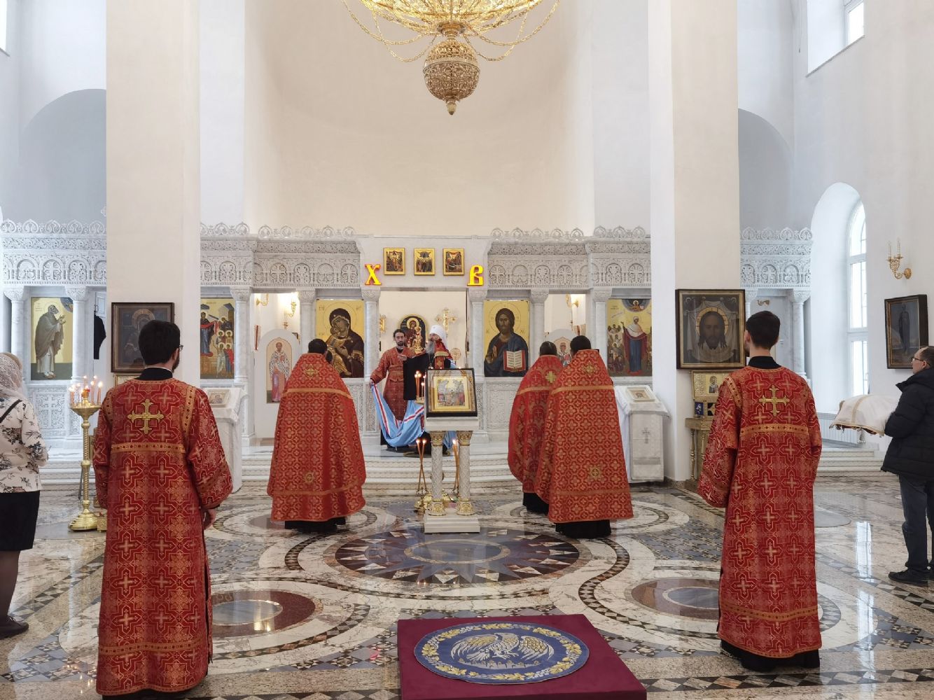 Владыке сослужили секретарь Йошкар-Олинского епархиального управления иеромонах Серафим (Пасанаев), настоятель храма иерей Алексий Михеев, клирики храма иереи Димитрий Лукьянов, Сергий Пуртов, Игорь Коваль, а также протодиакон Михаил Козловский и клирик Благовещенского кафедрального собора диакон Андрей Дружинин. Песнопения исполнял хор храма под управлением Александры Ивановой.