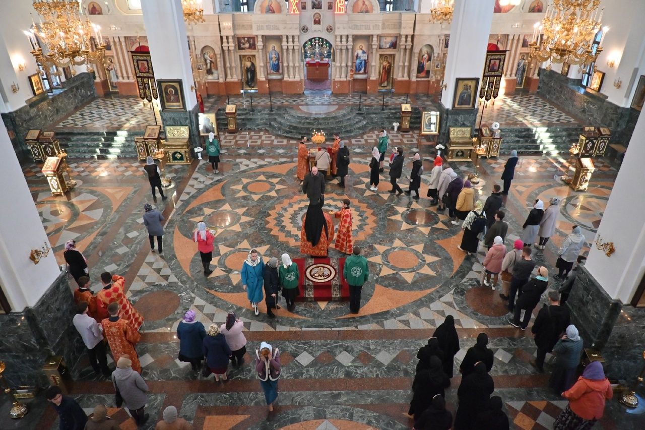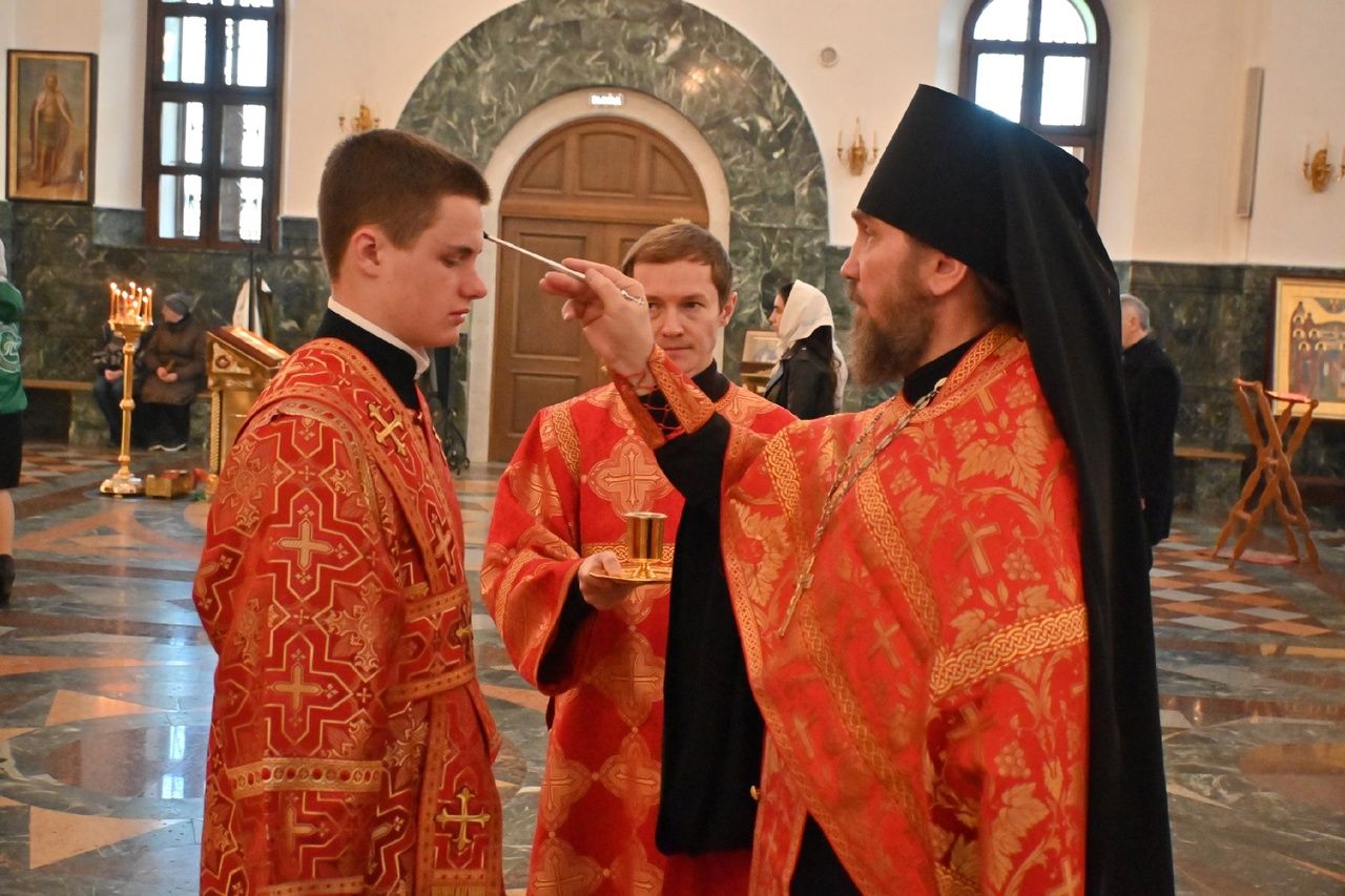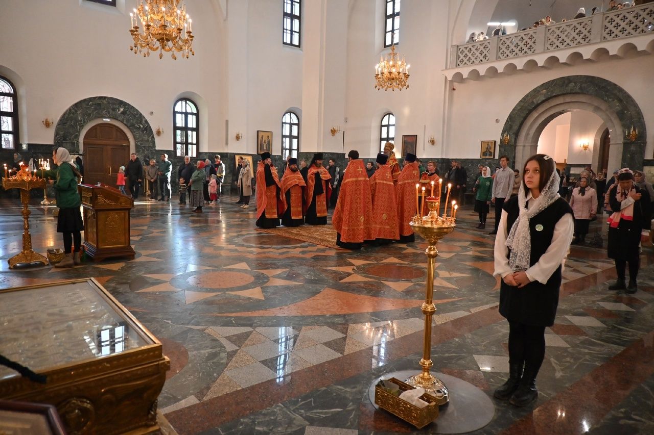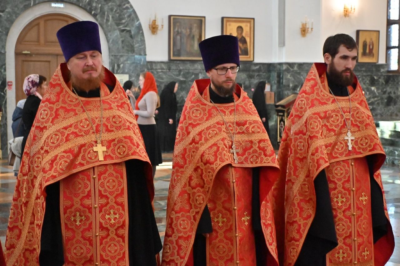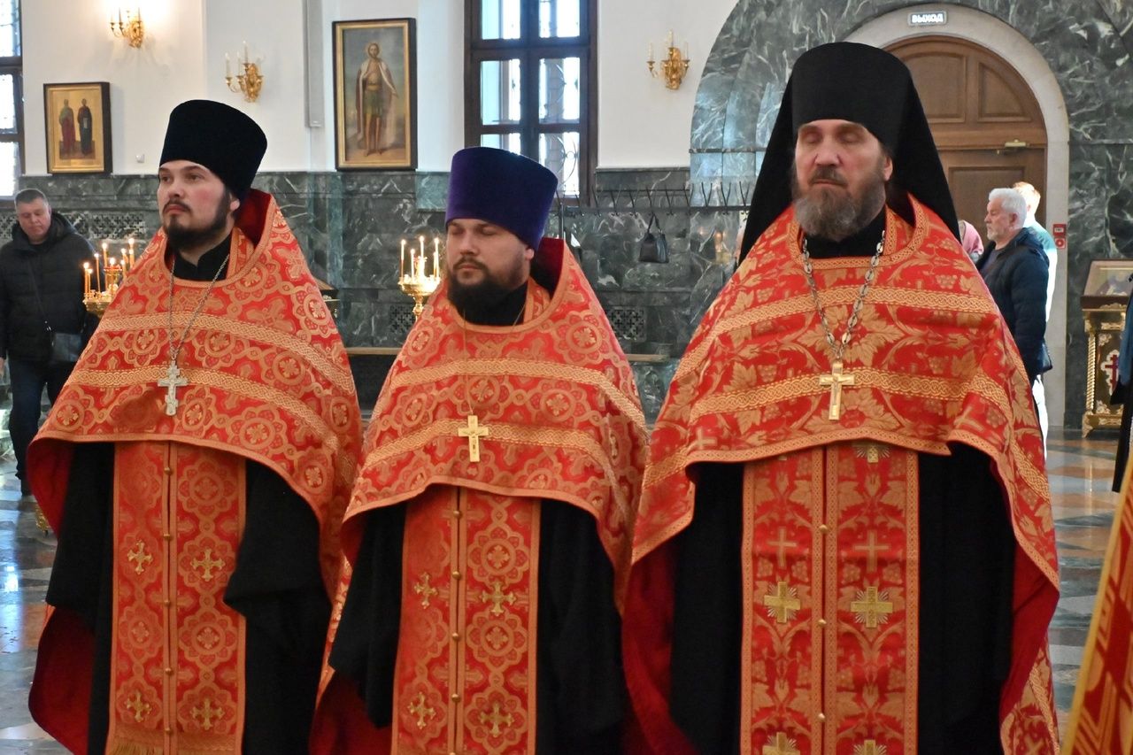 Владыке сослужили секретарь Йошкар-Олинского епархиального управления иеромонах Серафим (Пасанаев), ключарь собора протоиерей Сергий Поглазов, клирики собора иереи Никифор Захаров, Евгений Самойлов, Александр Староверов и Иоанн Милютин, диаконы Андрей Дружинин и Артемий Бобоч, а также протодиакон Михаил Козловский. Пел детско-юношеский хор «Благовест» под управлением регента Надежды Поздеевой.