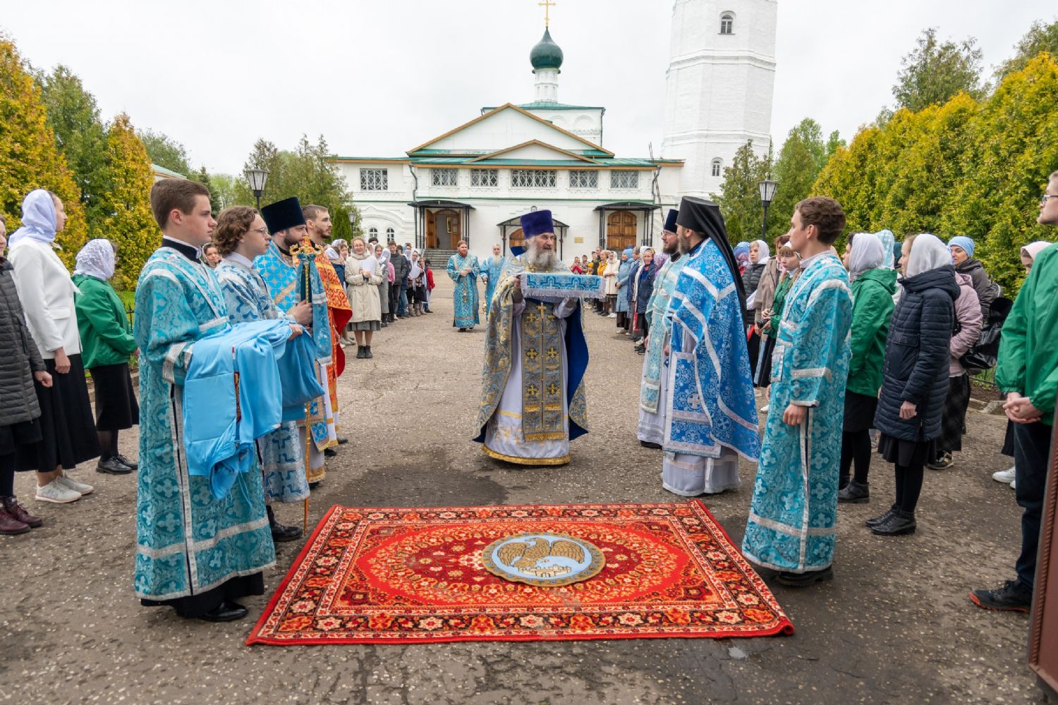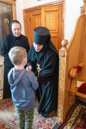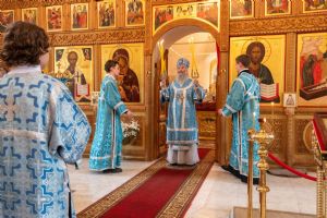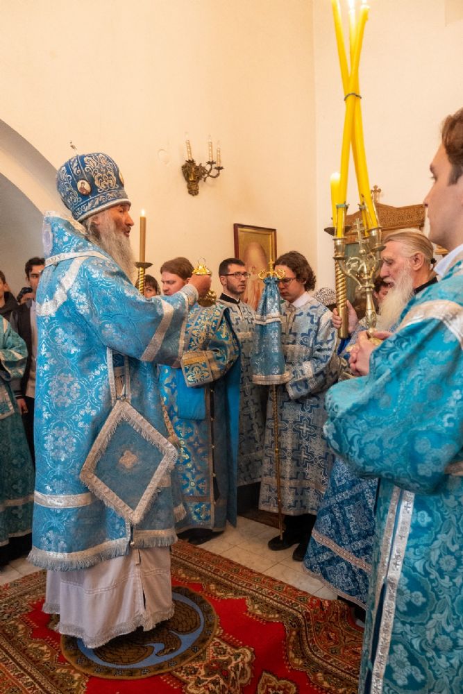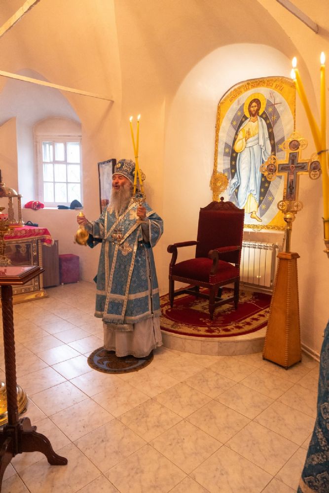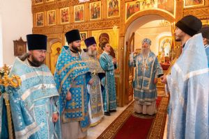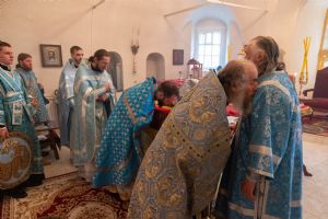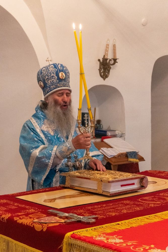 Архипастырю сослужили секретарь Йошкар-Олинского епархиального управления иеромонах Серафим (Пасанаев), клирик монастыря иерей Михаил Лежнин и духовенство храмов г. Йошкар-Олы. Песнопения исполнял детско-юношеский хор «Благовест» под управлением Татьяны Черновой.