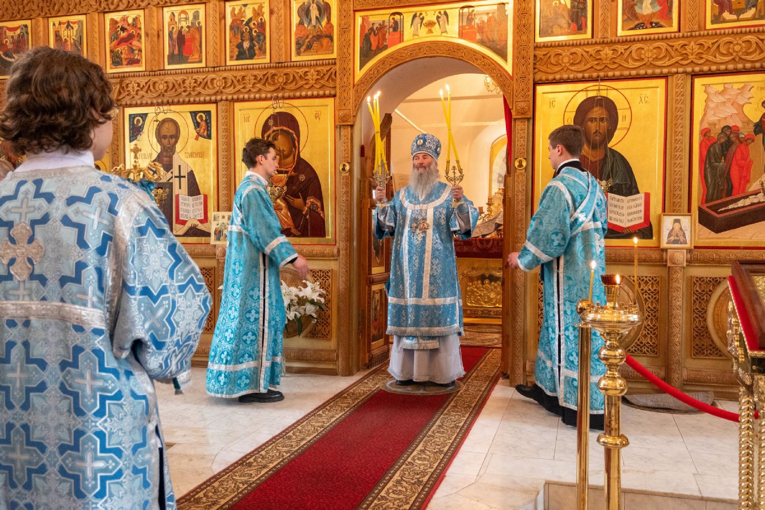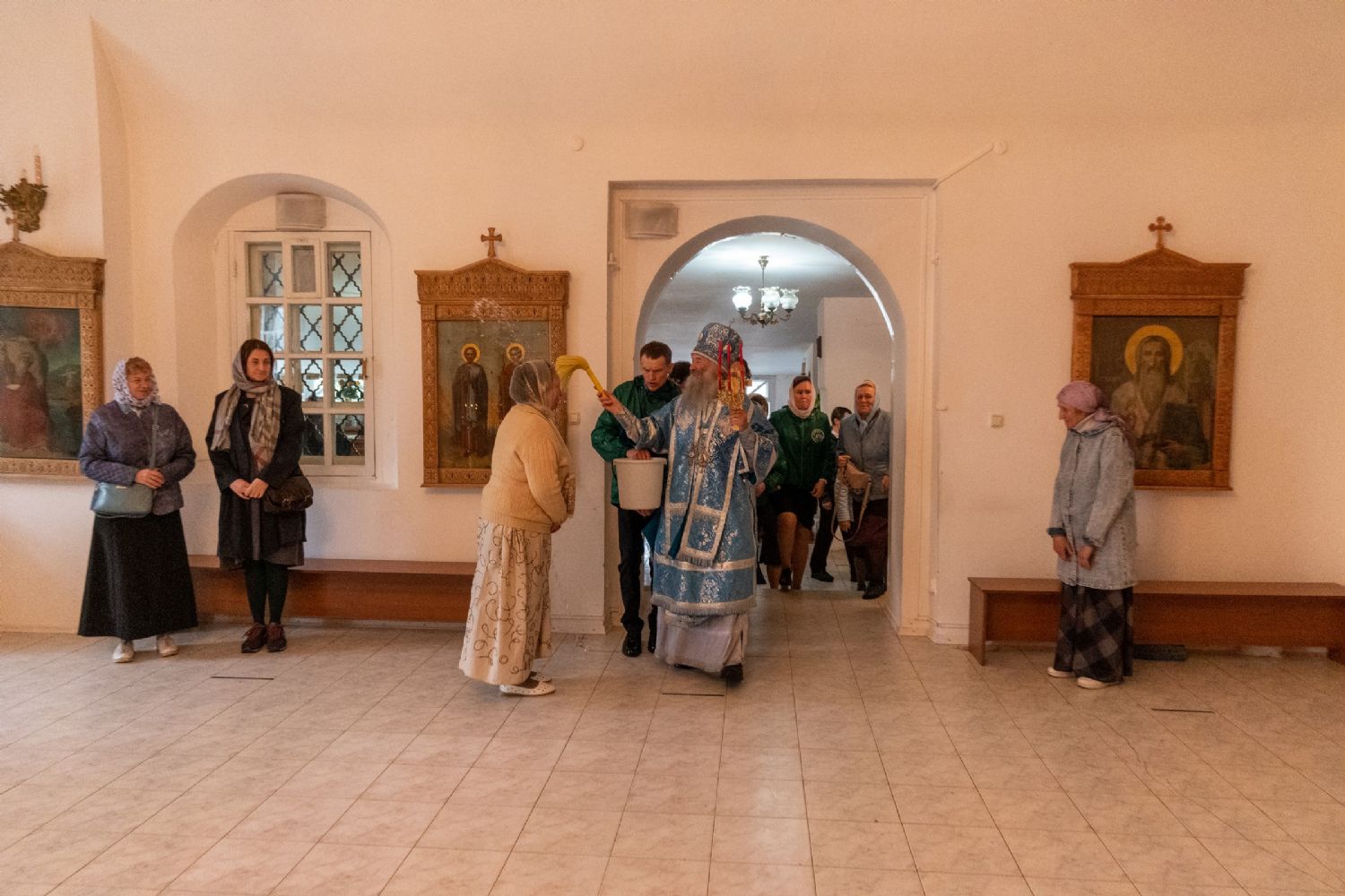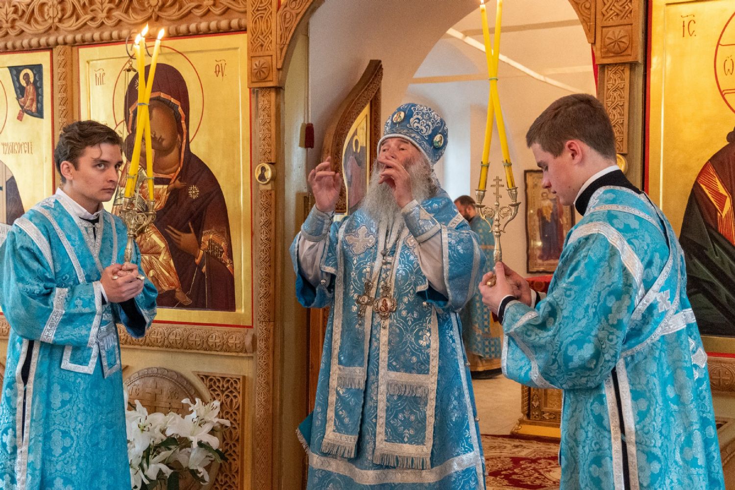 Апостол Павел говорит: если Христос Воскрес, то и мы с вами все воскреснем для вечной жизни. А Пречистая Богоматерь есть первая Небожительница, Которая силою Божественной была воскрешена вместе с плотью и взошла ко Господу. Но Она в славе своей Божественной не на Небесах пребывает, а пребывает с теми, кто призывает Ее на помощь и защиту. Об этом нам свидетельствует премудрый Епифаний, который был восхищен на Небеса и которому открылись тайны Божественные. Посещая Царство Небесное, видя ангельский мир и сонм святых, он спрашивает ангела: а где же Пречистая? И слышит ответ: Она с теми, кто призывает Ее на помощь, Она с теми, кто нуждается в Ее защите, Она с теми, кто неумолкаемо славословит Ее архангельским благовестием… Пусть же Царица Небесная, Которая невидимо здесь с нами пребывает в чудотворном образе «Мироносицкая», Она оберегает и хранит нас и руководствует нашей с вами жизнью».