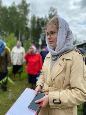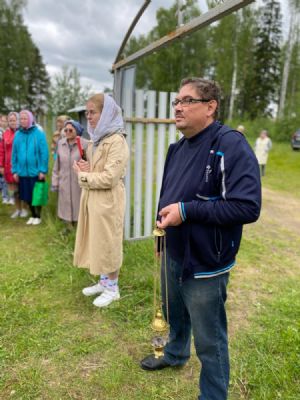 Чин освящения совершил иерей Андрей Иванов, окормляющий приход п. Пемба. Он отслужил водосвятный молебен и окропил часовенный столб с четырех сторон света.
