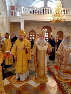 18 июня вечером в г. Саранске, в кафедральном соборе святого праведного воина Феодора Ушакова, богослужение возглавил большой сонм архипастырей, приехавших в столицу Мордовии поздравить митрополита Саранского и Мордовского Зиновия с 75-летним юбилеем.
