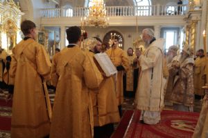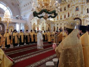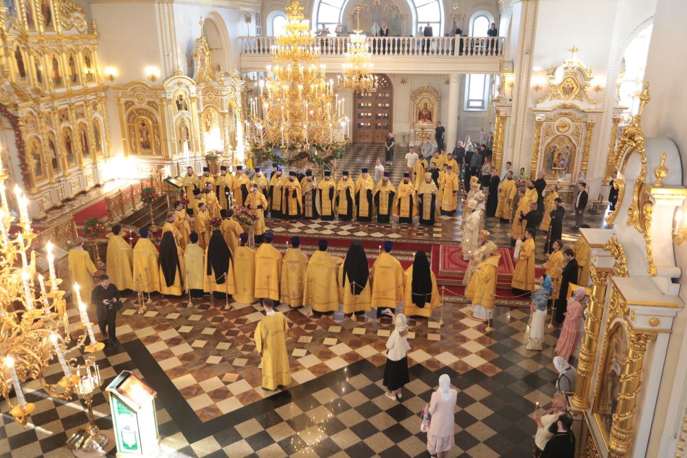 Архипастырям сослужили благочинные Саранской епархии, настоятели и духовенство храмов г. Саранска, гости в священном сане из других епархий.