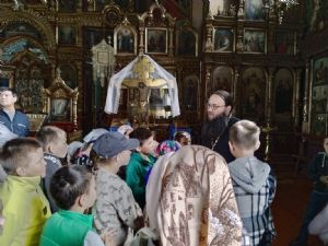 Настоятель храма протоиерей Алексий Вязов рассказал об истории этого старинного храма – о его строительстве, о судьбе храма в советские безбожные годы, о его восстановлении. Школьники ознакомились с внутренним и внешним устройством храма, поднялись на колокольню, откуда открывается замечательный вид на окрестности.