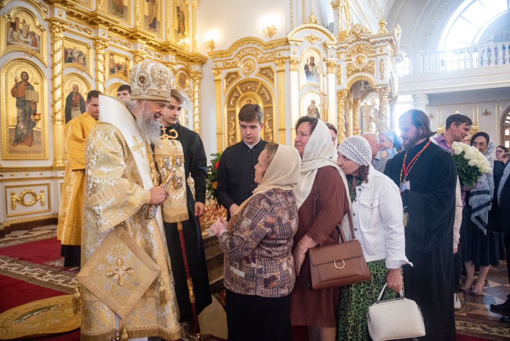 После Литургии архиереи поблагодарили митрополита Саранского и Мордовского Зиновия за гостеприимство и поздравили его с 75-летием. На молитвенную память митрополит Иоанн преподнес владыке Зиновию икону Божией Матери «Троеручица».