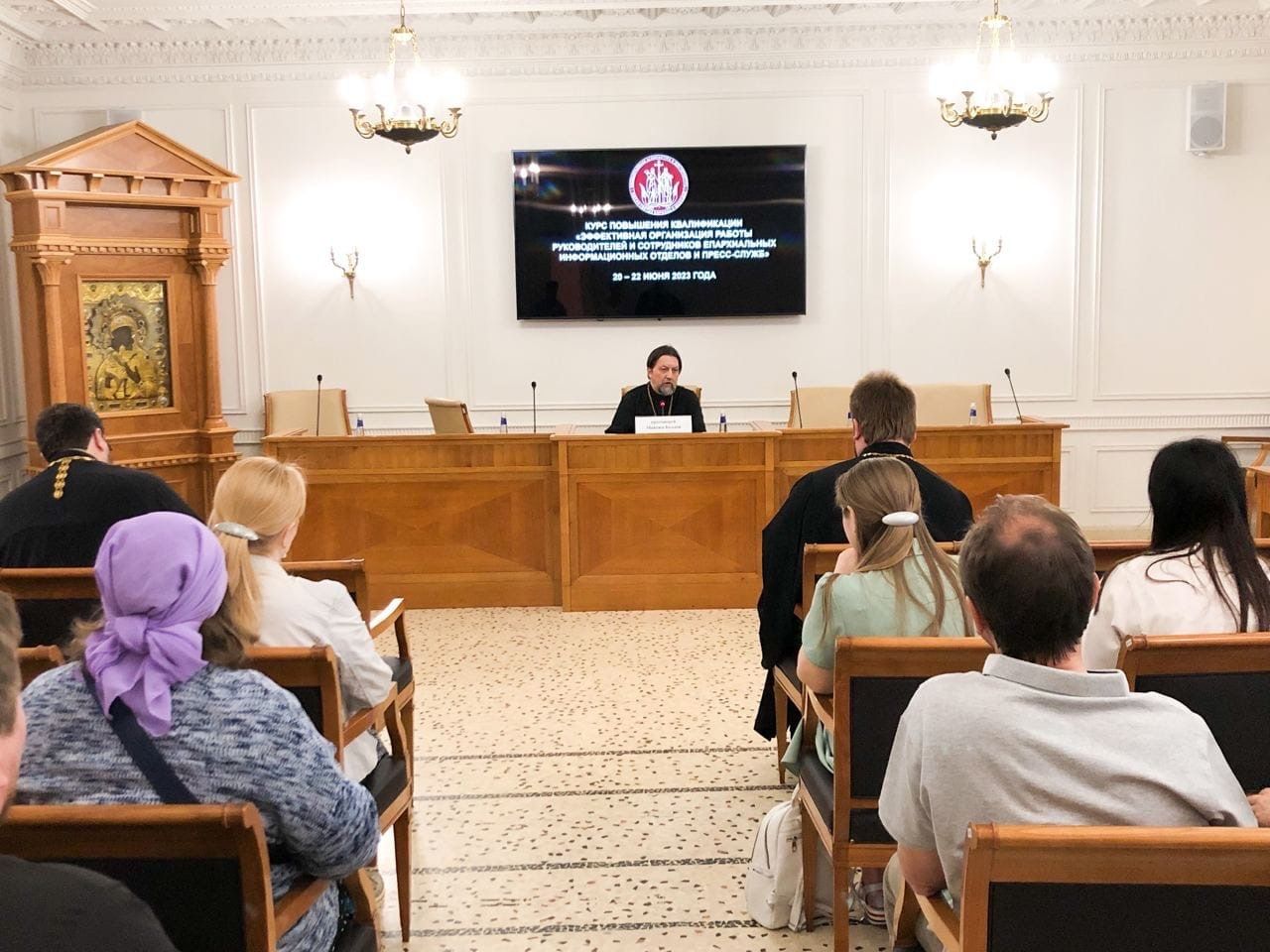 20 июня в актовом зале Общецерковной аспирантуры и докторантуры имени святых равноапостольных Кирилла и Мефодия состоялось открытие курсов повышения квалификации духовенства «Эффективная организация работы руководителей и сотрудников епархиальных информационных отделов и пресс-служб».
