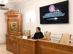 С приветственным словом к слушателям обратился ректор Общецерковной аспирантуры и докторантуры протоиерей Максим Козлов.