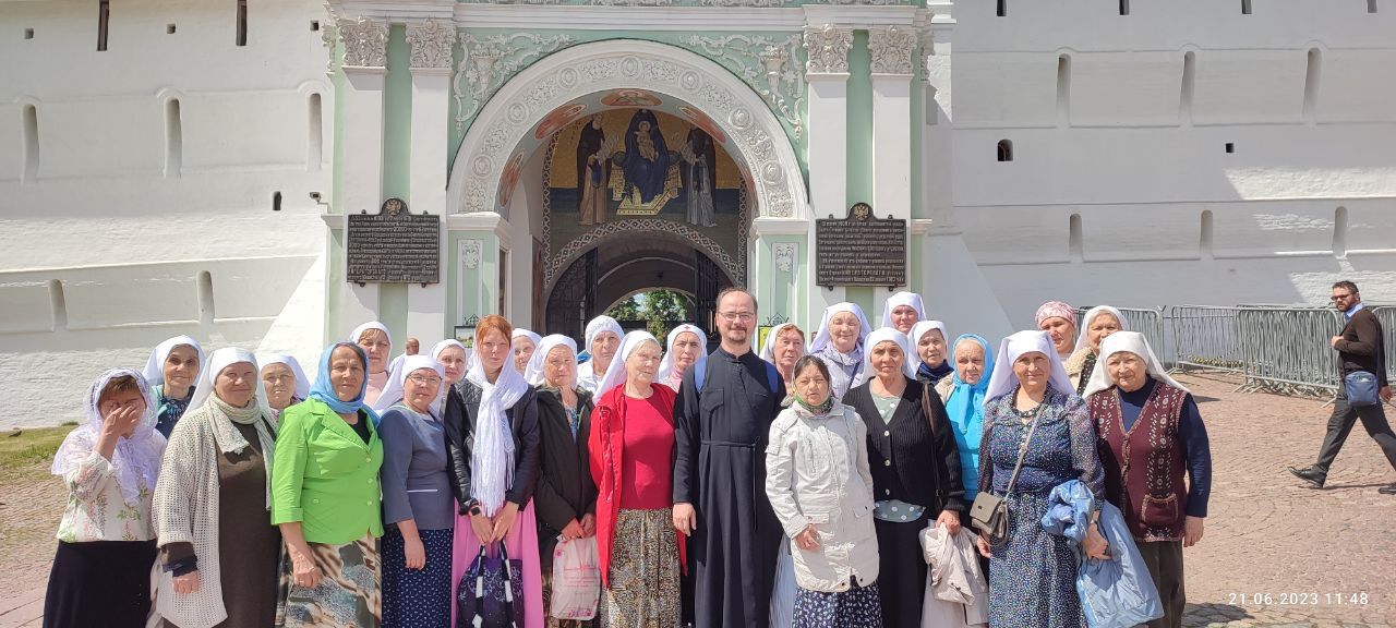 Далее сестры отправились в Покровский монастырь Москвы – поклониться святой блаженной Матроне Московской и приложиться к ее мощам. Вознеся молитвы блаженной, покинули столицу и поехали в Хотьково, где в главном соборе Покровского Хотькова монастыря покоятся мощи преподобных Кирилла и Марии – родителей преподобного Сергия Радонежского. А оттуда путь лежал и к самому преподобному Сергию – в Сергиев Посад, в Троице-Сергиеву лавру.