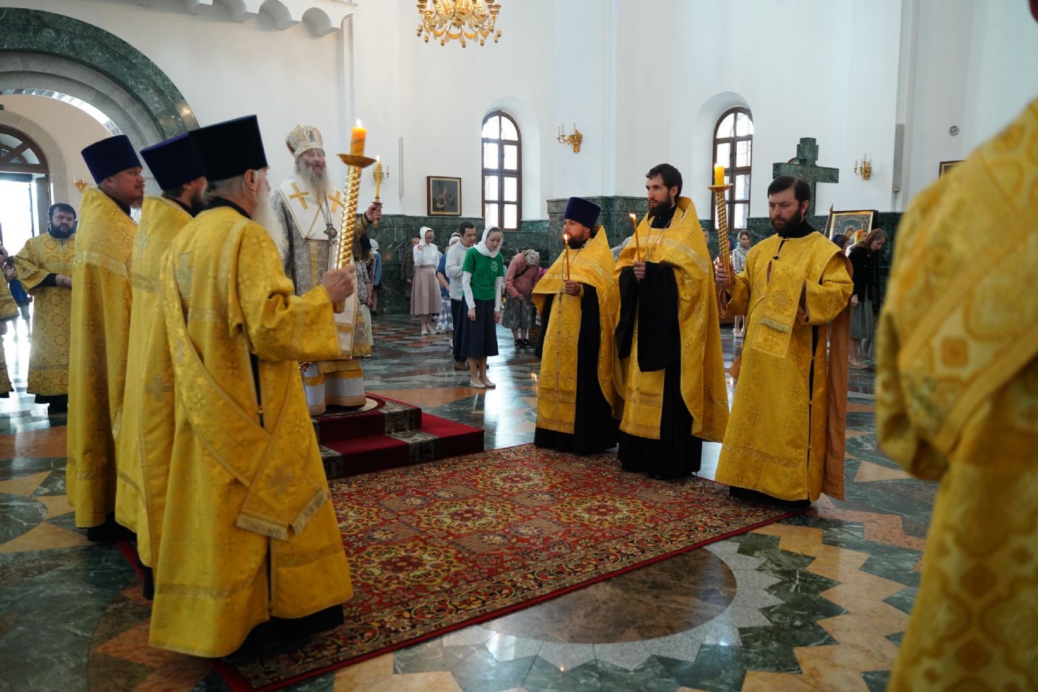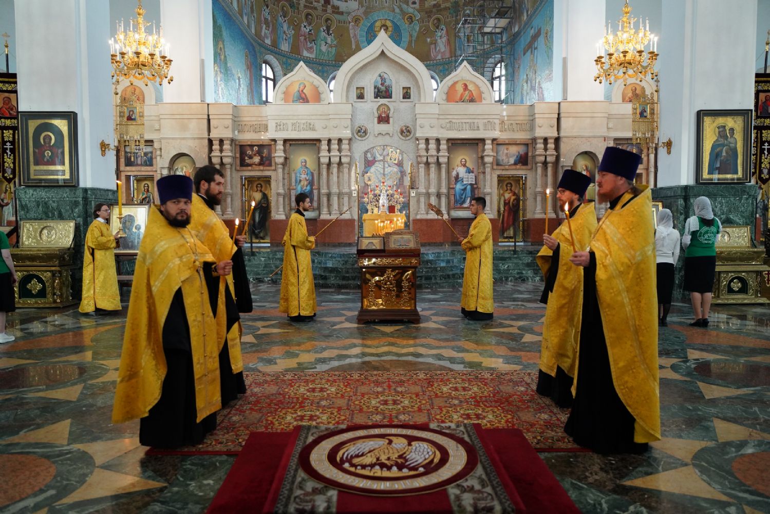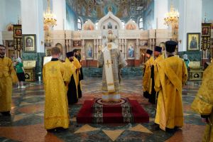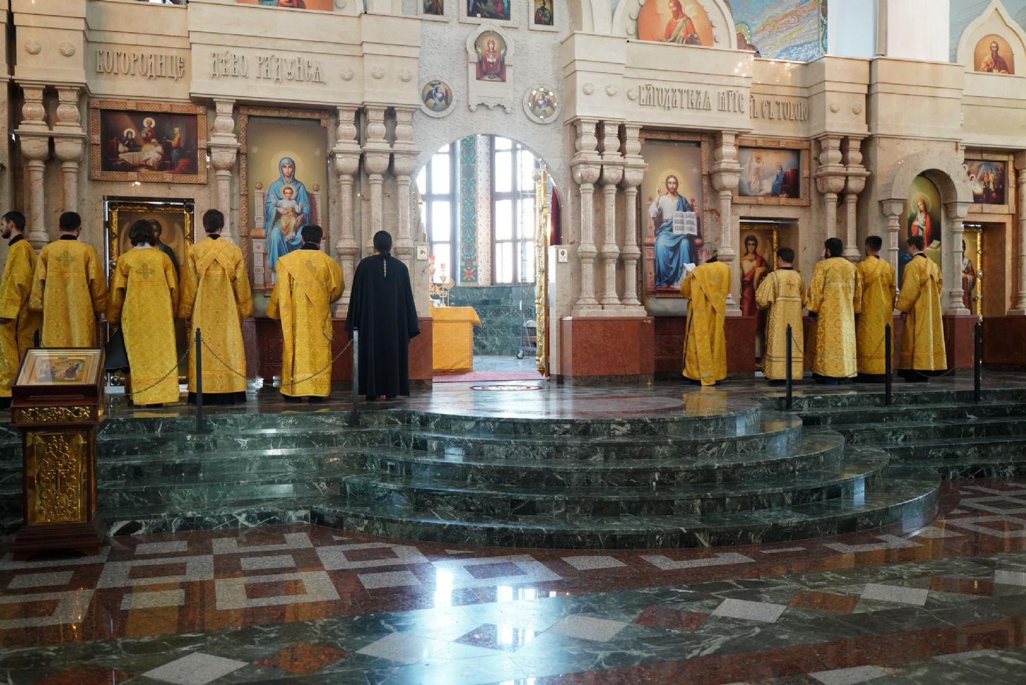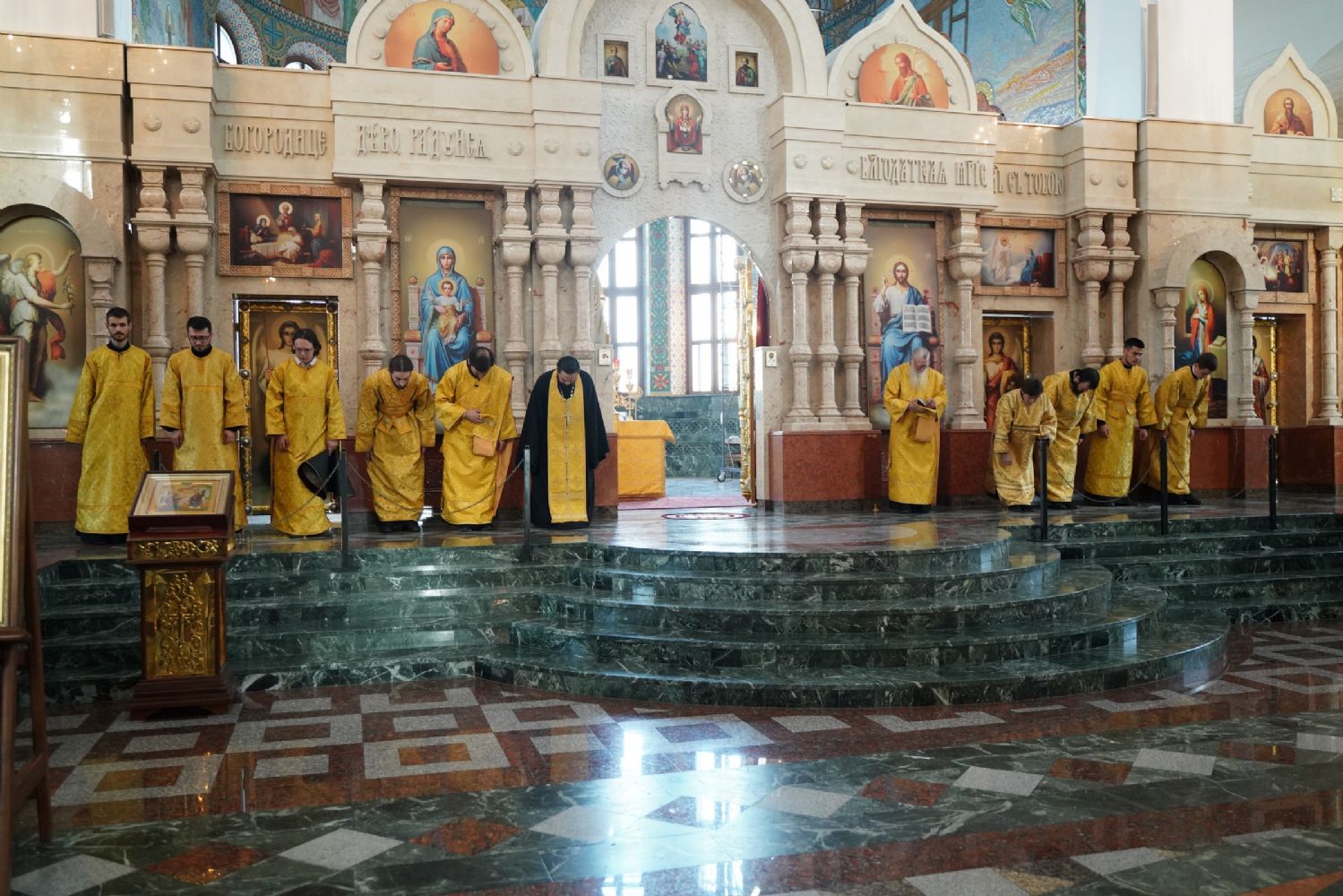 Архипастырю сослужили ключарь кафедрального собора протоиерей Сергий Поглазов, клирики собора иереи Никифор Захаров, Евгений Самойлов, Иоанн Милютин, диакон Артемий Бобоч, а также протодиакон Михаил Козловский. Песнопения исполнял детско-юношеский хор «Благовест» под управлением регента Татьяны Черновой.