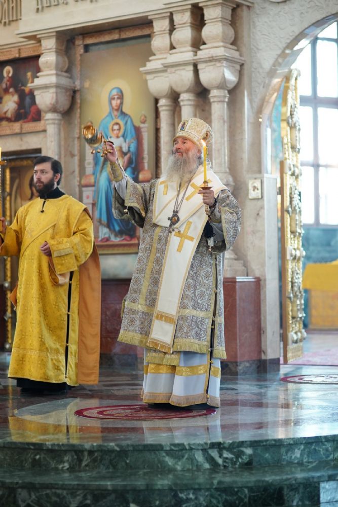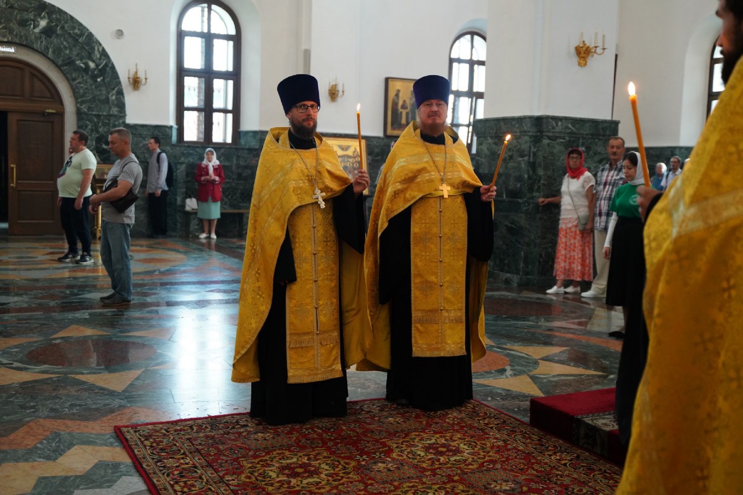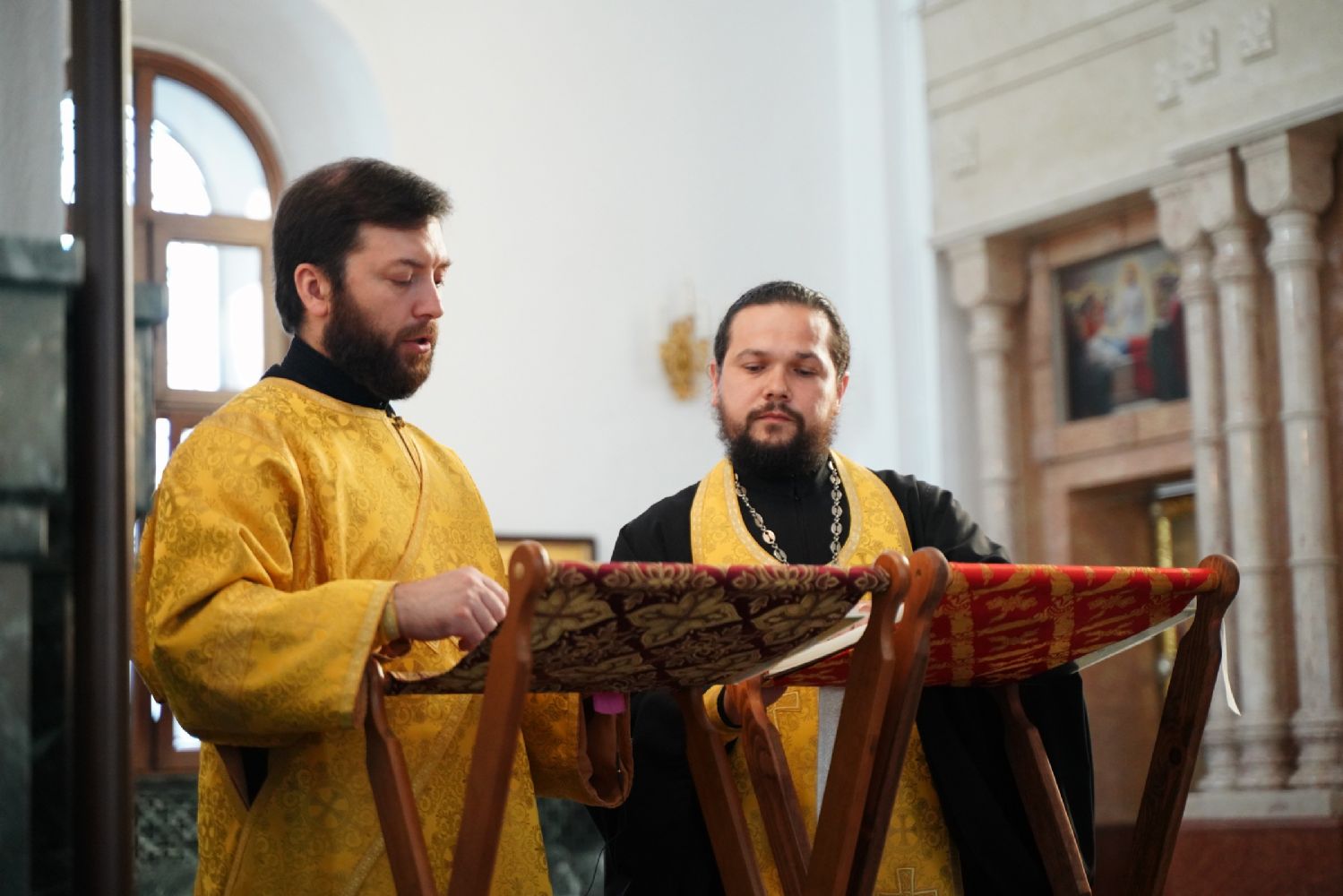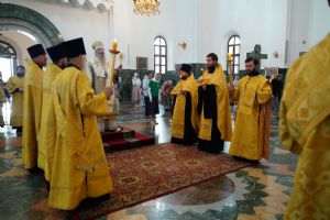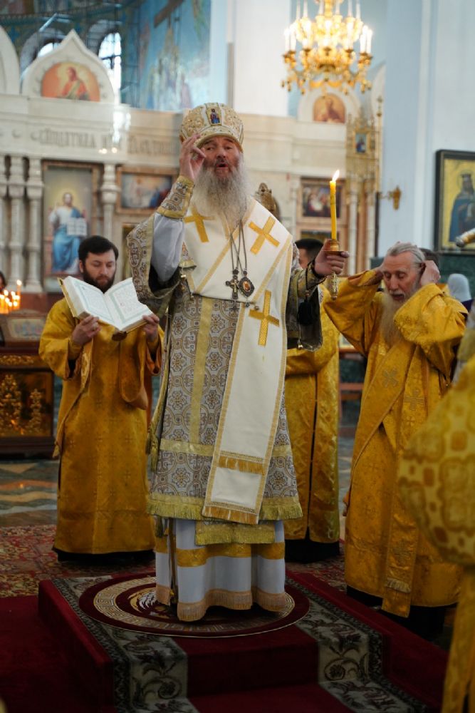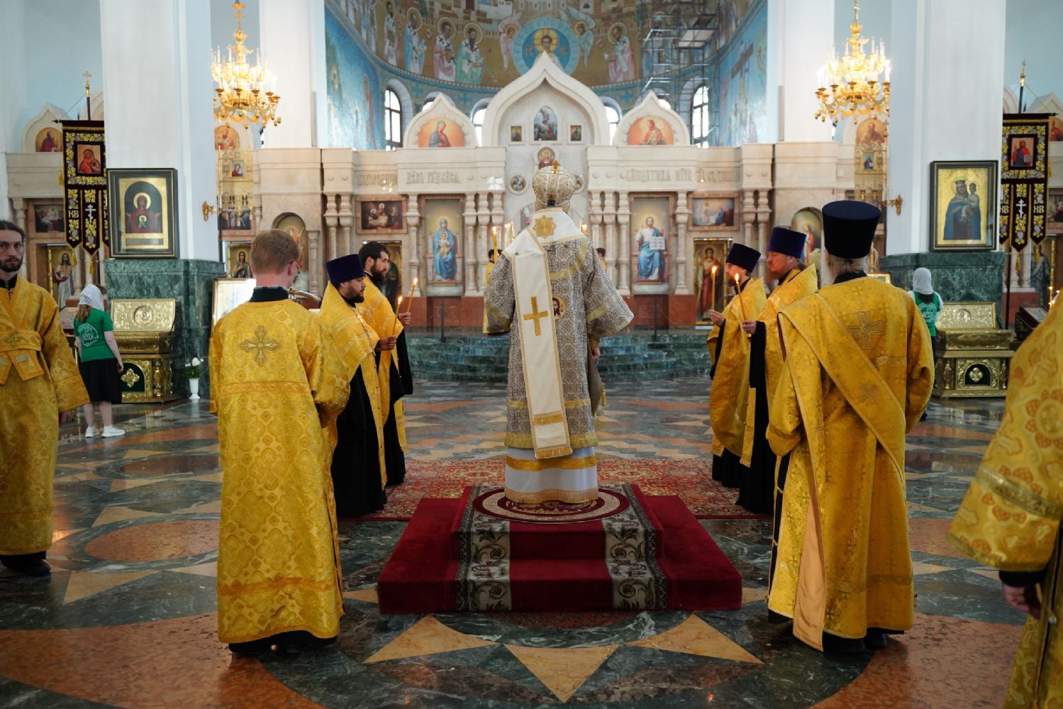 Архипастырю сослужили ключарь кафедрального собора протоиерей Сергий Поглазов, клирики собора иереи Никифор Захаров, Евгений Самойлов, Иоанн Милютин, диакон Артемий Бобоч, а также протодиакон Михаил Козловский. Песнопения исполнял детско-юношеский хор «Благовест» под управлением регента Татьяны Черновой.