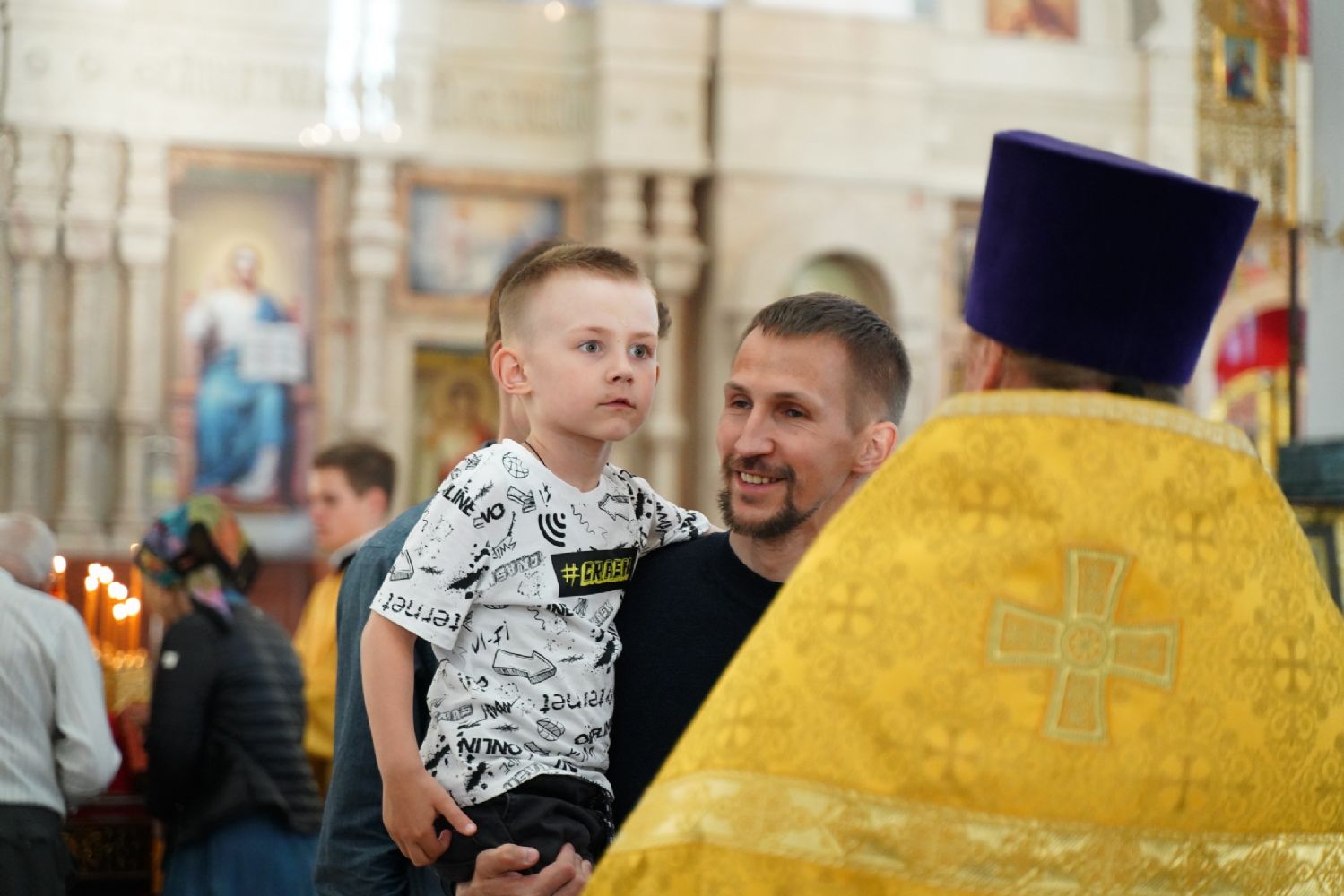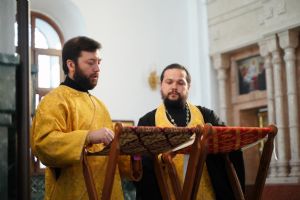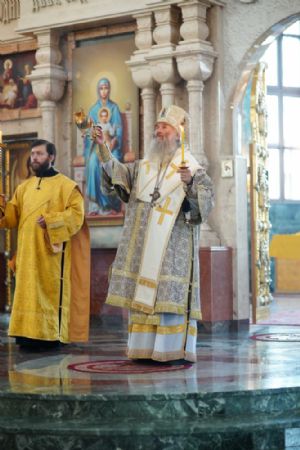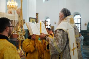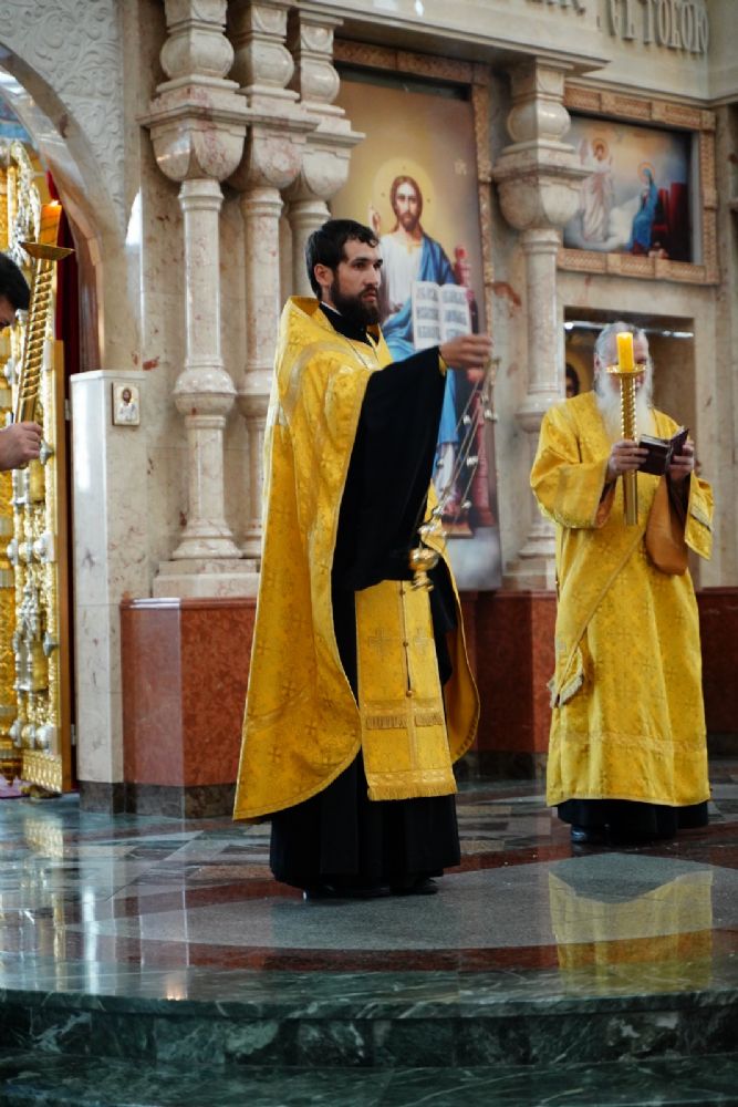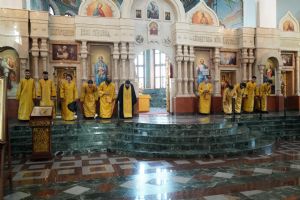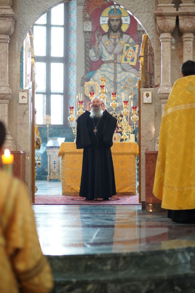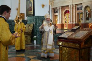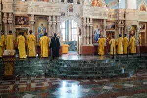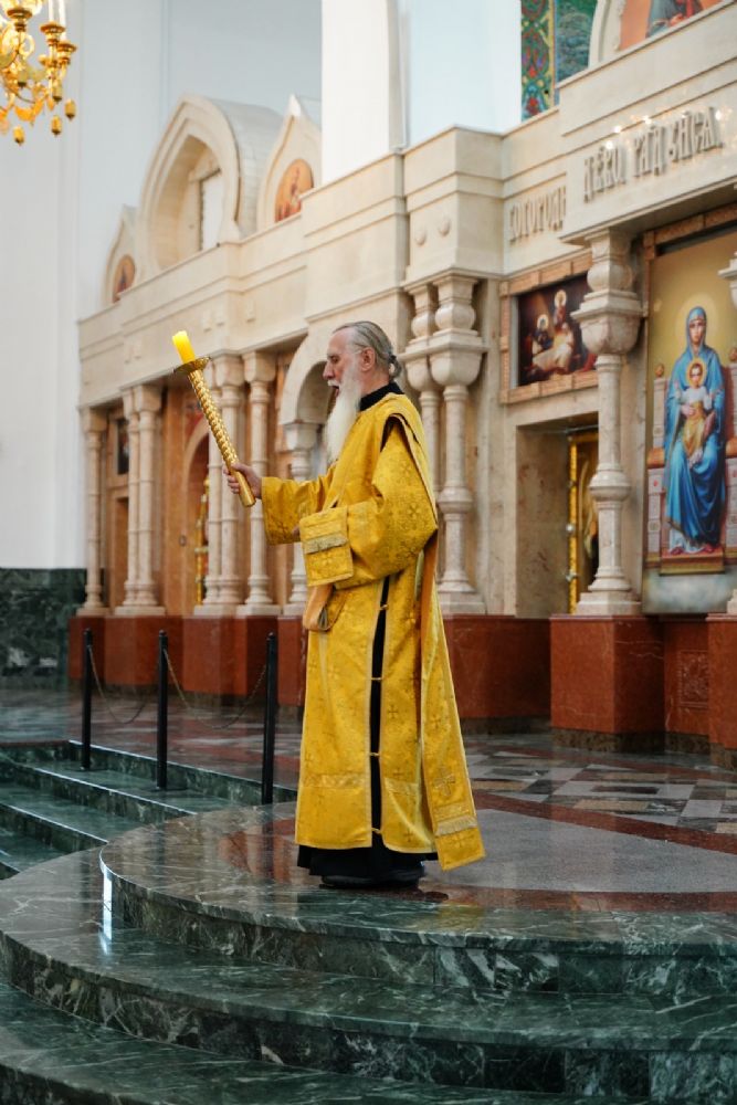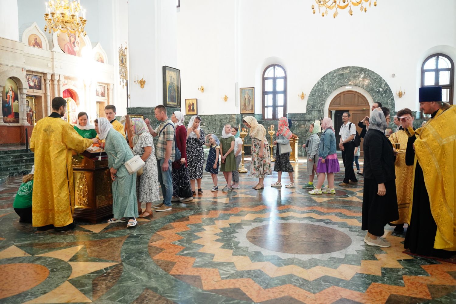 Архипастырю сослужили ключарь кафедрального собора протоиерей Сергий Поглазов, клирики собора иереи Никифор Захаров, Евгений Самойлов, Иоанн Милютин, диакон Артемий Бобоч, а также протодиакон Михаил Козловский. Песнопения исполнял детско-юношеский хор «Благовест» под управлением регента Татьяны Черновой.