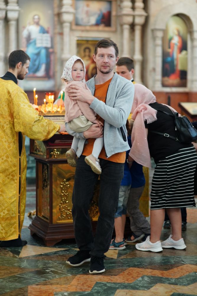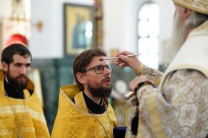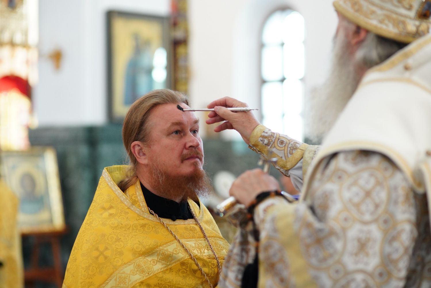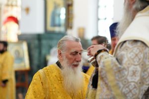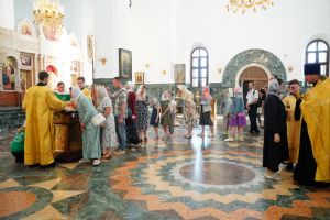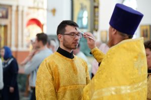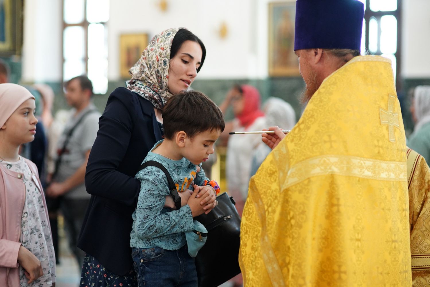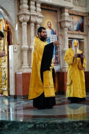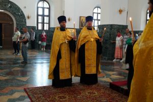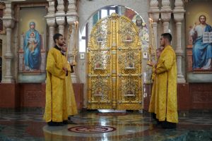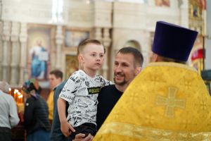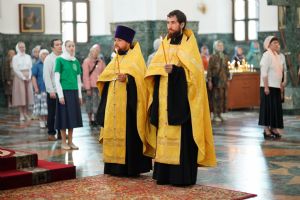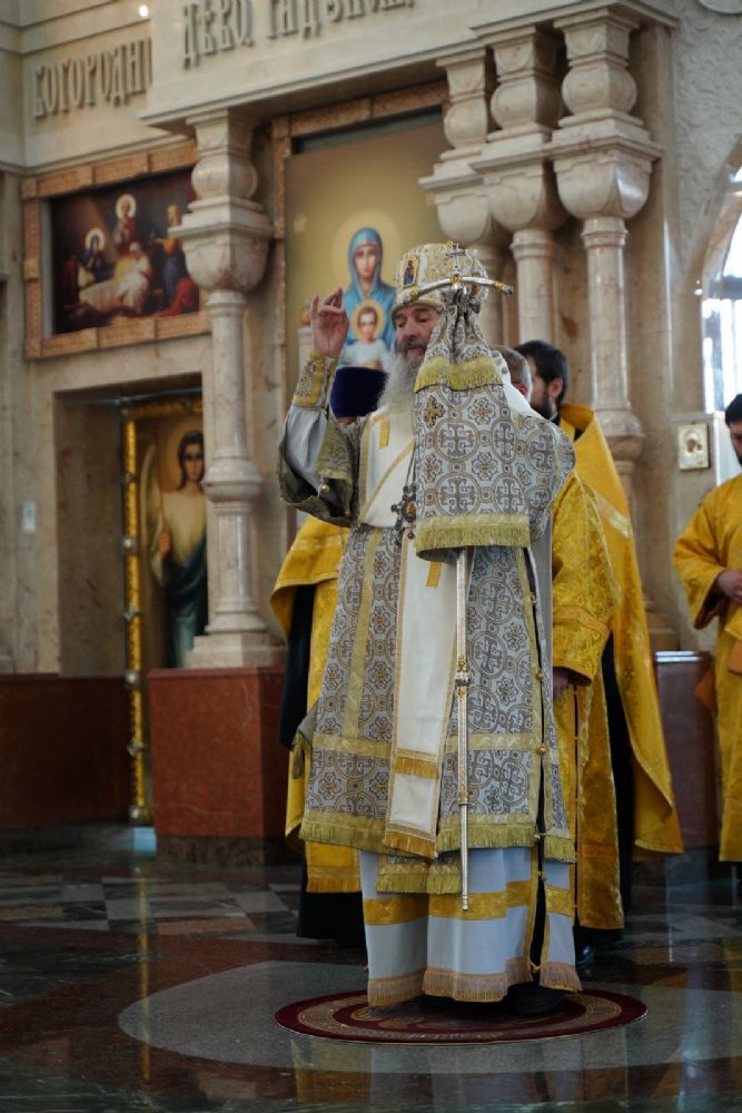 Архипастырю сослужили ключарь кафедрального собора протоиерей Сергий Поглазов, клирики собора иереи Никифор Захаров, Евгений Самойлов, Иоанн Милютин, диакон Артемий Бобоч, а также протодиакон Михаил Козловский. Песнопения исполнял детско-юношеский хор «Благовест» под управлением регента Татьяны Черновой.
