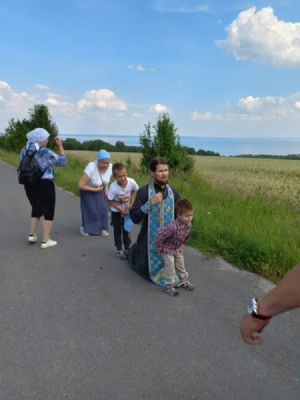 Крестоходцев, прибывших из Козьмодемьянска в храм Владимирской иконы Божией Матери с. Владимирское радостно встретили прихожане во главе с настоятелем храма иереем Алексием Васюткиным, священство и паломники из других храмов.
