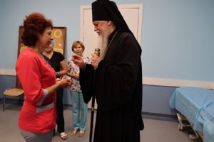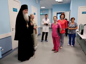 Владыка поблагодарил медицинский персонал и сотрудников отделения за их труд. «Желаю, чтобы Божие благословение почивало на родившихся младенцах, и они впоследствии стали бы добрыми христианами, которые будут прославлять Бога и помогать своим ближним. Также желаю, чтобы благословение Божие почивало и на всех тех, кто помогает в рождении детей – на всех сотрудниках этого доброго учреждения. Пусть по молитвам Божией Матери Господь покрывает вас от всякого зла и помогает в вашем труде», – отметил архипастырь.